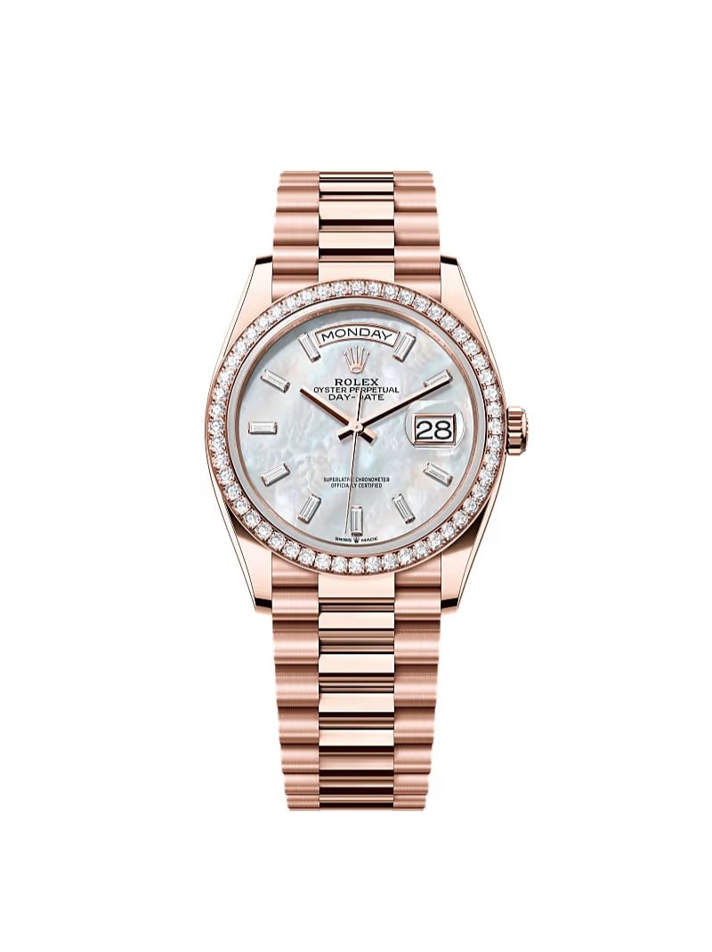 Everose Gold | President Bracelet | Mother of Pearl Diamond Baguette Dial | Diamond Bezel | 36.0mm