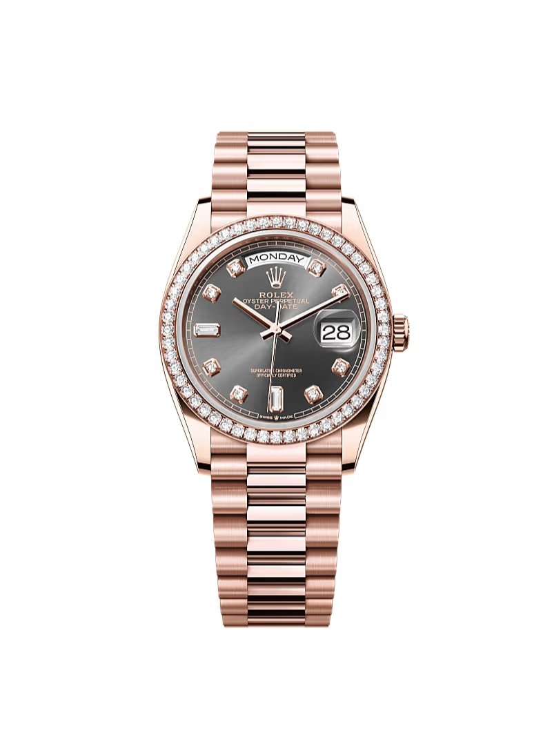 At its launch in 1956, the Day-Date was a major innovation: it was the first calendar wristwatch to indicate, in addition to the date, the day of the week spelt out in full in a window on the dial – a technical feat at the time. The Day-Date has only ever been made from precious metals –18 ct yellow, white or Everose gold, or 950 platinum. Worn by many of the world’s political figures, directors and visionaries, the Day-Date is instantly recognizable, in particular thanks to its emblematic President bracelet, whose evocative name, together with the eminent figures who have worn it, ensured the Day-Date became known as the ‘presidents’ watch’.