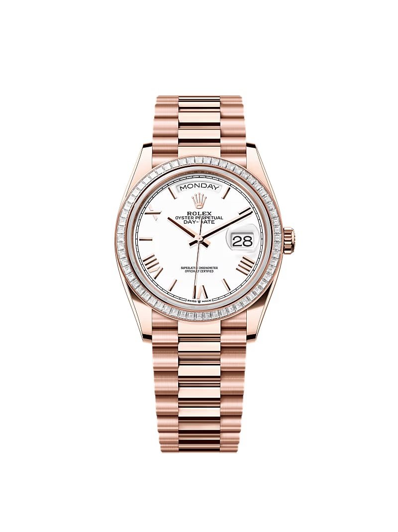 At its launch in 1956, the Day-Date was a major innovation: it was the first calendar wristwatch to indicate, in addition to the date, the day of the week spelt out in full in a window on the dial – a technical feat at the time. The Day-Date has only ever been made from precious metals –18 ct yellow, white or Everose gold, or 950 platinum. Worn by many of the world’s political figures, directors and visionaries, the Day-Date is instantly recognizable, in particular thanks to its emblematic President bracelet, whose evocative name, together with the eminent figures who have worn it, ensured the Day-Date became known as the ‘presidents’ watch’.