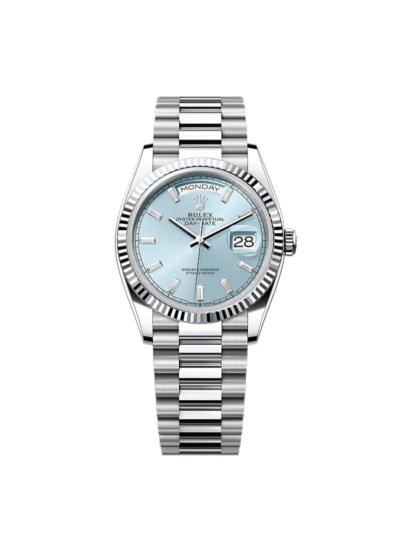 At its launch in 1956, the Day-Date was a major innovation: it was the first calendar wristwatch to indicate, in addition to the date, the day of the week spelt out in full in a window on the dial – a technical feat at the time. The Day-Date has only ever been made from precious metals –18 ct yellow, white or Everose gold, or 950 platinum. Worn by many of the world’s political figures, directors and visionaries, the Day-Date is instantly recognizable, in particular thanks to its emblematic President bracelet, whose evocative name, together with the eminent figures who have worn it, ensured the Day-Date became known as the ‘presidents’ watch’.