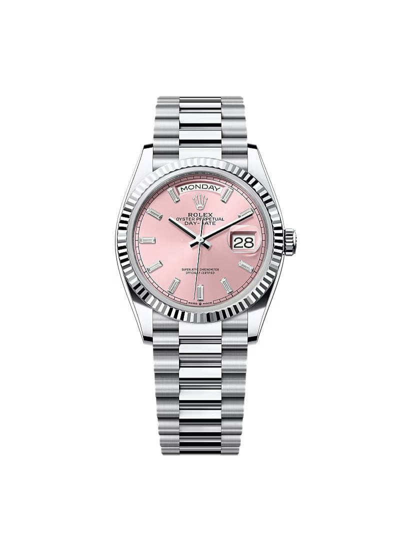 At its launch in 1956, the Day-Date was a major innovation: it was the first calendar wristwatch to indicate, in addition to the date, the day of the week spelt out in full in a window on the dial – a technical feat at the time. The Day-Date has only ever been made from precious metals –18 ct yellow, white or Everose gold, or 950 platinum. Worn by many of the world’s political figures, directors and visionaries, the Day-Date is instantly recognizable, in particular thanks to its emblematic President bracelet, whose evocative name, together with the eminent figures who have worn it, ensured the Day-Date became known as the ‘presidents’ watch’.