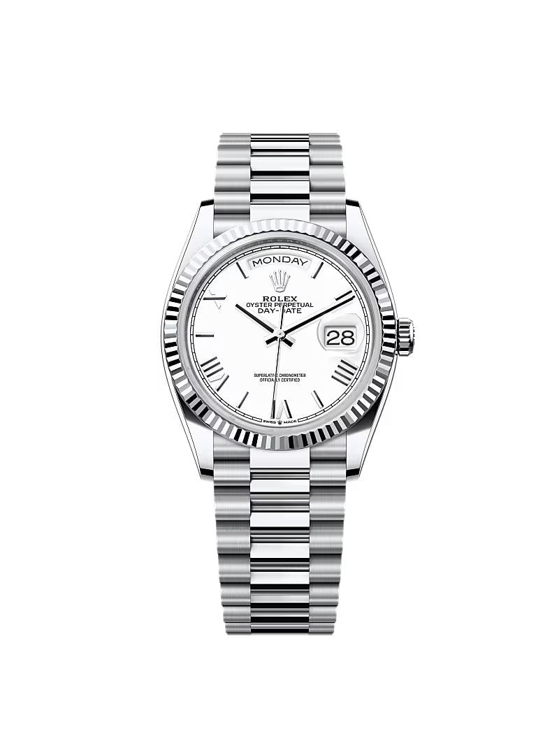 Platinum | President Bracelet | White Roman Dial | Fluted Bezel | 36.0mm