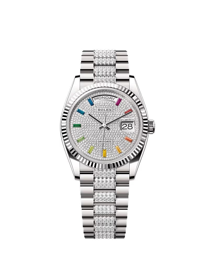 Day-Date 36 White Gold Diamond-Set President Diamond-Paved Rainbow