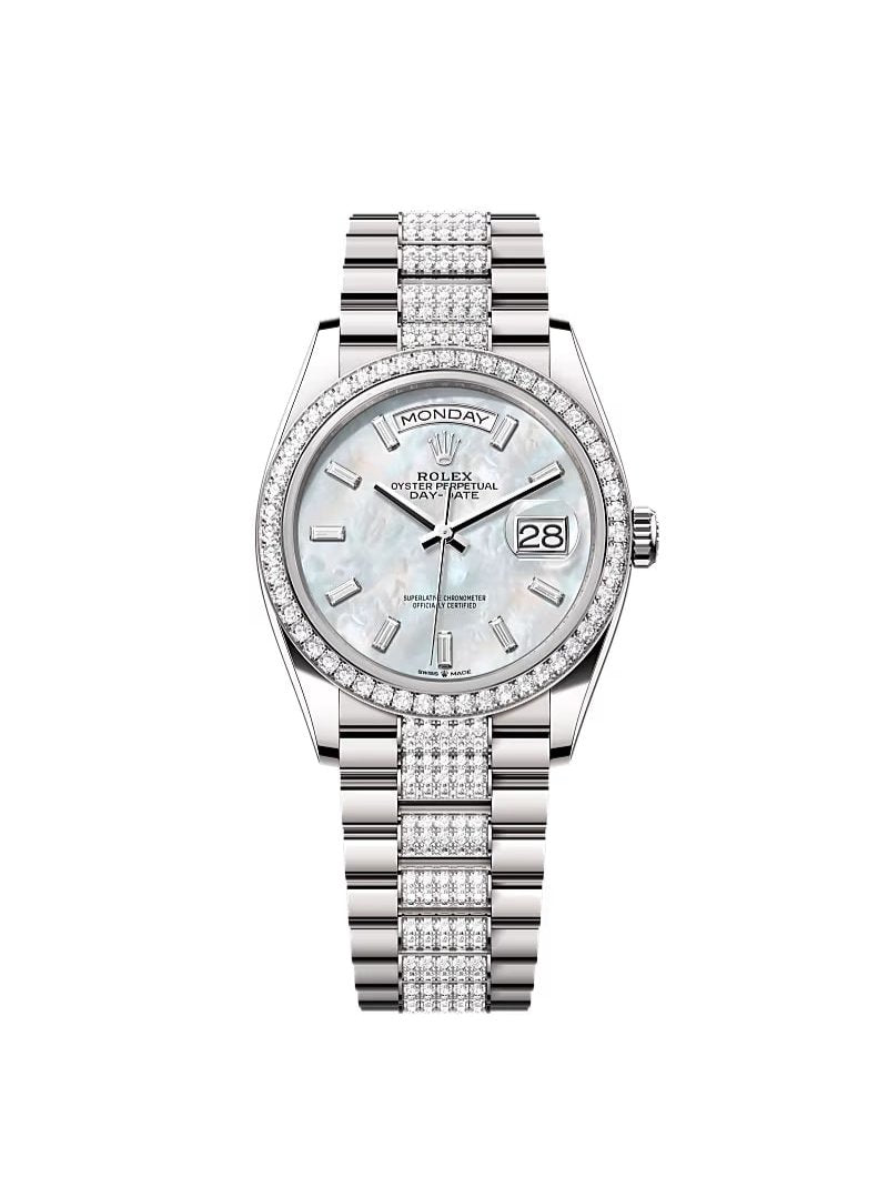 Day-Date 36 White Gold Diamond-Set President Mother of Pearl Diamond Baguette
