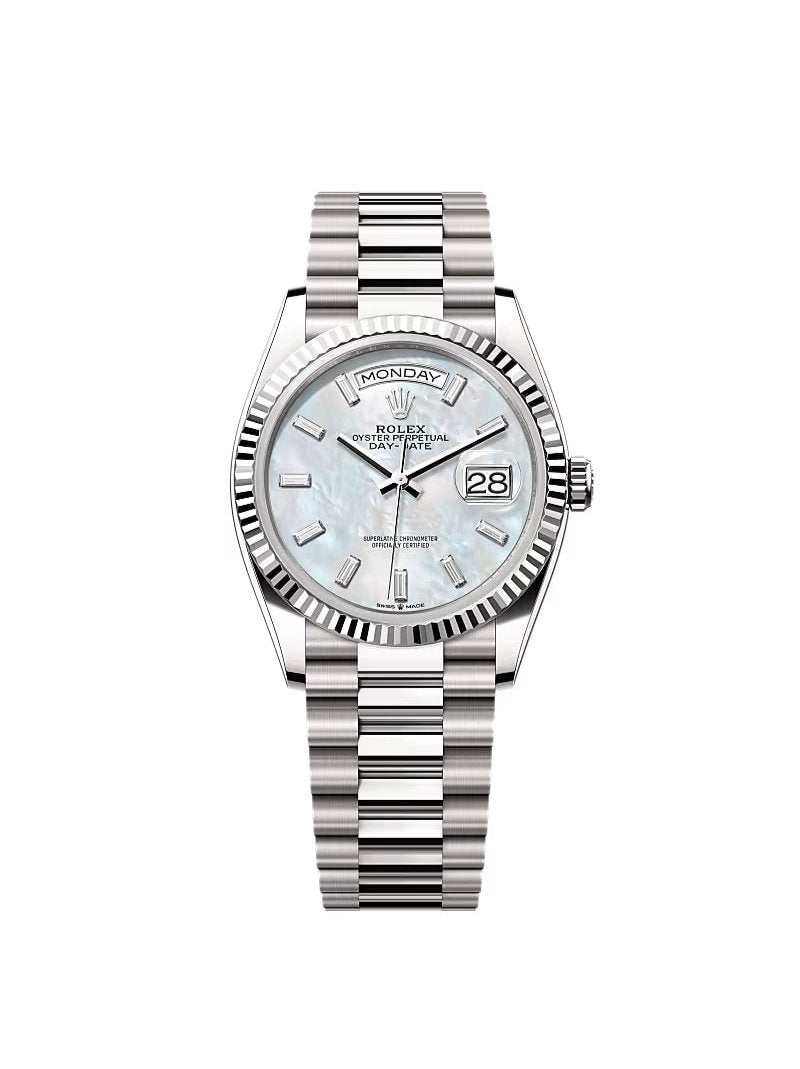 Day-Date 36 White Gold Mother of Pearl Diamond Baguette