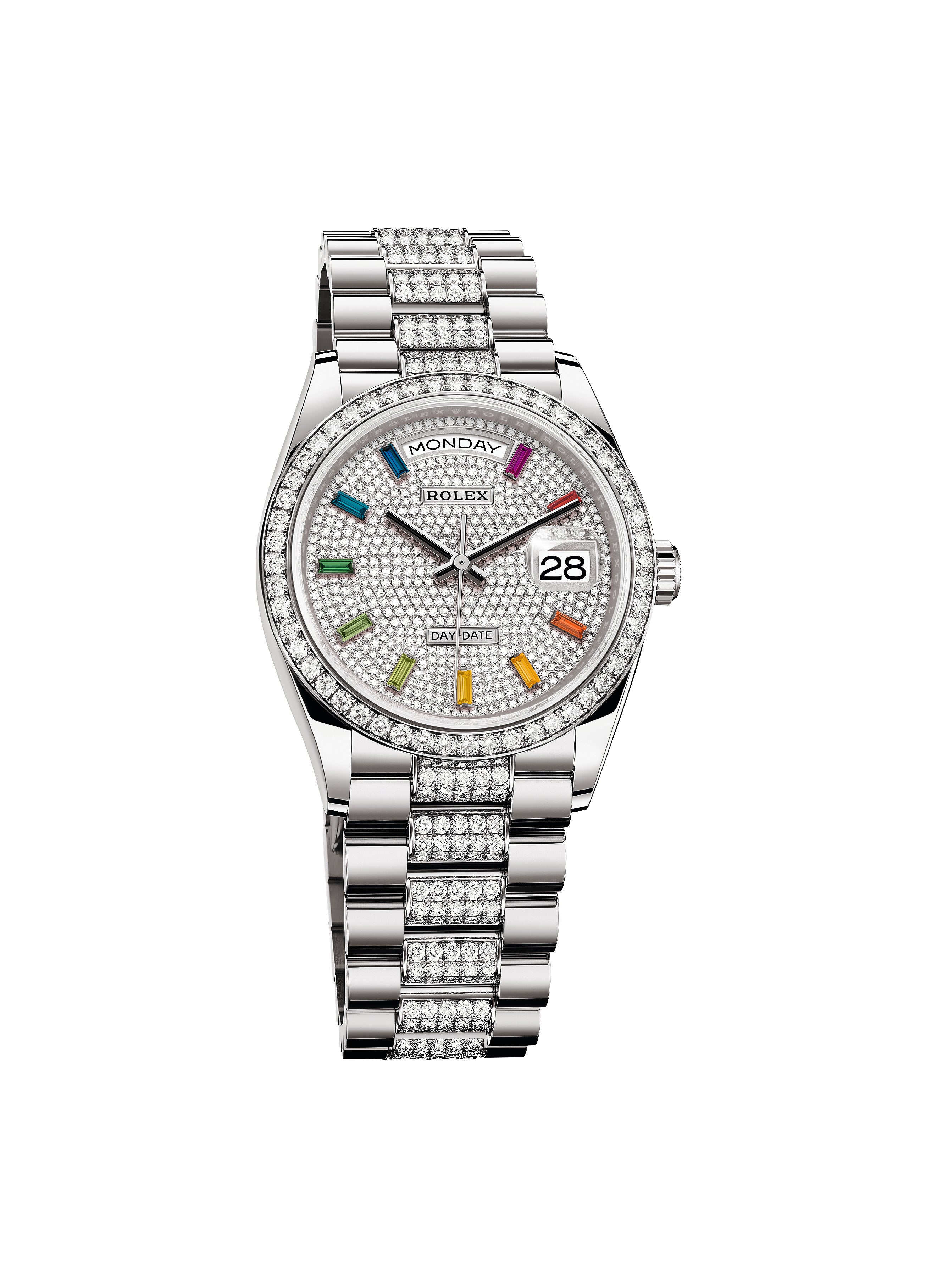 Day-Date 36 White Gold Diamond-Set President Diamond-Paved Rainbow