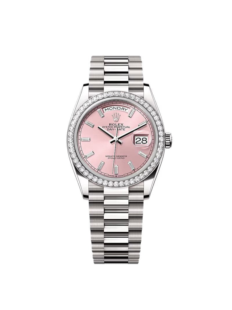 At its launch in 1956, the Day-Date was a major innovation: it was the first calendar wristwatch to indicate, in addition to the date, the day of the week spelt out in full in a window on the dial – a technical feat at the time. The Day-Date has only ever been made from precious metals –18 ct yellow, white or Everose gold, or 950 platinum. Worn by many of the world’s political figures, directors and visionaries, the Day-Date is instantly recognizable, in particular thanks to its emblematic President bracelet, whose evocative name, together with the eminent figures who have worn it, ensured the Day-Date became known as the ‘presidents’ watch’.