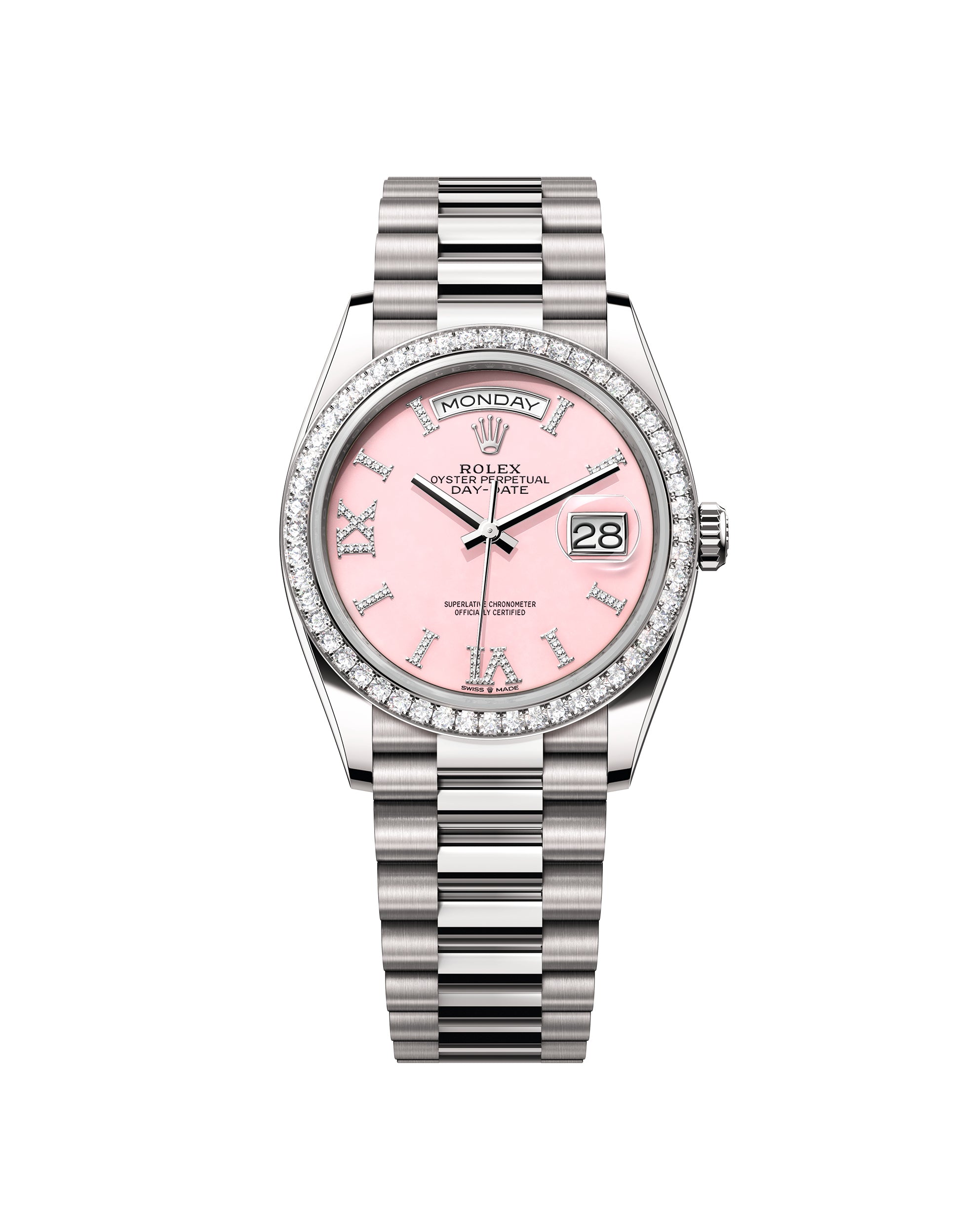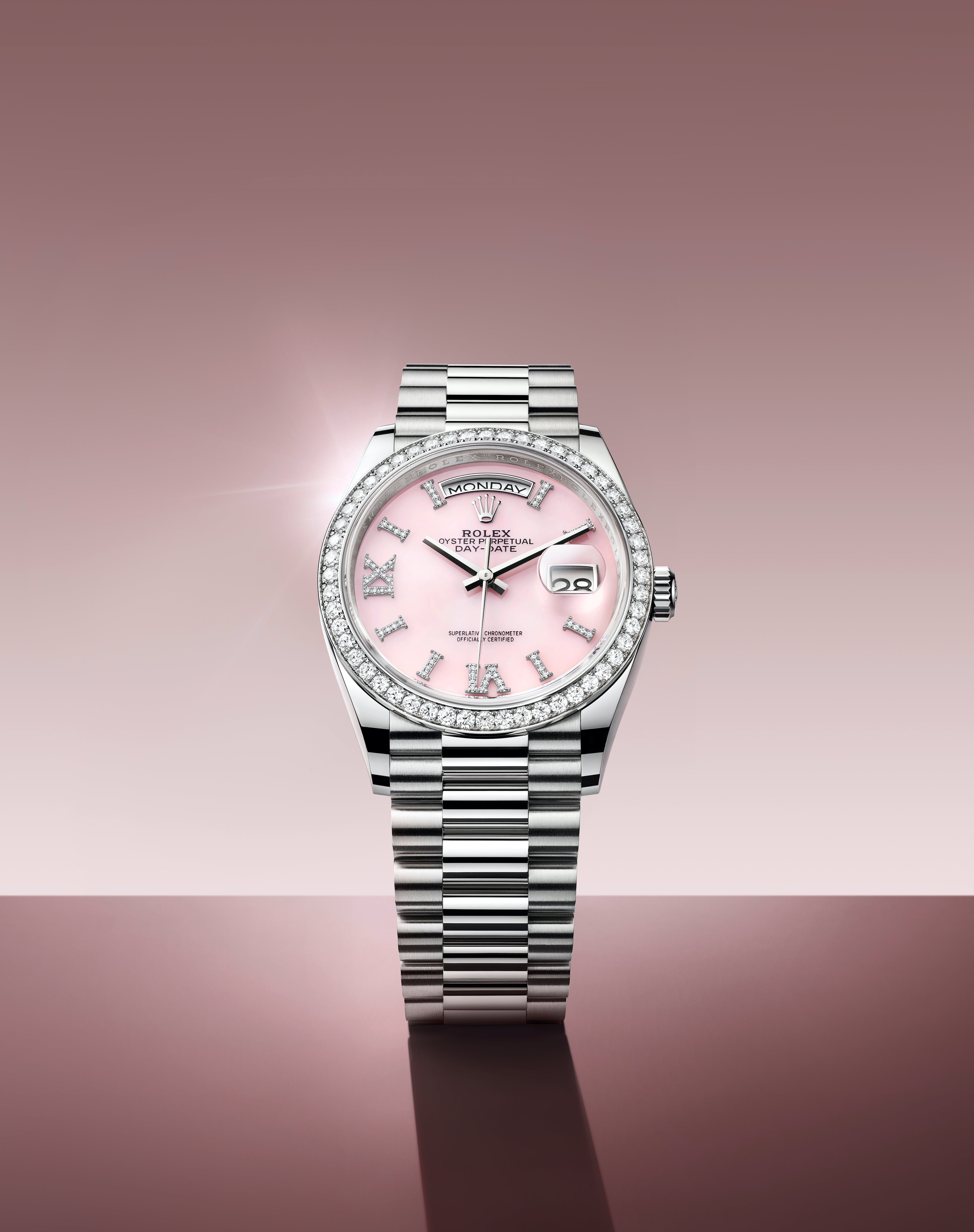 At its launch in 1956, the Day-Date was a major innovation: it was the first calendar wristwatch to indicate, in addition to the date, the day of the week spelt out in full in a window on the dial – a technical feat at the time. The Day-Date has only ever been made from precious metals –18 ct yellow, white or Everose gold, or 950 platinum. Worn by many of the world’s political figures, directors and visionaries, the Day-Date is instantly recognizable, in particular thanks to its emblematic President bracelet, whose evocative name, together with the eminent figures who have worn it, ensured the Day-Date became known as the ‘presidents’ watch’.