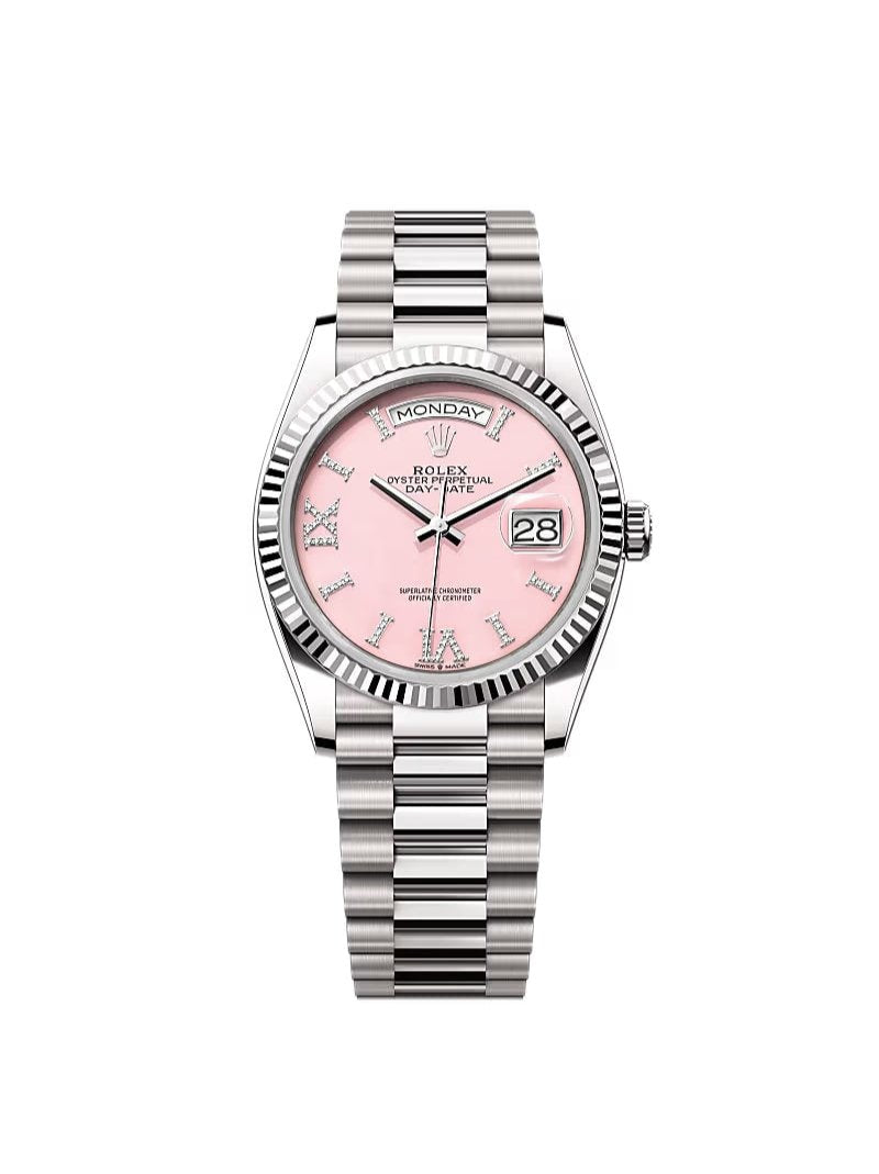 Day-Date 36 White Gold Pink Opal Roman Diamond