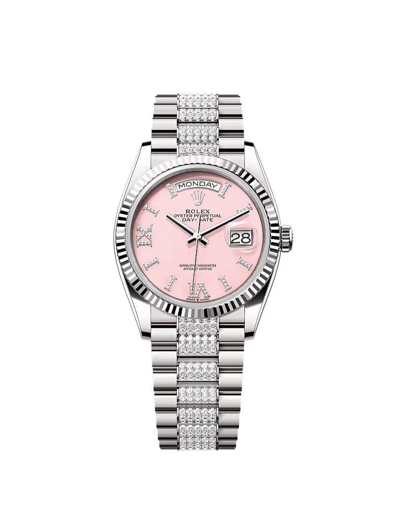 Day-Date 36 White Gold Diamond-Set President Pink Opal Roman Diamond