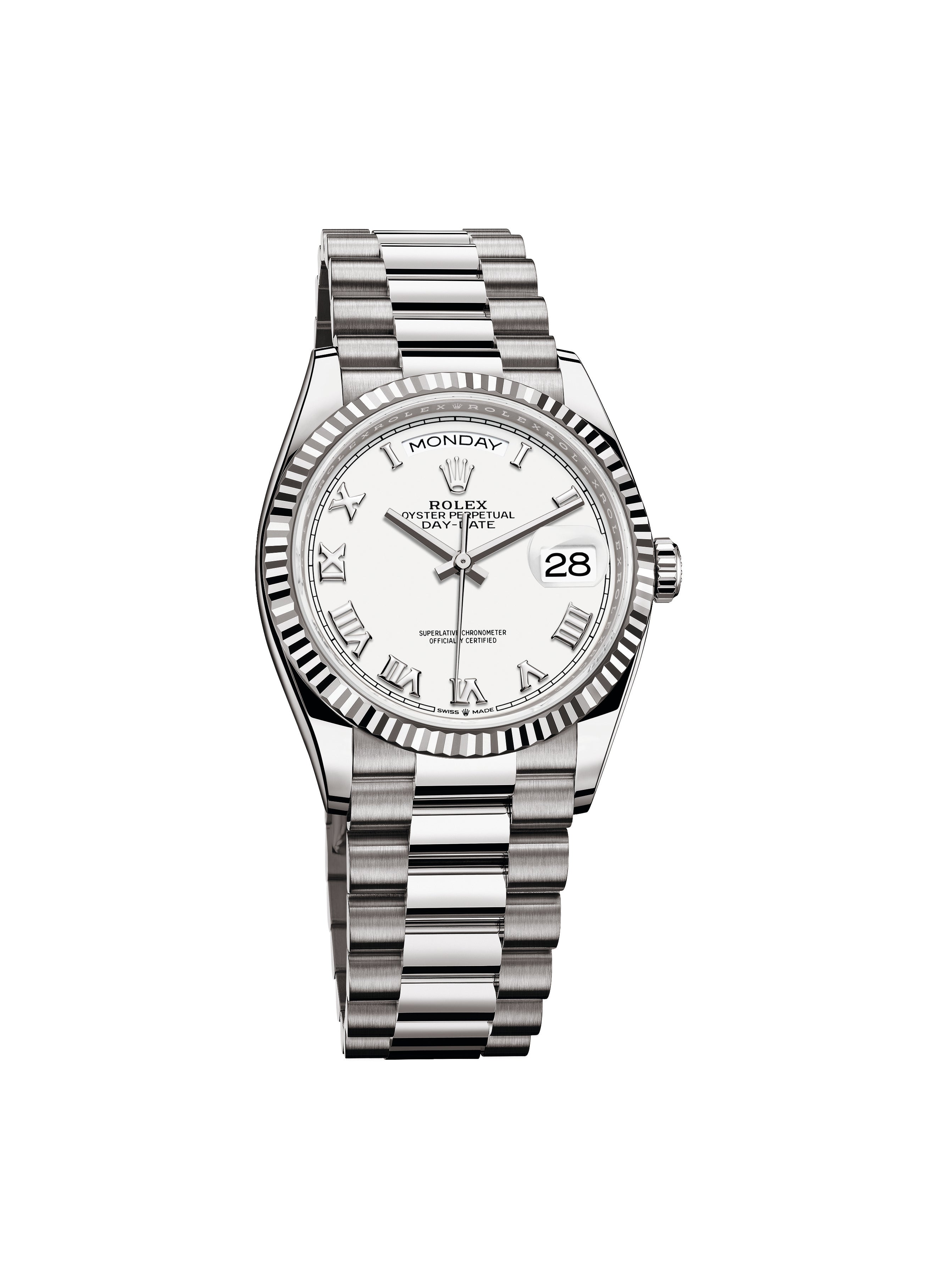 At its launch in 1956, the Day-Date was a major innovation: it was the first calendar wristwatch to indicate, in addition to the date, the day of the week spelt out in full in a window on the dial – a technical feat at the time. The Day-Date has only ever been made from precious metals –18 ct yellow, white or Everose gold, or 950 platinum. Worn by many of the world’s political figures, directors and visionaries, the Day-Date is instantly recognizable, in particular thanks to its emblematic President bracelet, whose evocative name, together with the eminent figures who have worn it, ensured the Day-Date became known as the ‘presidents’ watch’.
