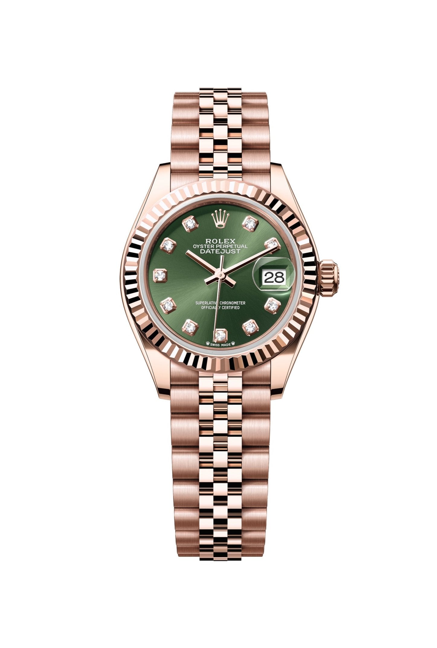 The classic Rolex feminine watch, the Lady-Datejust concentrates all the attributes of the Datejust, the brand’s emblematic watch that has been a byword for style and technical performance ever since its launch in 1945. The women’s version of this date chronometer, the Lady-Datejust, which first appeared in 1957, carries the elegance of the Datejust in a small 28 mm size particularly suited to a slender wrist. The Lady-Datejust upholds the hallmark features of the Datejust line, with a self-winding, waterproof Oyster case that is robust yet graceful. Its calibre 2236 movement, crafted entirely by Rolex, ensures precision and performance. The Lady-Datejust is guaranteed waterproof to a depth of 100 meters (330 feet), making it a resilient and elegant choice for any occasion.