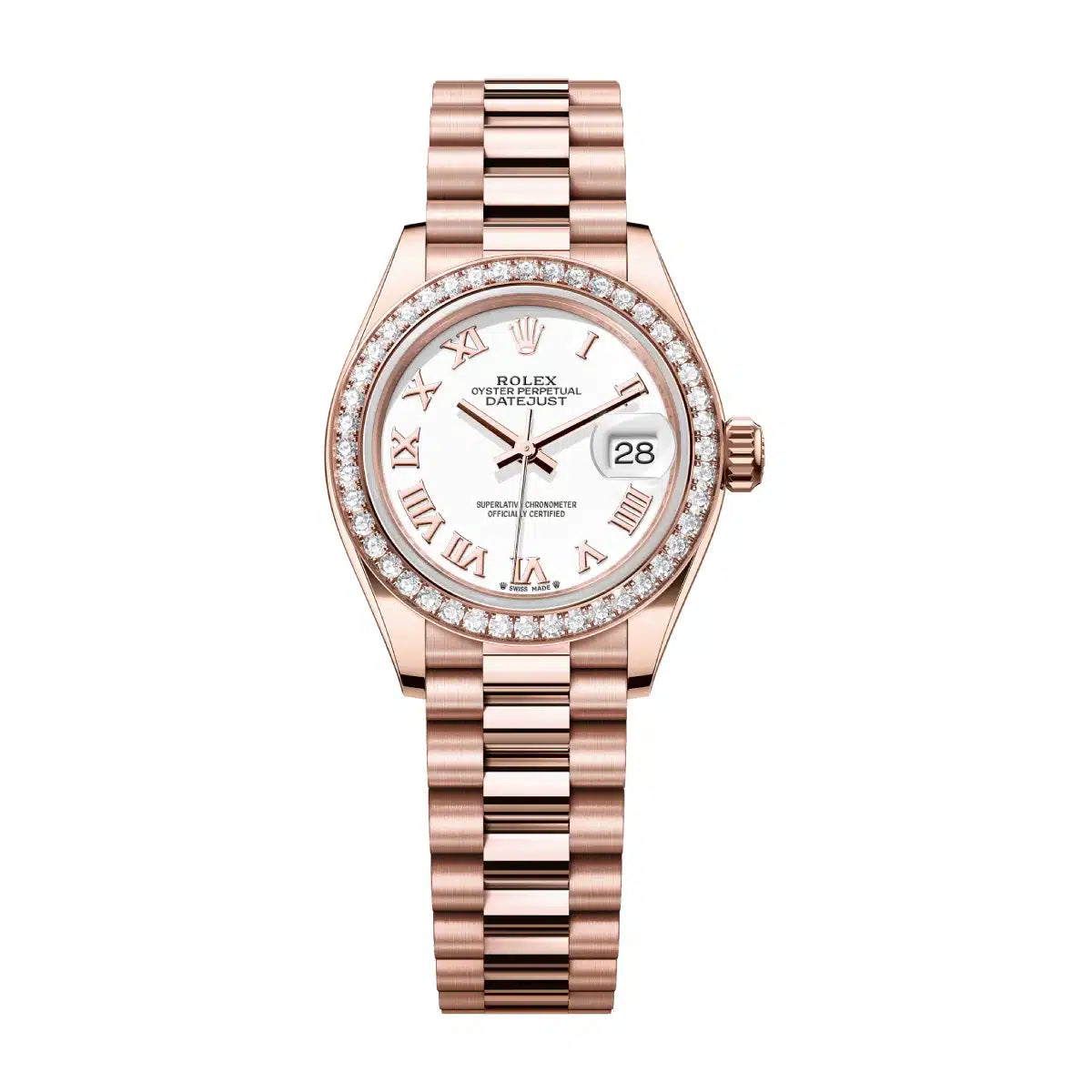 The classic Rolex feminine watch, the Lady-Datejust concentrates all the attributes of the Datejust, the brand’s emblematic watch that has been a byword for style and technical performance ever since its launch in 1945. The women’s version of this date chronometer, the Lady-Datejust, which first appeared in 1957, carries the elegance of the Datejust in a small 28 mm size particularly suited to a slender wrist. The Lady-Datejust upholds the hallmark features of the Datejust line, with a self-winding, waterproof Oyster case that is robust yet graceful. Its calibre 2236 movement, crafted entirely by Rolex, ensures precision and performance. The Lady-Datejust is guaranteed waterproof to a depth of 100 meters (330 feet), making it a resilient and elegant choice for any occasion.