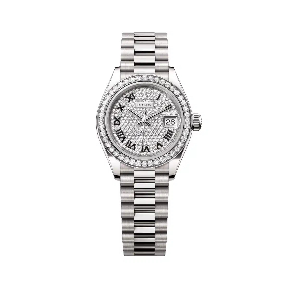 The classic Rolex feminine watch, the Lady-Datejust concentrates all the attributes of the Datejust, the brand’s emblematic watch that has been a byword for style and technical performance ever since its launch in 1945. The women’s version of this date chronometer, the Lady-Datejust, which first appeared in 1957, carries the elegance of the Datejust in a small 28 mm size particularly suited to a slender wrist. The Lady-Datejust upholds the hallmark features of the Datejust line, with a self-winding, waterproof Oyster case that is robust yet graceful. Its calibre 2236 movement, crafted entirely by Rolex, ensures precision and performance. The Lady-Datejust is guaranteed waterproof to a depth of 100 meters (330 feet), making it a resilient and elegant choice for any occasion.
