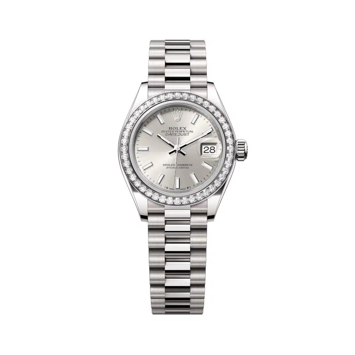 The classic Rolex feminine watch, the Lady-Datejust concentrates all the attributes of the Datejust, the brand’s emblematic watch that has been a byword for style and technical performance ever since its launch in 1945. The women’s version of this date chronometer, the Lady-Datejust, which first appeared in 1957, carries the elegance of the Datejust in a small 28 mm size particularly suited to a slender wrist. The Lady-Datejust upholds the hallmark features of the Datejust line, with a self-winding, waterproof Oyster case that is robust yet graceful. Its calibre 2236 movement, crafted entirely by Rolex, ensures precision and performance. The Lady-Datejust is guaranteed waterproof to a depth of 100 meters (330 feet), making it a resilient and elegant choice for any occasion.