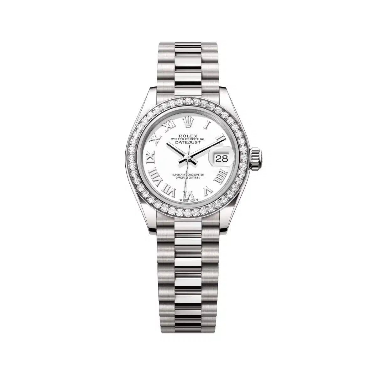 The classic Rolex feminine watch, the Lady-Datejust concentrates all the attributes of the Datejust, the brand’s emblematic watch that has been a byword for style and technical performance ever since its launch in 1945. The women’s version of this date chronometer, the Lady-Datejust, which first appeared in 1957, carries the elegance of the Datejust in a small 28 mm size particularly suited to a slender wrist. The Lady-Datejust upholds the hallmark features of the Datejust line, with a self-winding, waterproof Oyster case that is robust yet graceful. Its calibre 2236 movement, crafted entirely by Rolex, ensures precision and performance. The Lady-Datejust is guaranteed waterproof to a depth of 100 meters (330 feet), making it a resilient and elegant choice for any occasion.