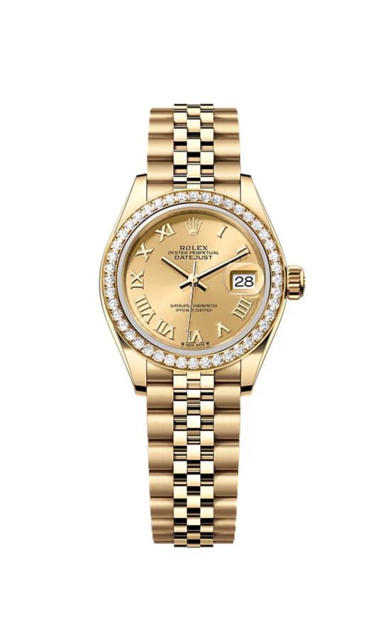 The classic Rolex feminine watch, the Lady-Datejust concentrates all the attributes of the Datejust, the brand’s emblematic watch that has been a byword for style and technical performance ever since its launch in 1945. The women’s version of this date chronometer, the Lady-Datejust, which first appeared in 1957, carries the elegance of the Datejust in a small 28 mm size particularly suited to a slender wrist. The Lady-Datejust upholds the hallmark features of the Datejust line, with a self-winding, waterproof Oyster case that is robust yet graceful. Its calibre 2236 movement, crafted entirely by Rolex, ensures precision and performance. The Lady-Datejust is guaranteed waterproof to a depth of 100 meters (330 feet), making it a resilient and elegant choice for any occasion.
