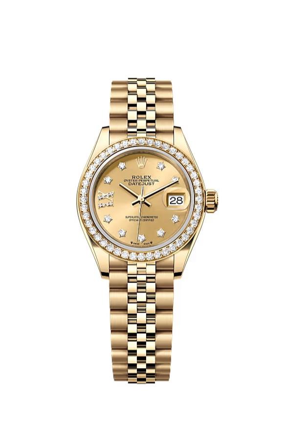 The classic Rolex feminine watch, the Lady-Datejust concentrates all the attributes of the Datejust, the brand’s emblematic watch that has been a byword for style and technical performance ever since its launch in 1945. The women’s version of this date chronometer, the Lady-Datejust, which first appeared in 1957, carries the elegance of the Datejust in a small 28 mm size particularly suited to a slender wrist. The Lady-Datejust upholds the hallmark features of the Datejust line, with a self-winding, waterproof Oyster case that is robust yet graceful. Its calibre 2236 movement, crafted entirely by Rolex, ensures precision and performance. The Lady-Datejust is guaranteed waterproof to a depth of 100 meters (330 feet), making it a resilient and elegant choice for any occasion.
