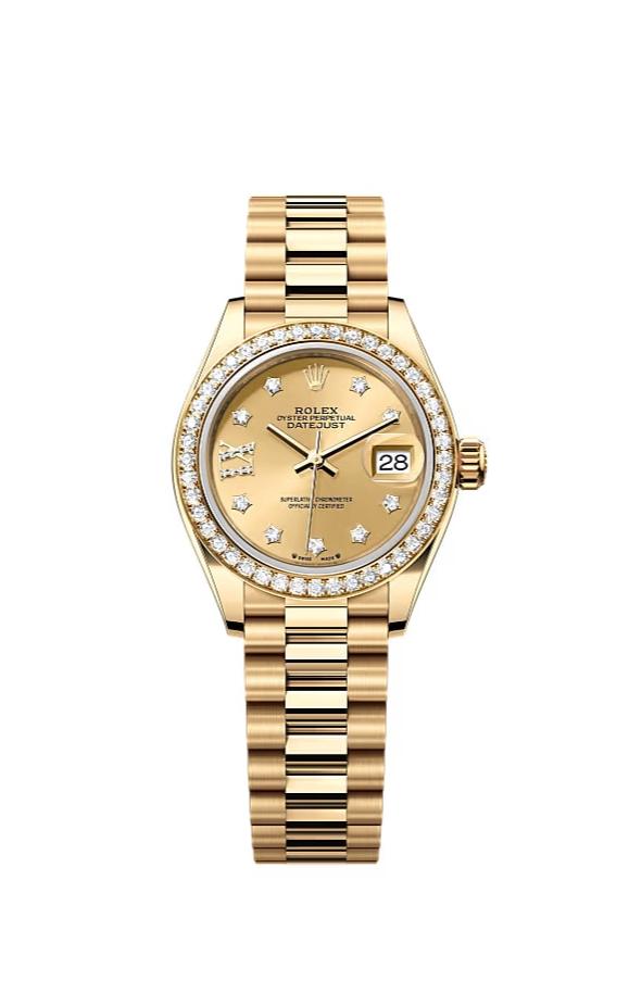 The classic Rolex feminine watch, the Lady-Datejust concentrates all the attributes of the Datejust, the brand’s emblematic watch that has been a byword for style and technical performance ever since its launch in 1945. The women’s version of this date chronometer, the Lady-Datejust, which first appeared in 1957, carries the elegance of the Datejust in a small 28 mm size particularly suited to a slender wrist. The Lady-Datejust upholds the hallmark features of the Datejust line, with a self-winding, waterproof Oyster case that is robust yet graceful. Its calibre 2236 movement, crafted entirely by Rolex, ensures precision and performance. The Lady-Datejust is guaranteed waterproof to a depth of 100 meters (330 feet), making it a resilient and elegant choice for any occasion.