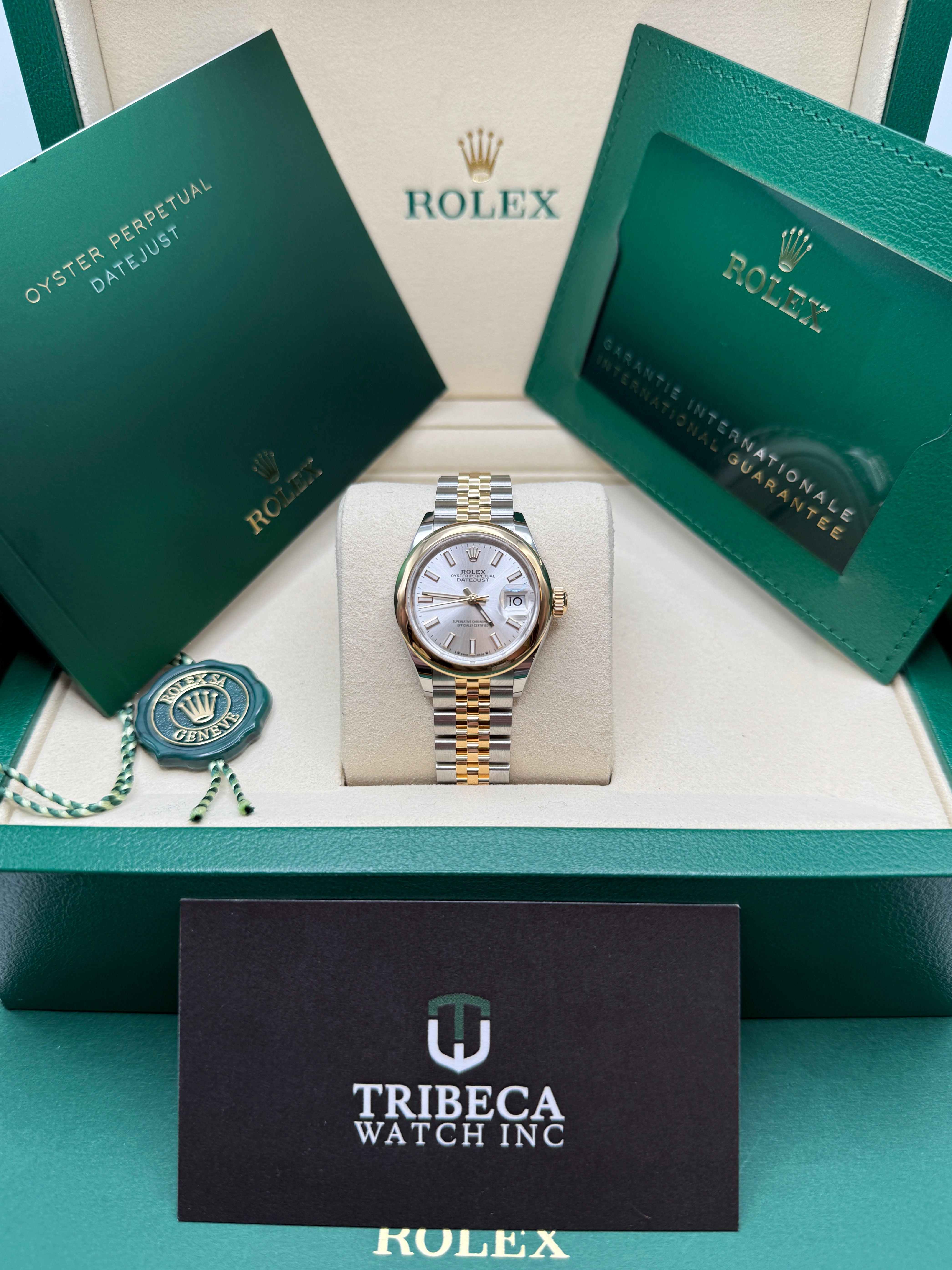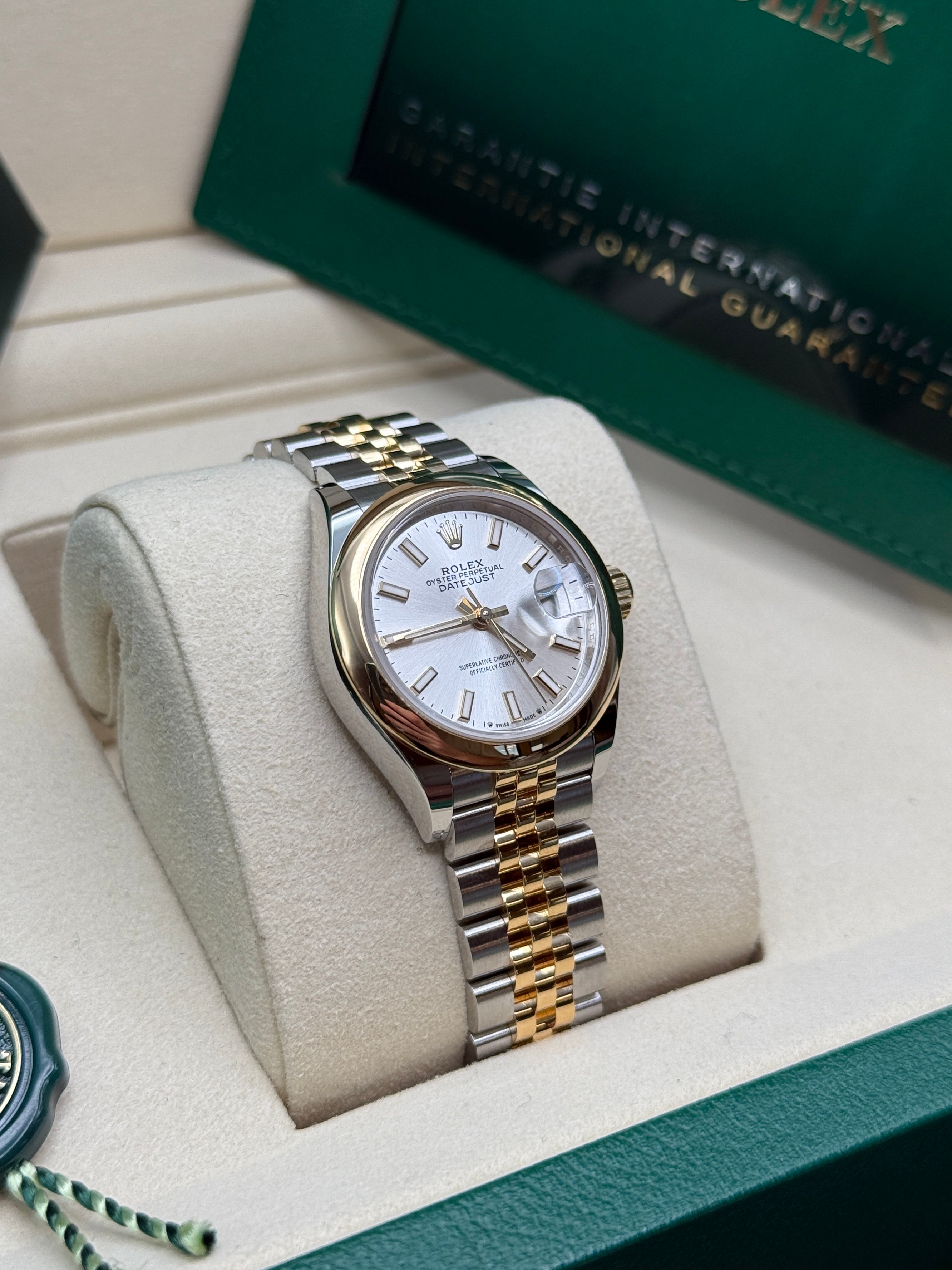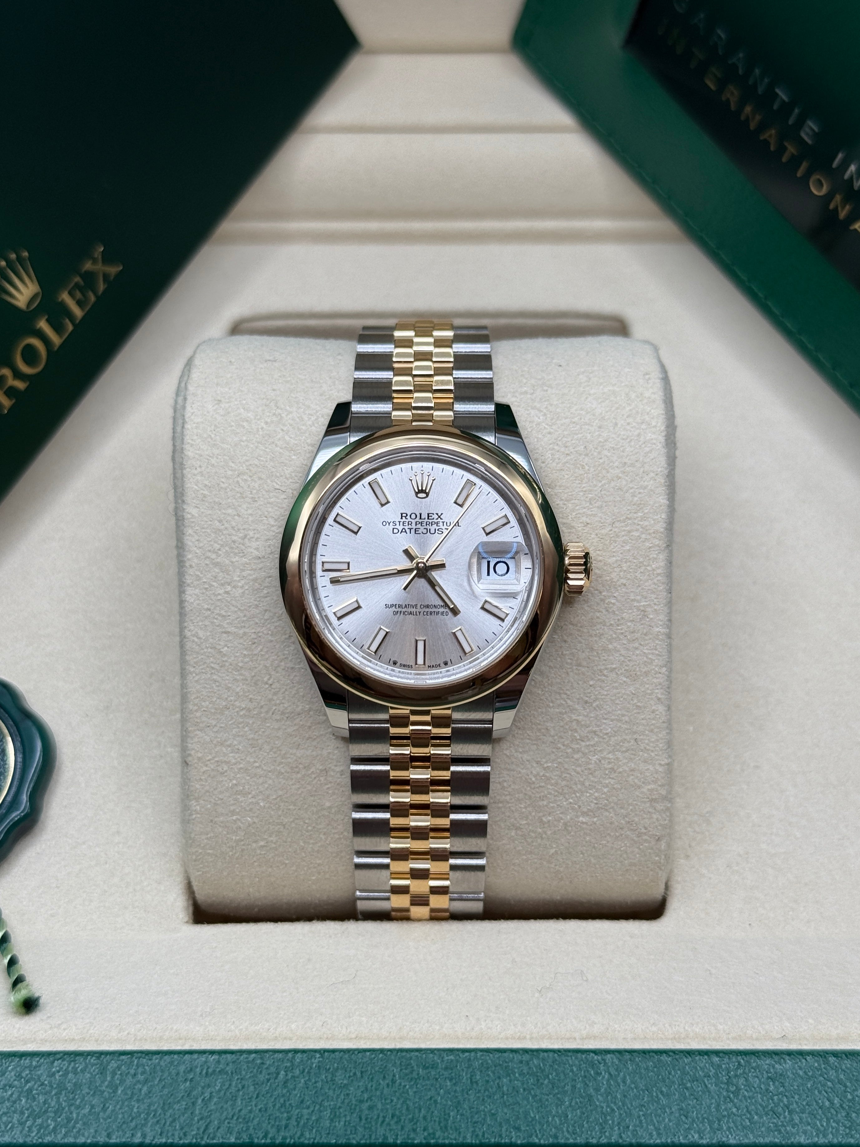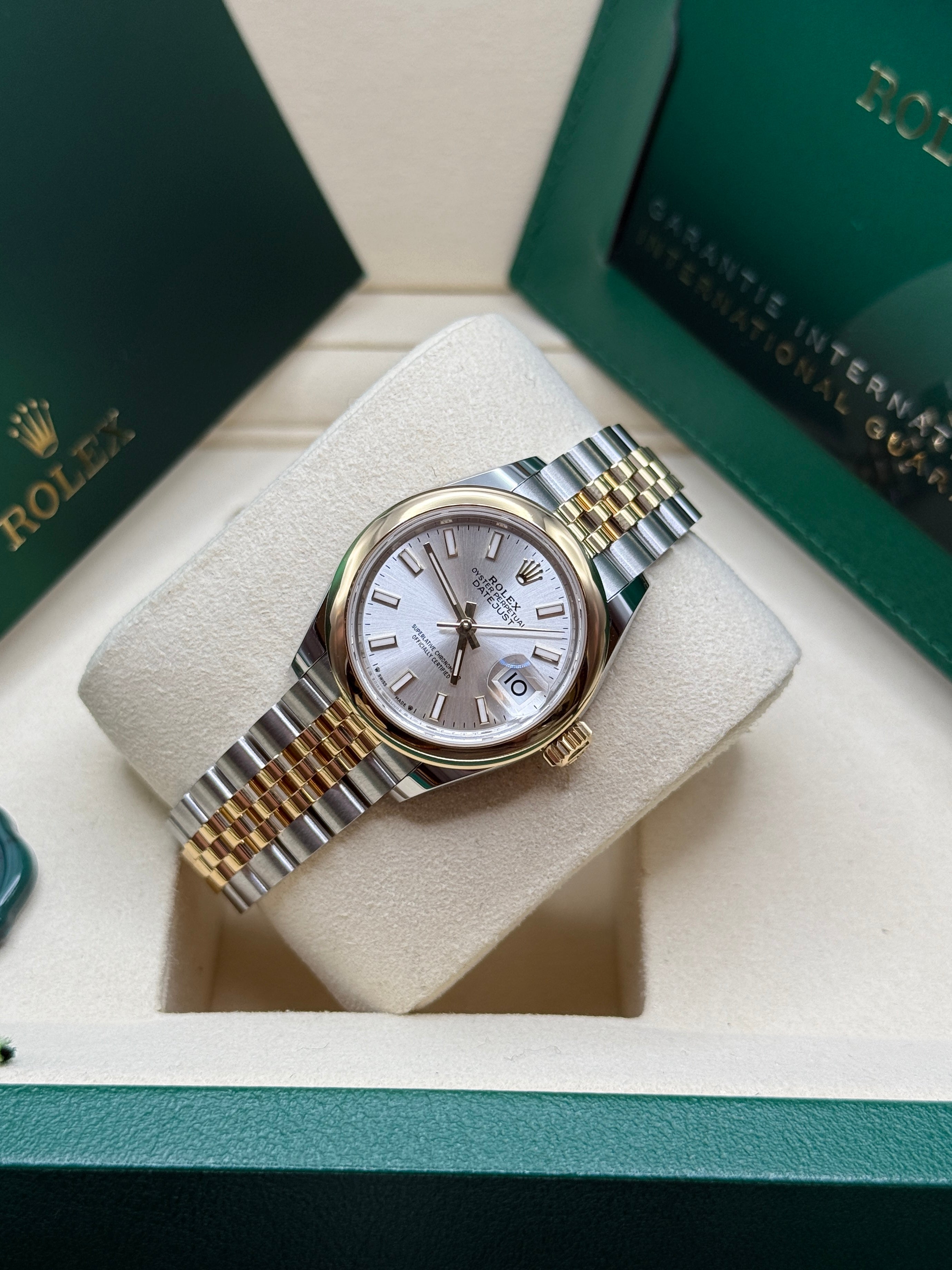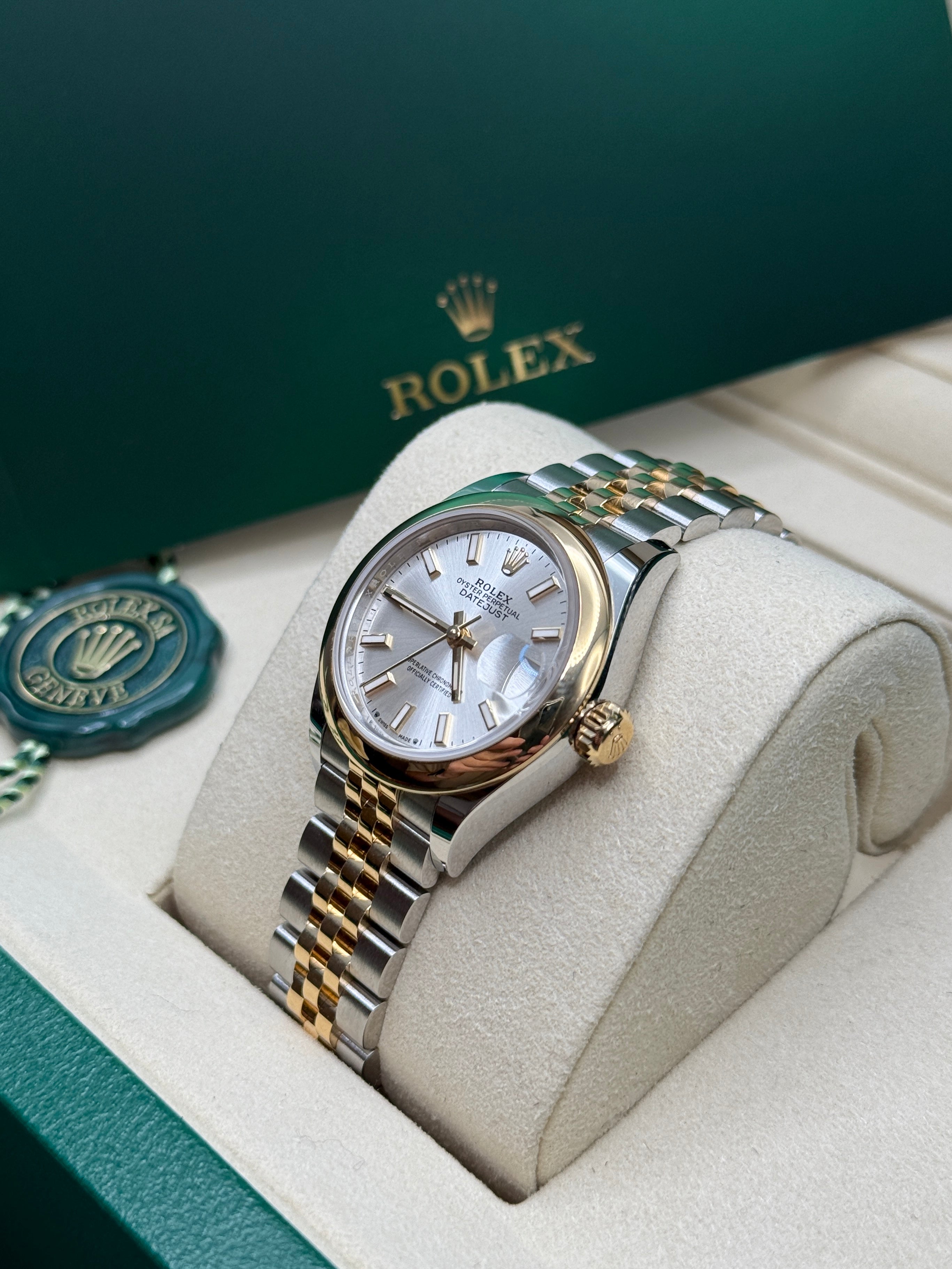 The classic Rolex feminine watch, the Lady-Datejust concentrates all the attributes of the Datejust, the brand’s emblematic watch that has been a byword for style and technical performance ever since its launch in 1945. The women’s version of this date chronometer, the Lady-Datejust, which first appeared in 1957, carries the elegance of the Datejust in a small 28 mm size particularly suited to a slender wrist. The Lady-Datejust upholds the hallmark features of the Datejust line, with a self-winding, waterproof Oyster case that is robust yet graceful. Its calibre 2236 movement, crafted entirely by Rolex, ensures precision and performance. The Lady-Datejust is guaranteed waterproof to a depth of 100 meters (330 feet), making it a resilient and elegant choice for any occasion.