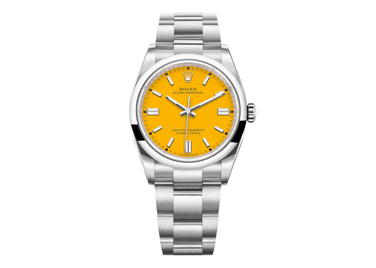 The Oyster Perpetual is the direct descendant of the original Oyster launched in 1926, the first waterproof wristwatch in the world and the foundation on which Rolex has built its reputation. A certified Superlative Chronometer, the Oyster Perpetual features all the key characteristics of the Oyster Perpetual collection – the waterproof Oyster case, a mechanical self-winding movement via Perpetual rotor, and excellent chronometric precision. Understated and elegant, this timepiece is known for its universal, classic style. The Oyster Perpetual’s Oyster case guarantees waterproof to a depth of 100 meters (330 feet), being a paragon of robustness and reliability. The Oyster Perpetual models are equipped with calibre 2232 (Oyster Perpetual 28, Oyster Perpetual 31 and Oyster Perpetual 34), or calibre 3230 (Oyster Perpetual 36 and Oyster Perpetual 41), self-winding mechanical movements entirely developed and manufactured by Rolex.