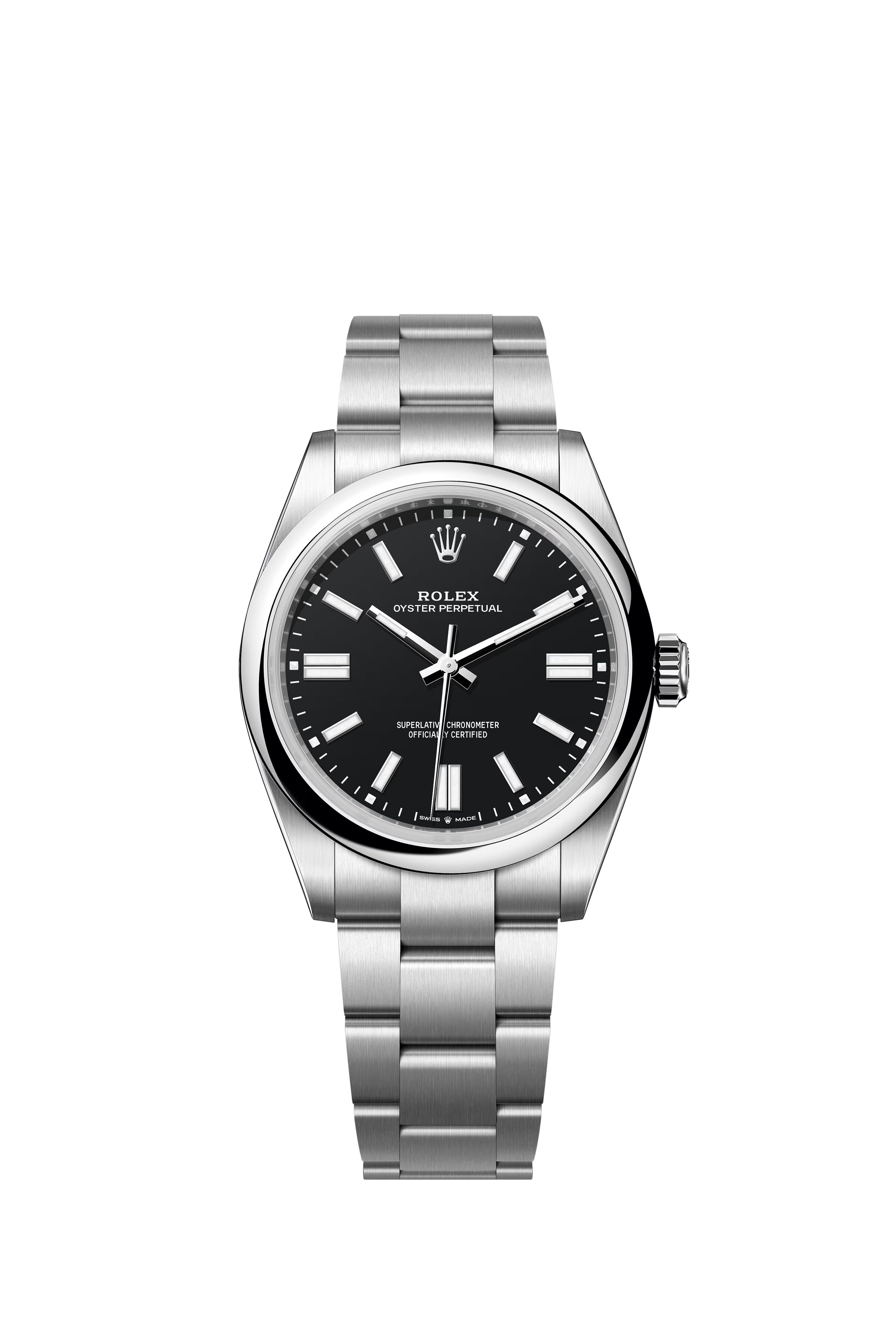 The Oyster Perpetual is the direct descendant of the original Oyster launched in 1926, the first waterproof wristwatch in the world and the foundation on which Rolex has built its reputation. A certified Superlative Chronometer, the Oyster Perpetual features all the key characteristics of the Oyster Perpetual collection – the waterproof Oyster case, a mechanical self-winding movement via Perpetual rotor, and excellent chronometric precision. Understated and elegant, this timepiece is known for its universal, classic style. The Oyster Perpetual’s Oyster case guarantees waterproof to a depth of 100 meters (330 feet), being a paragon of robustness and reliability. The Oyster Perpetual models are equipped with calibre 2232 (Oyster Perpetual 28, Oyster Perpetual 31 and Oyster Perpetual 34), or calibre 3230 (Oyster Perpetual 36 and Oyster Perpetual 41), self-winding mechanical movements entirely developed and manufactured by Rolex.