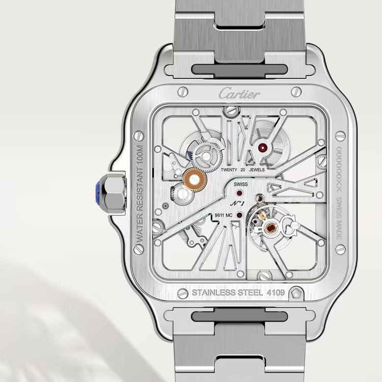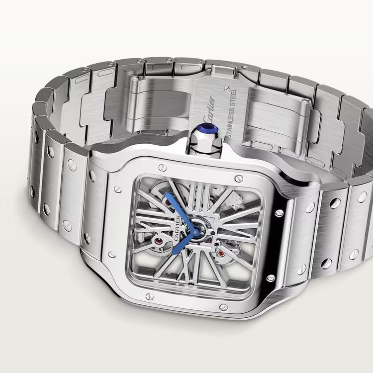Skeletonized models in the Santos collection reveal the intricate inner workings of the movement, adding a contemporary twist to this classic design. These pieces emphasize the brand's commitment to merging artistry with innovation.