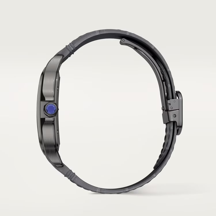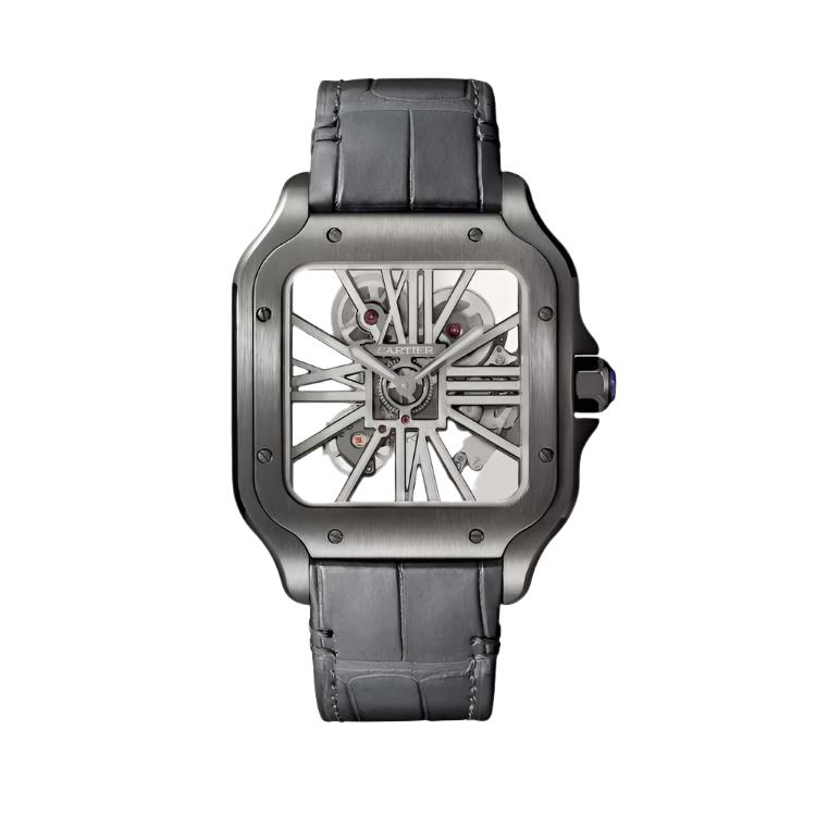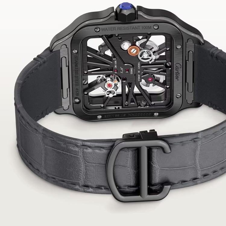 Santos de Cartier Skeleton Large Black Steel Interchangeable Leather Strap Gray