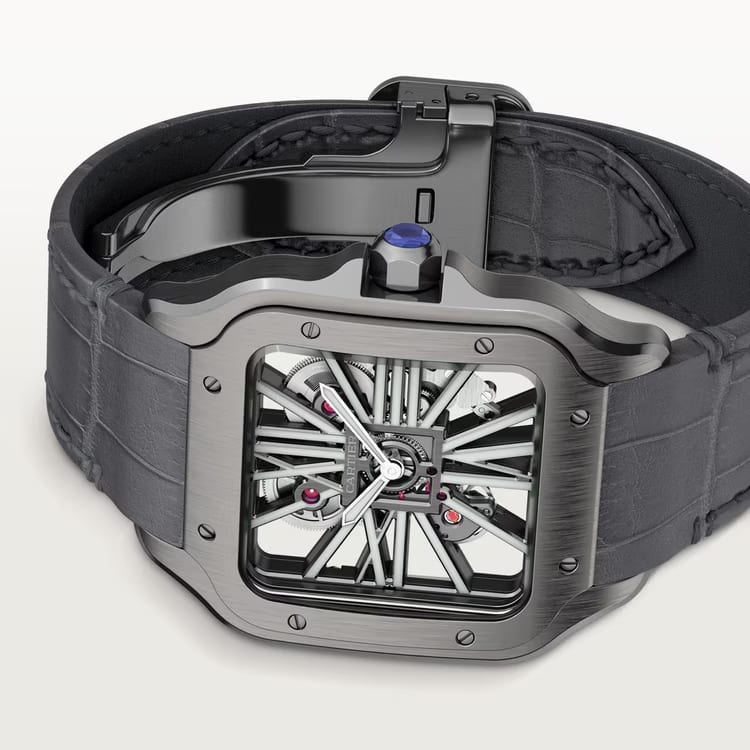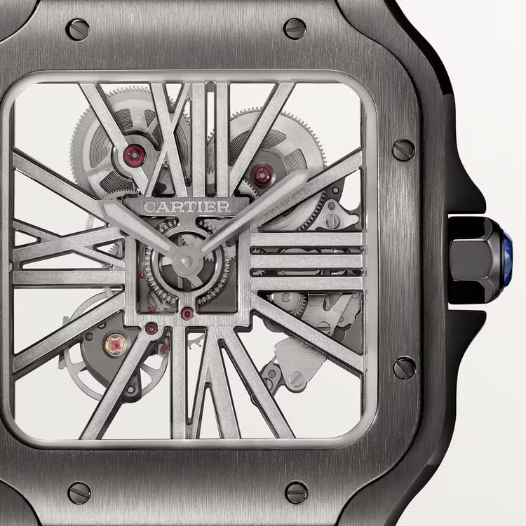 Skeletonized models in the Santos collection reveal the intricate inner workings of the movement, adding a contemporary twist to this classic design. These pieces emphasize the brand's commitment to merging artistry with innovation.