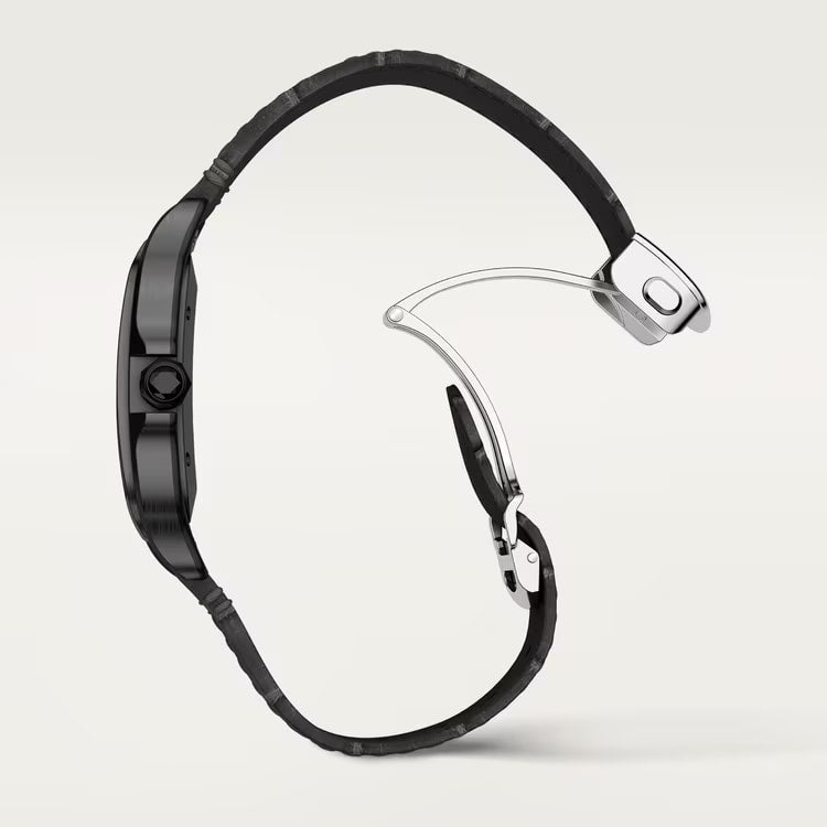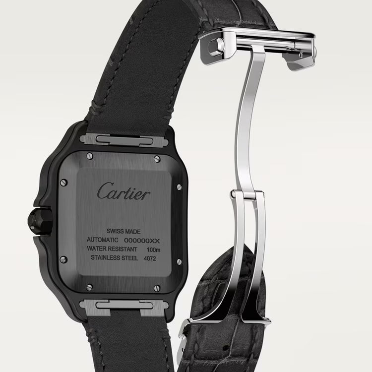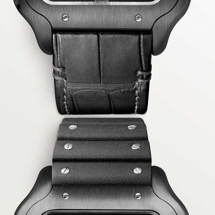 Santos de Cartier Large Black Steel Interchangeable Leather Strap Black