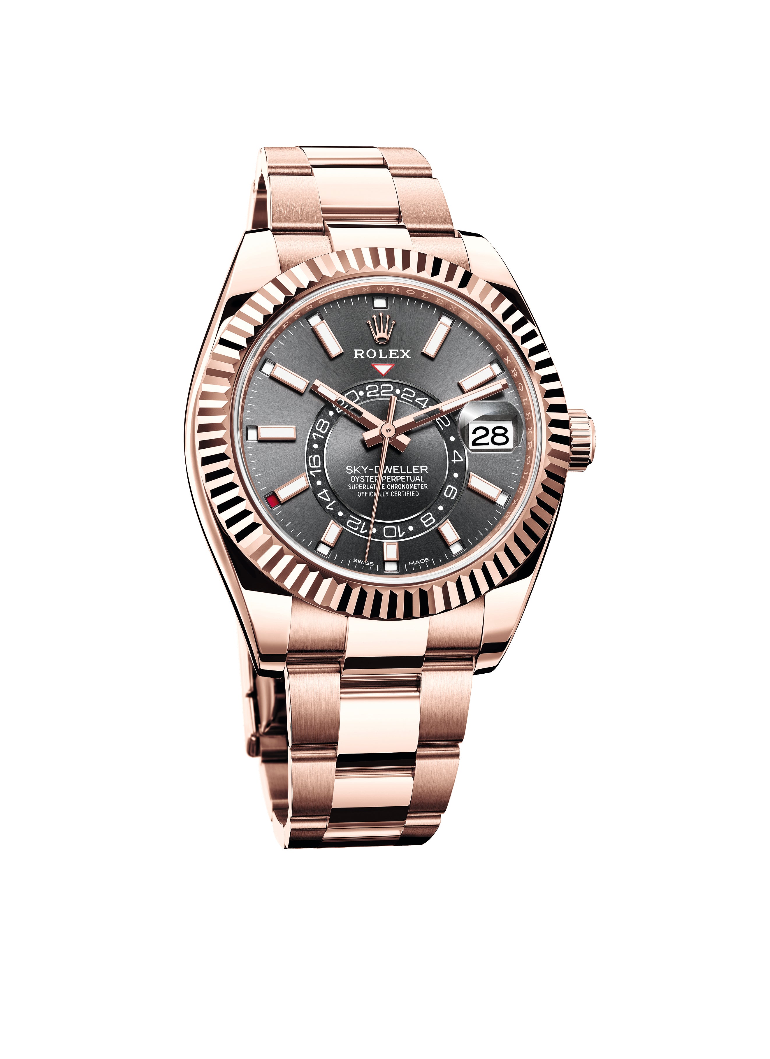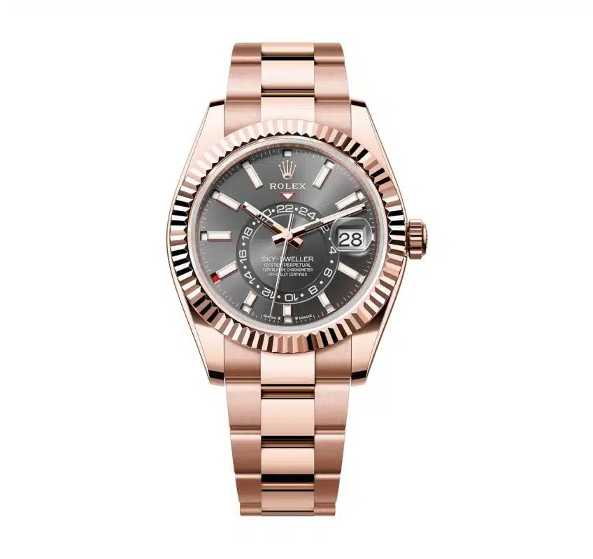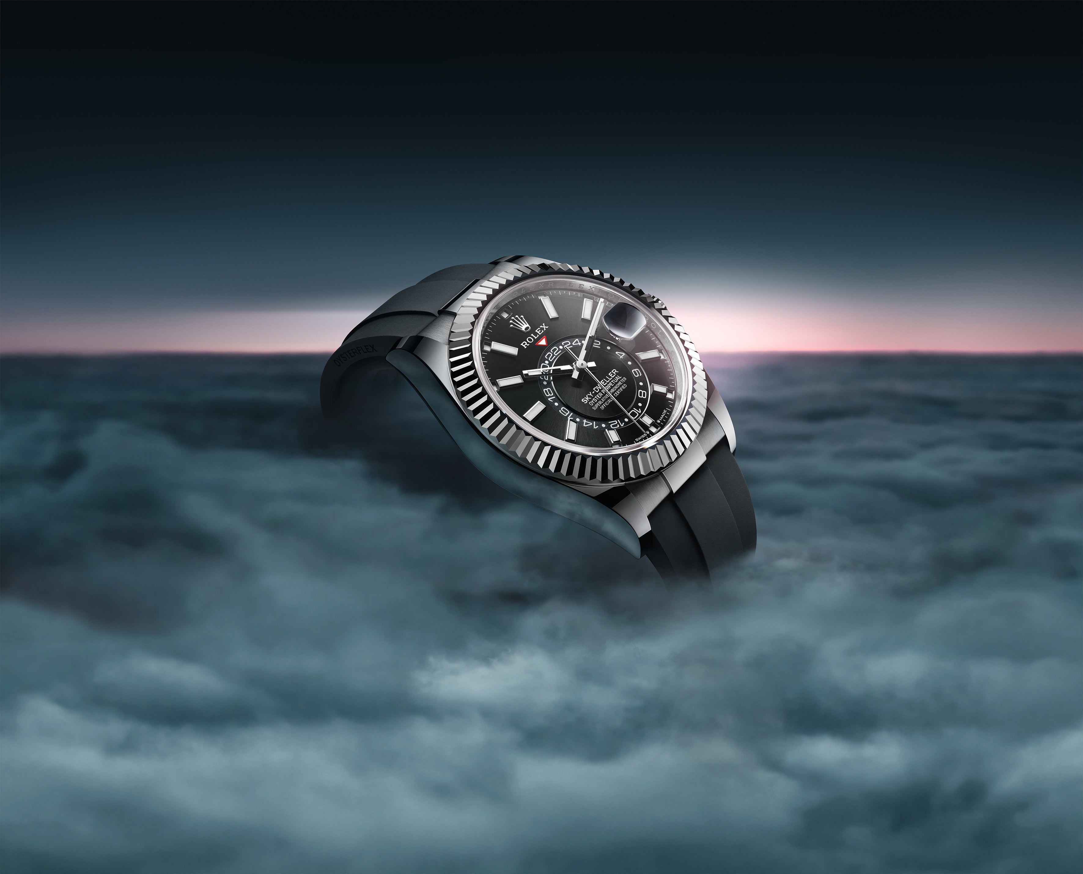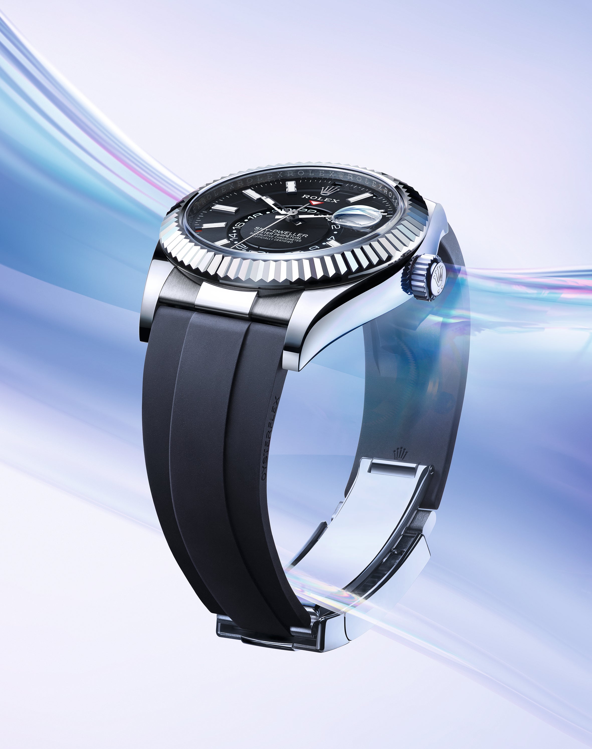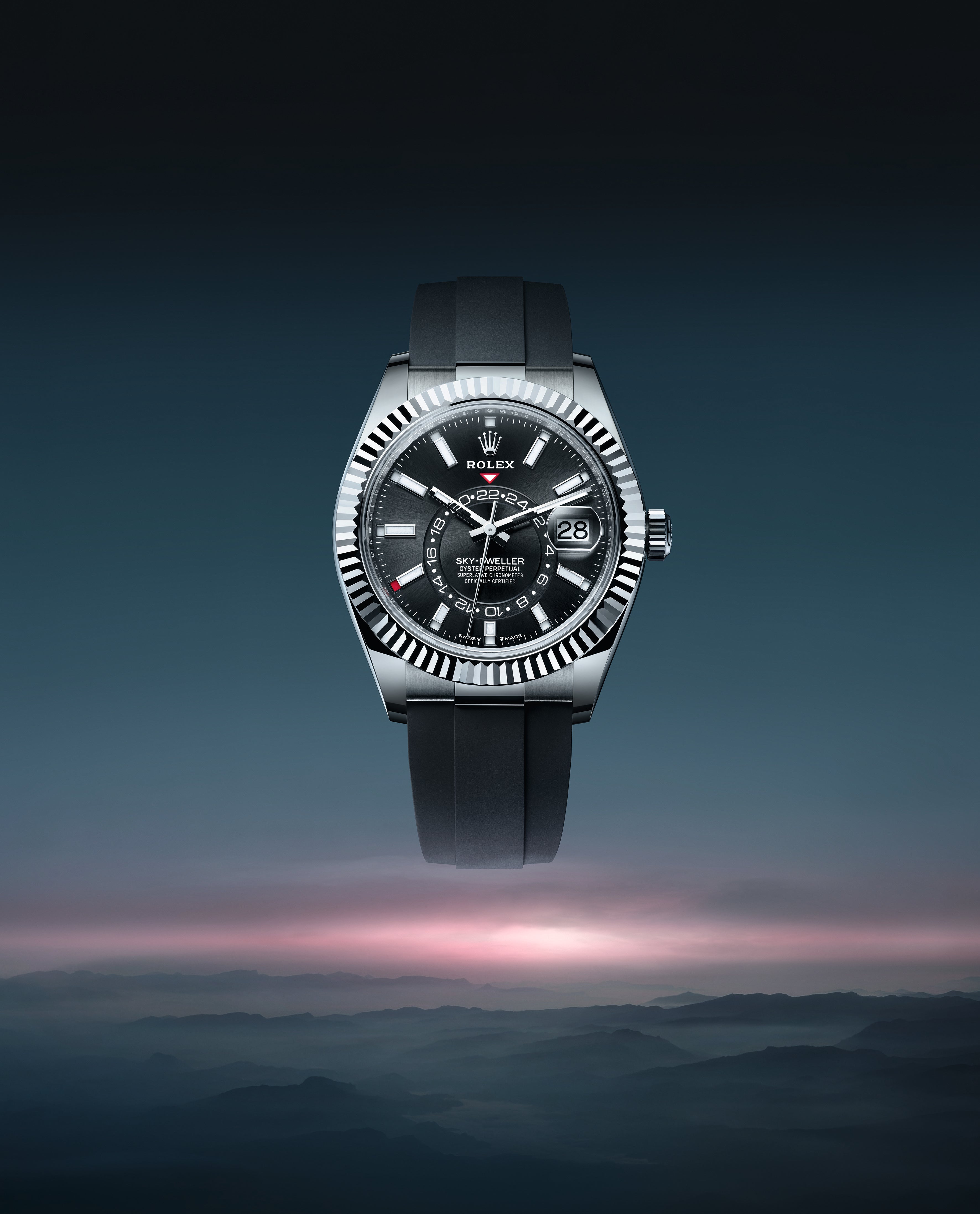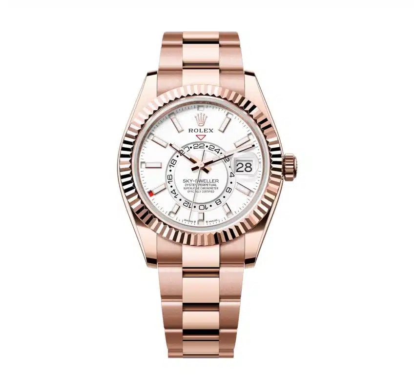 An elegant watch for world travelers, the Oyster Perpetual Sky-Dweller is a distinctive timepiece of revolutionary design that blends technological sophistication and ease of use.