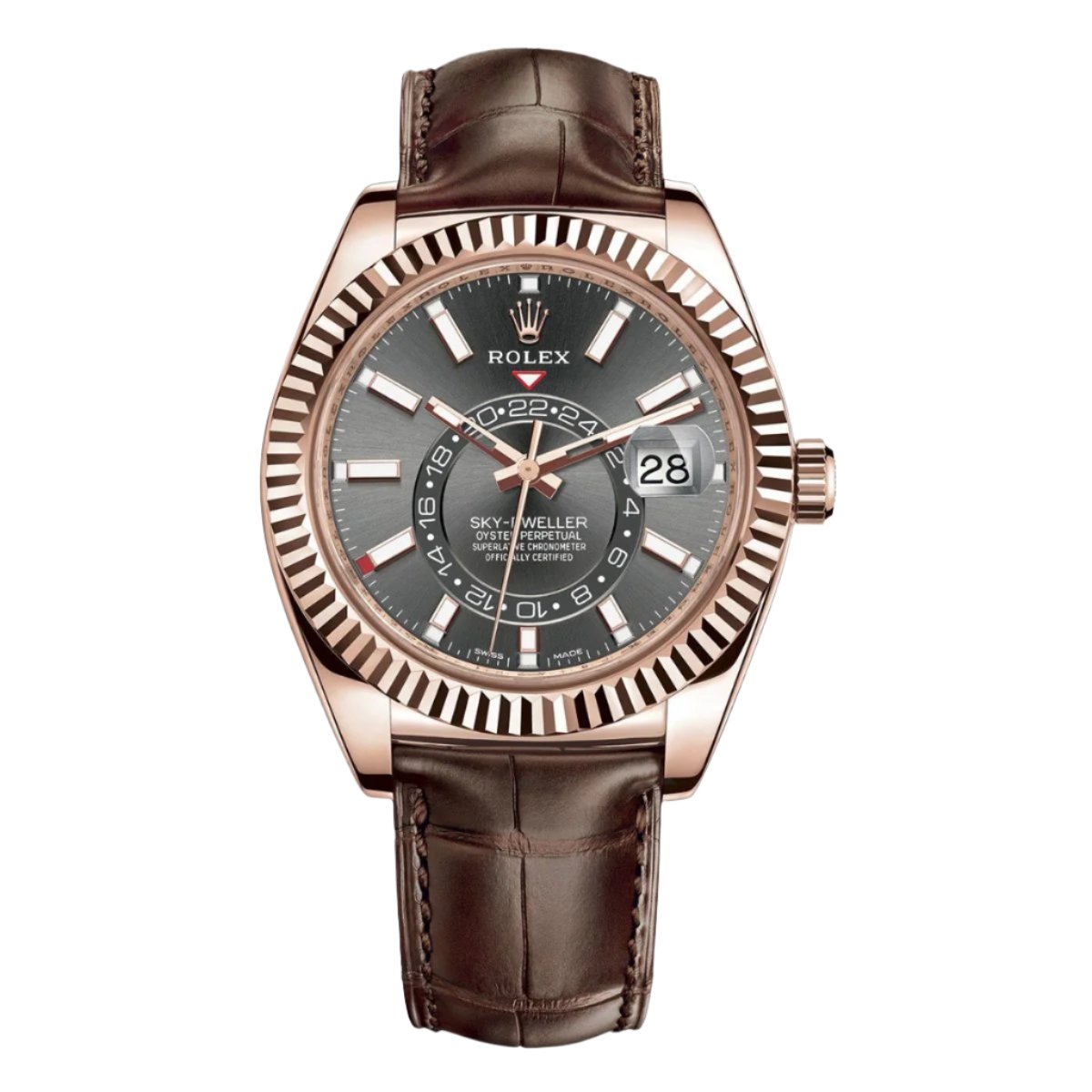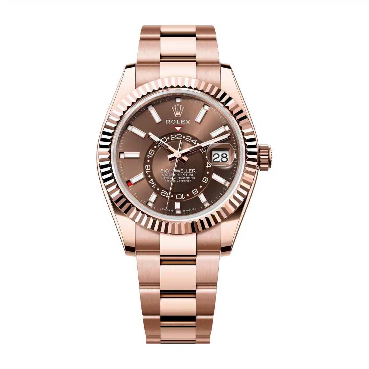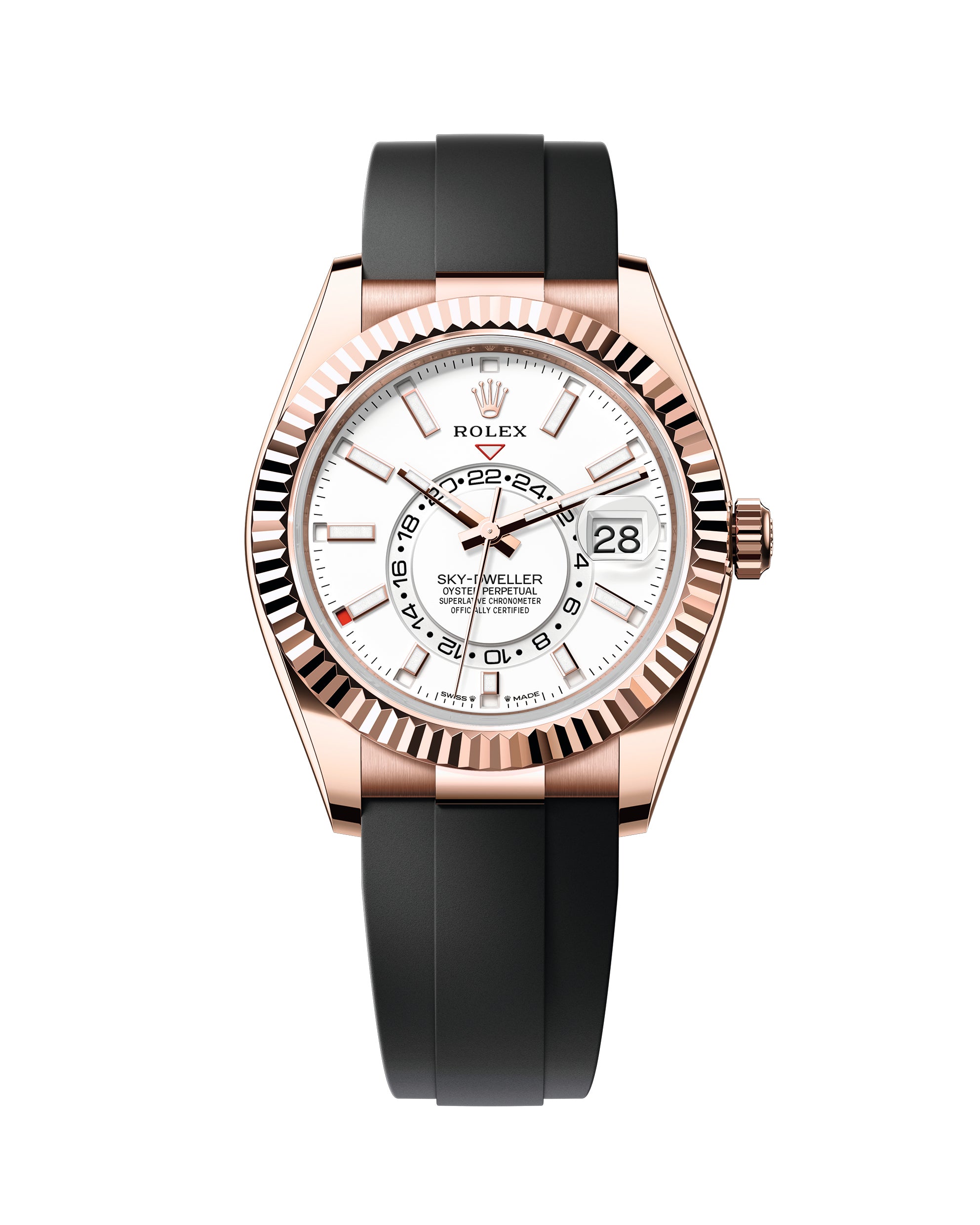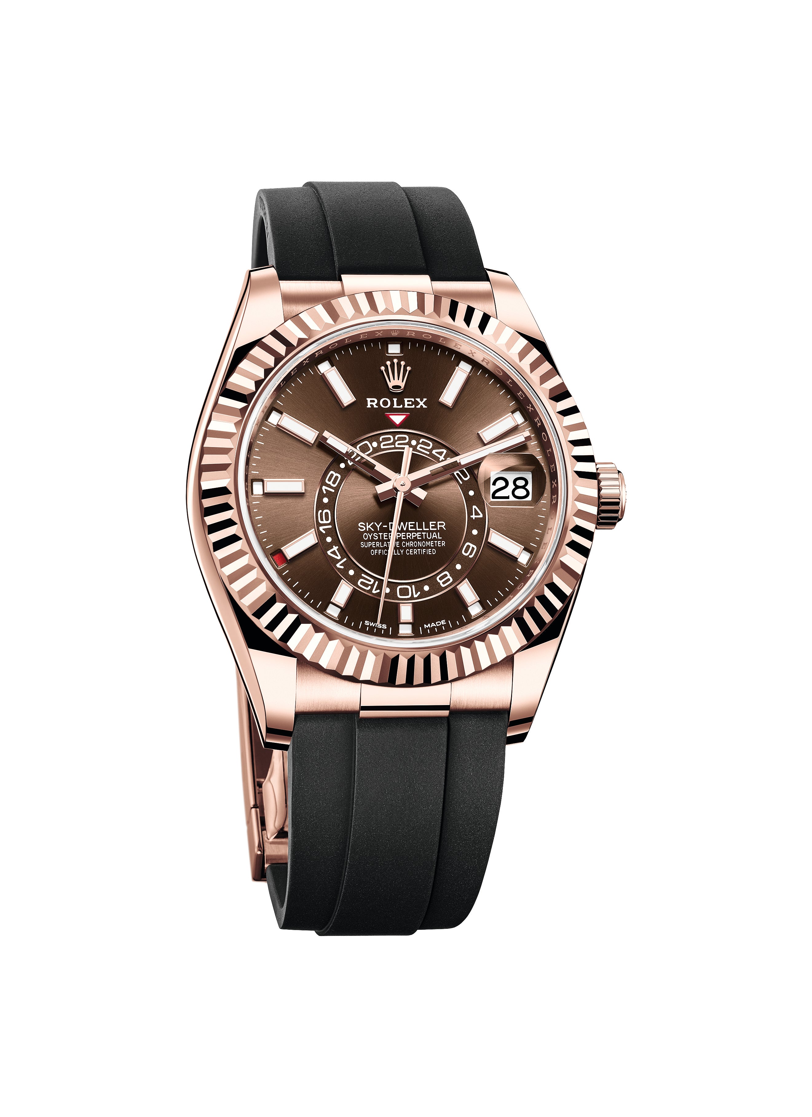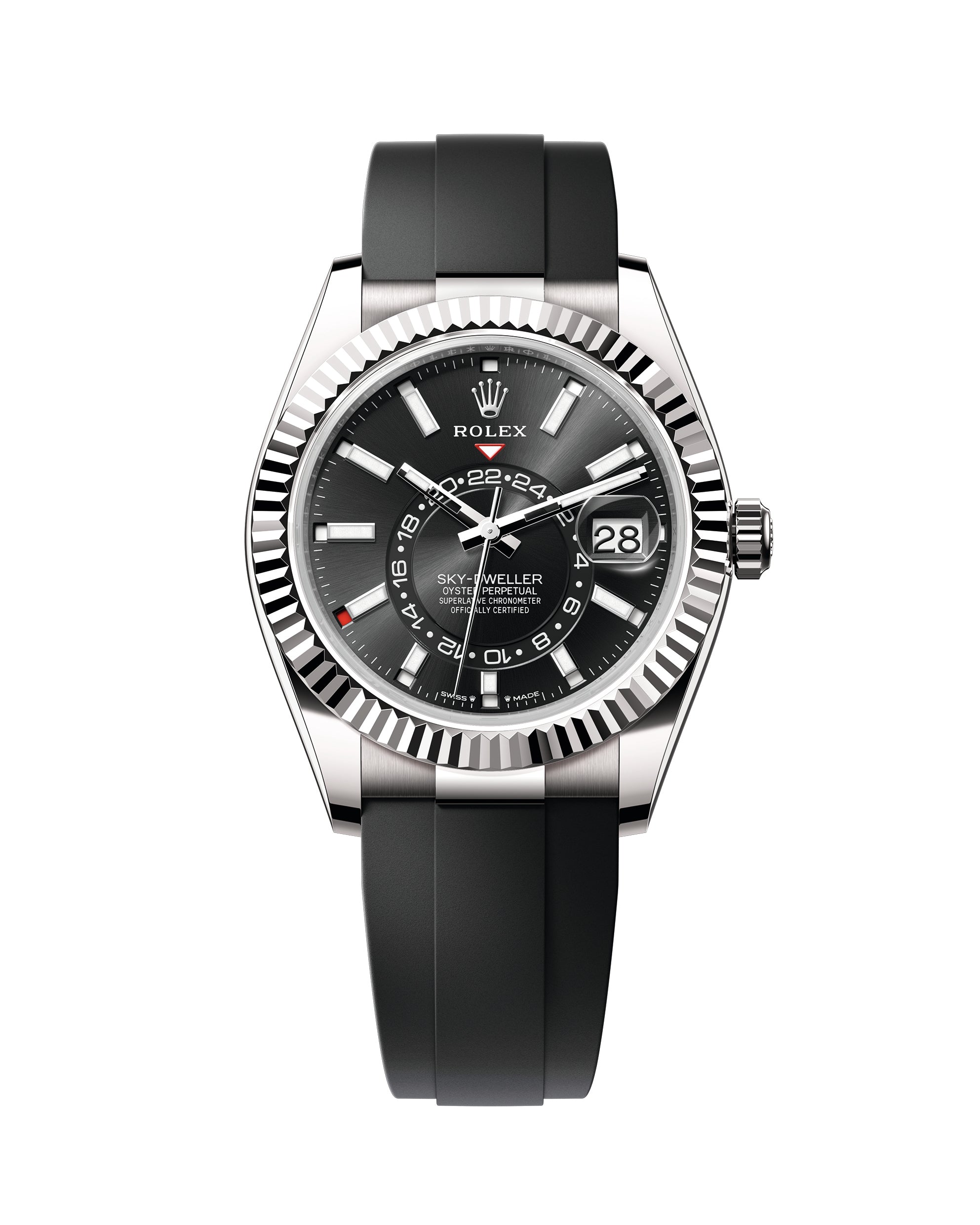 An elegant watch for world travelers, the Oyster Perpetual Sky-Dweller is a distinctive timepiece of revolutionary design that blends technological sophistication and ease of use.