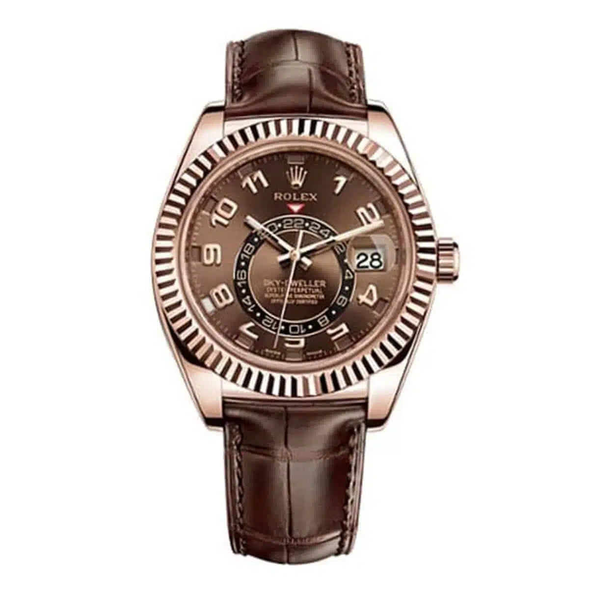 Sky-Dweller Everose Gold Brown Leather Chocolate Roman