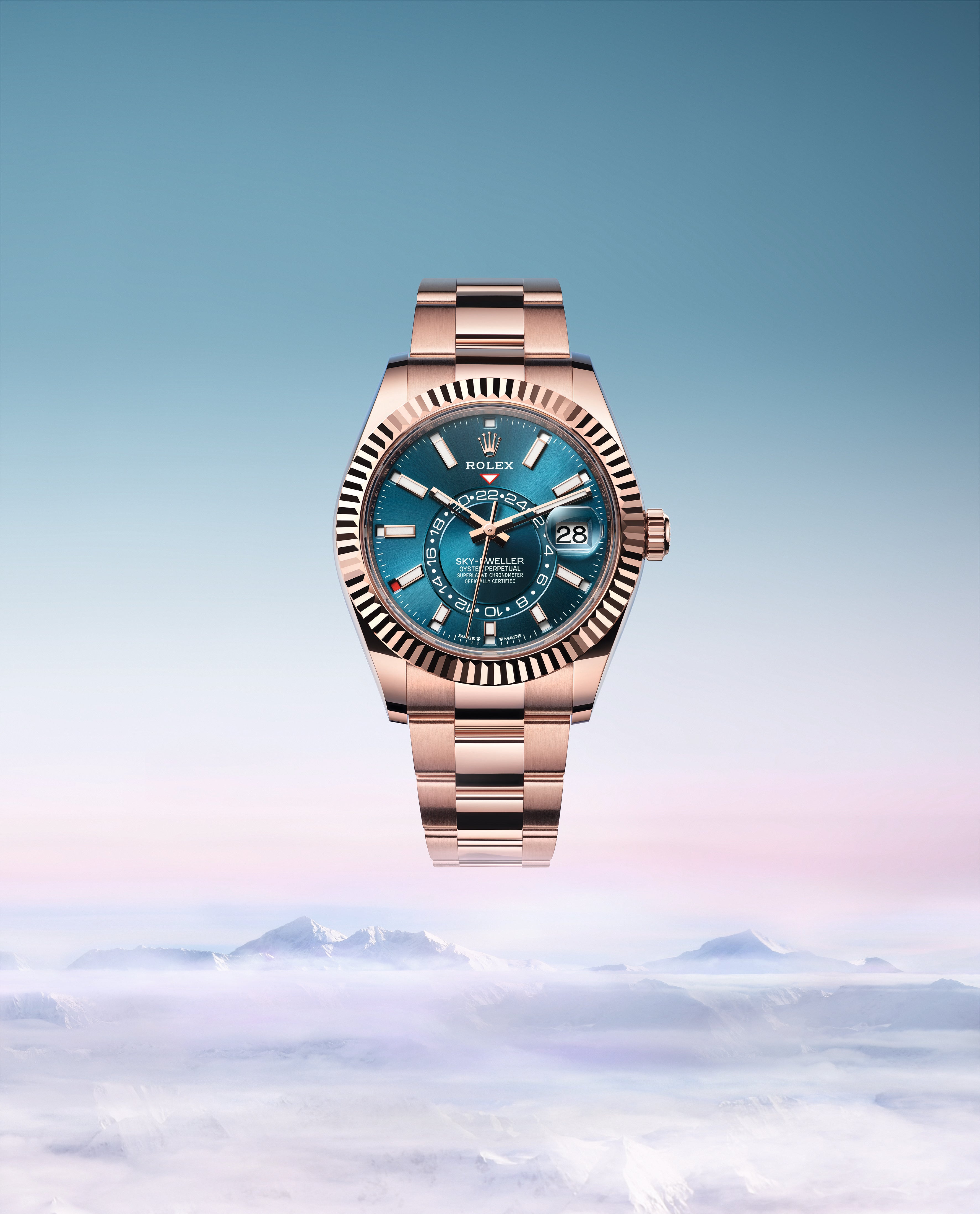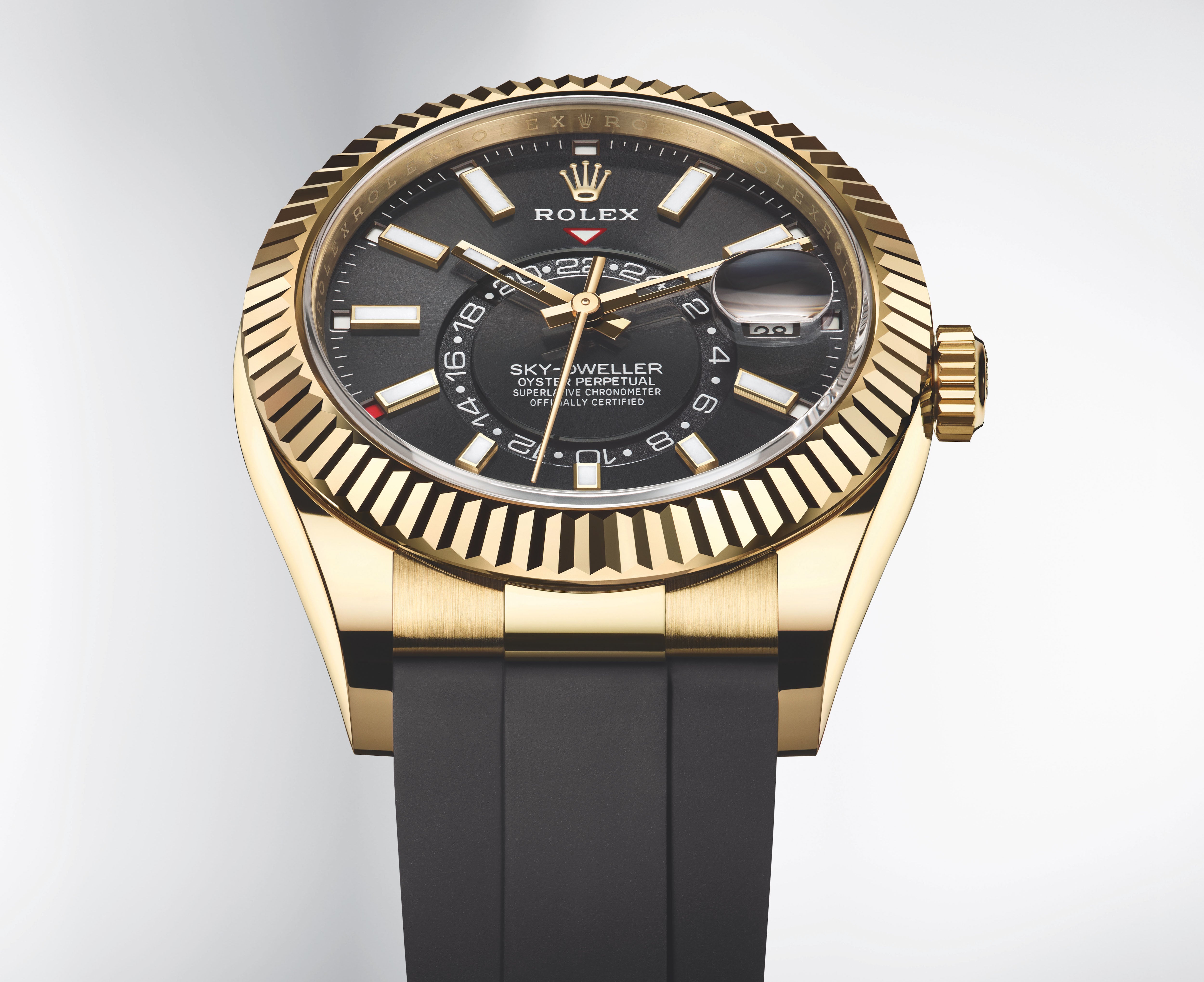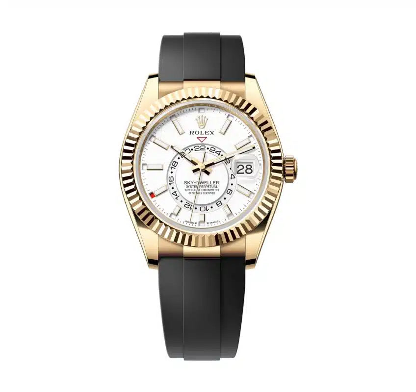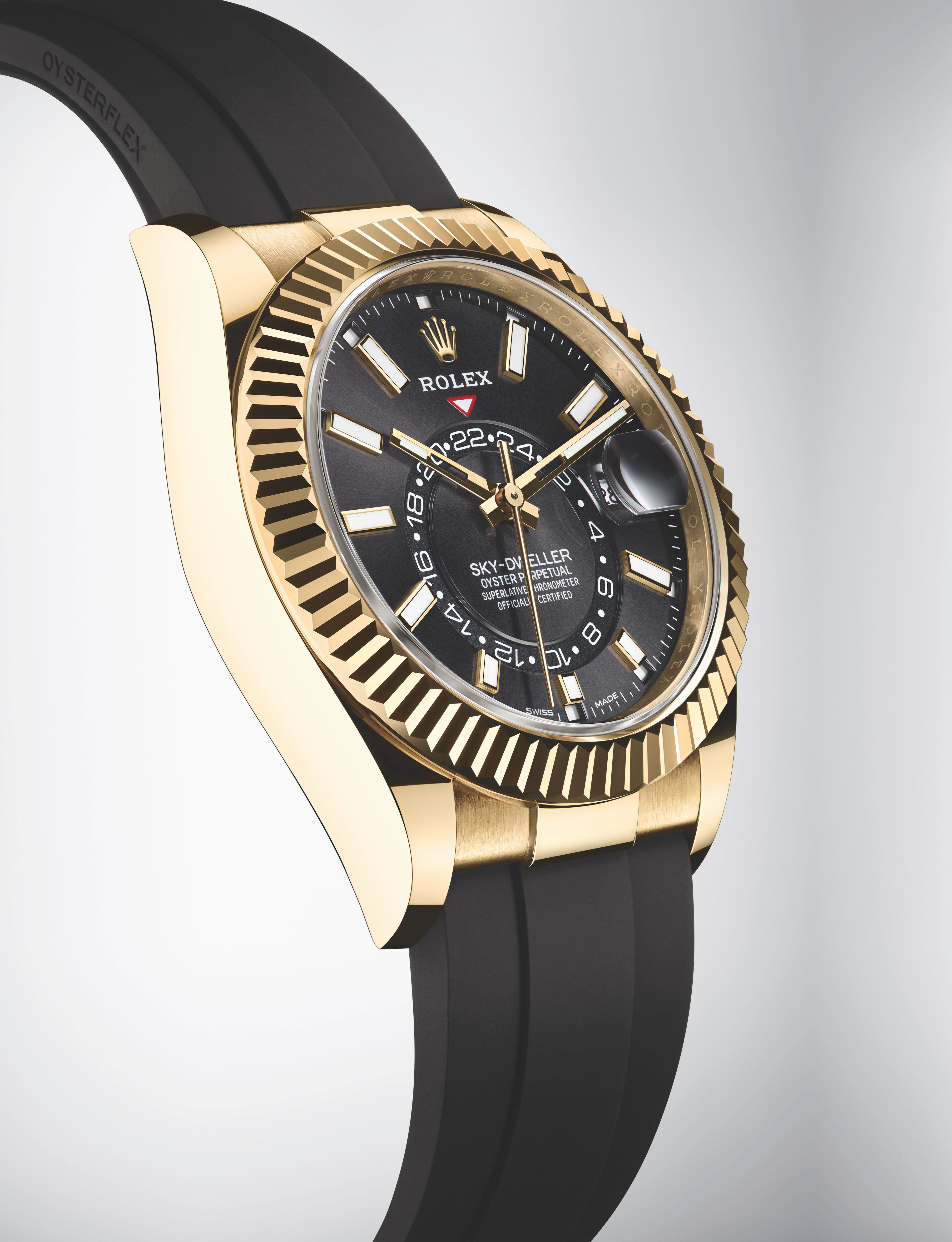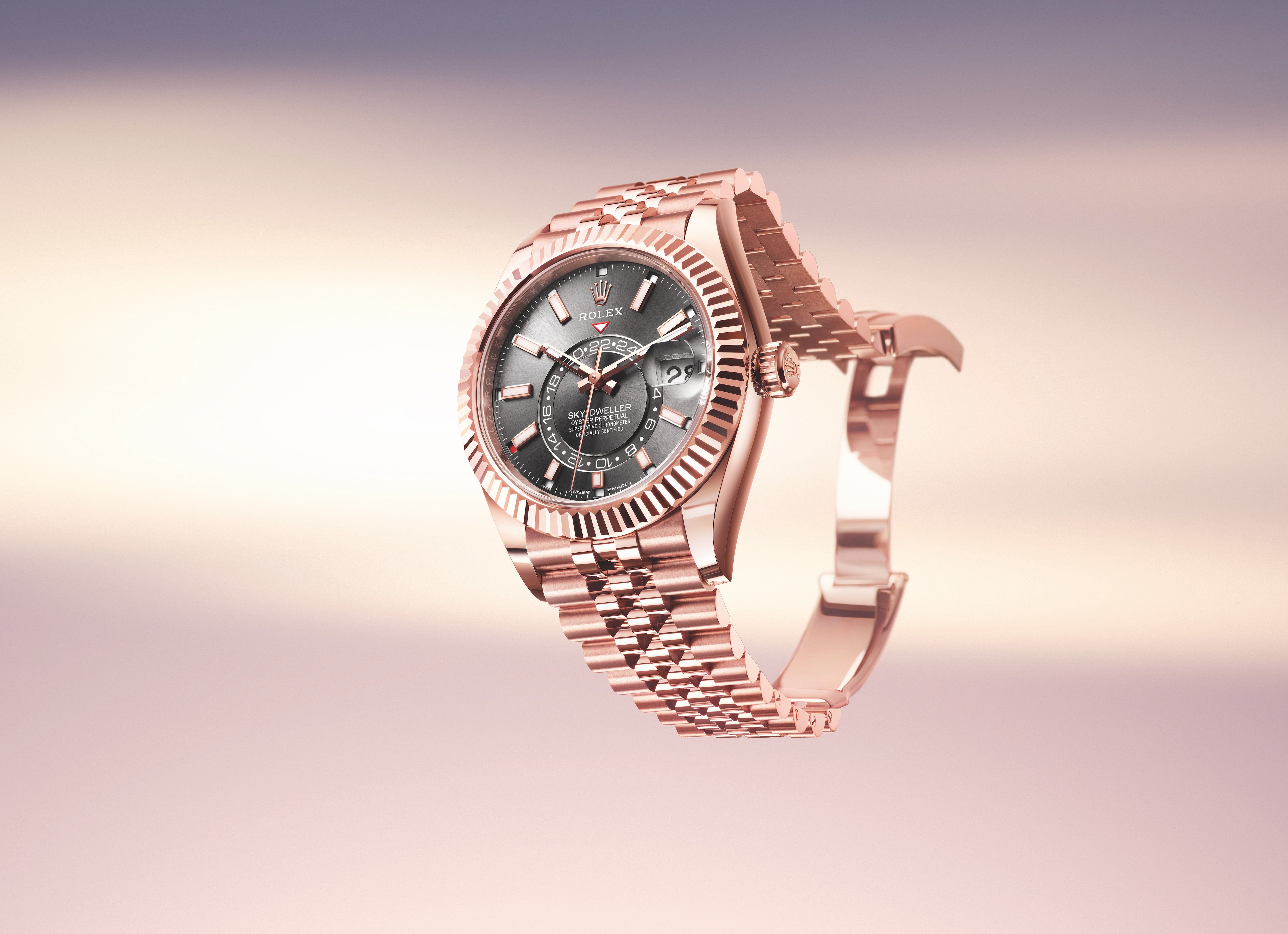 An elegant watch for world travelers, the Oyster Perpetual Sky-Dweller is a distinctive timepiece of revolutionary design that blends technological sophistication and ease of use.