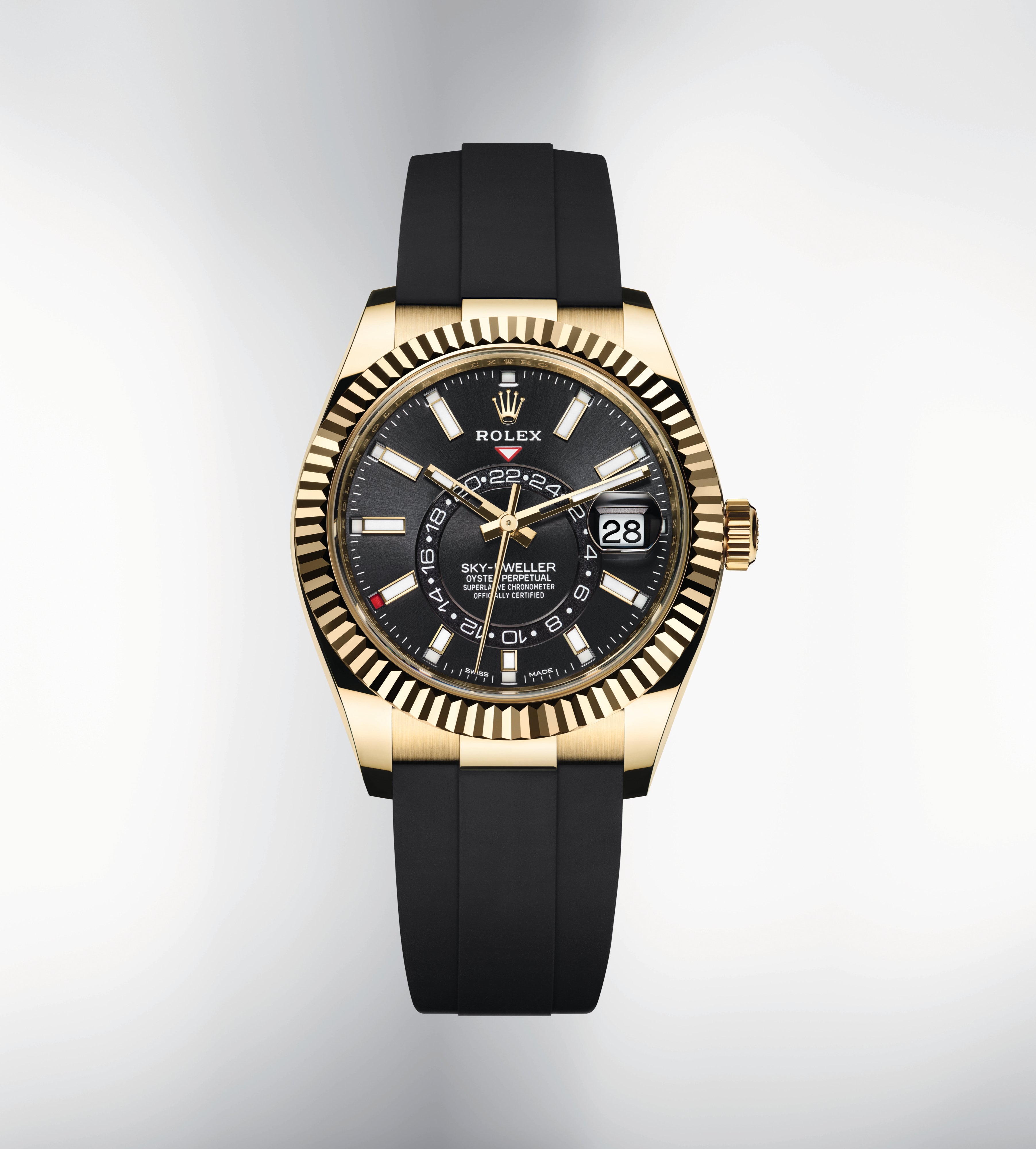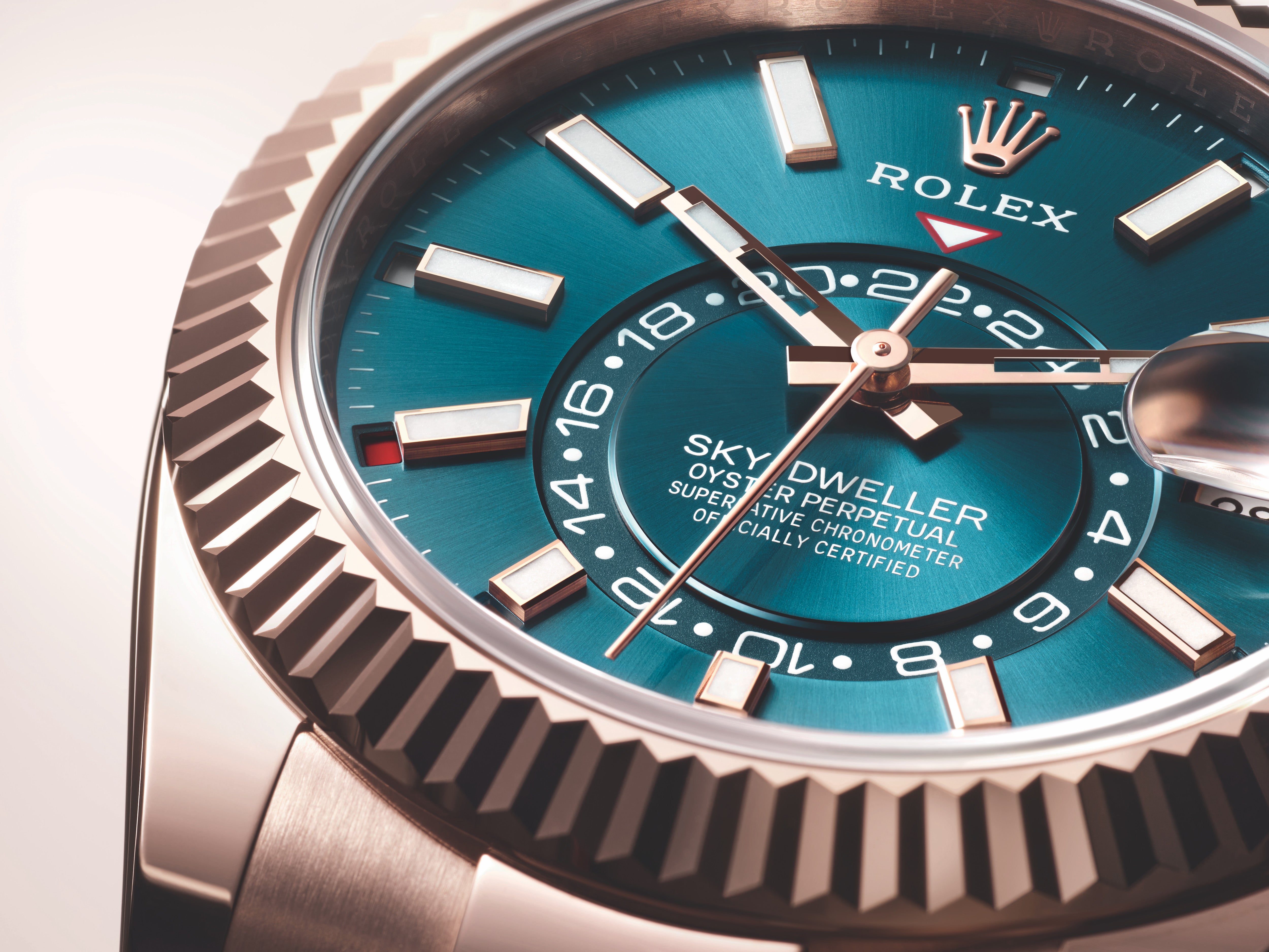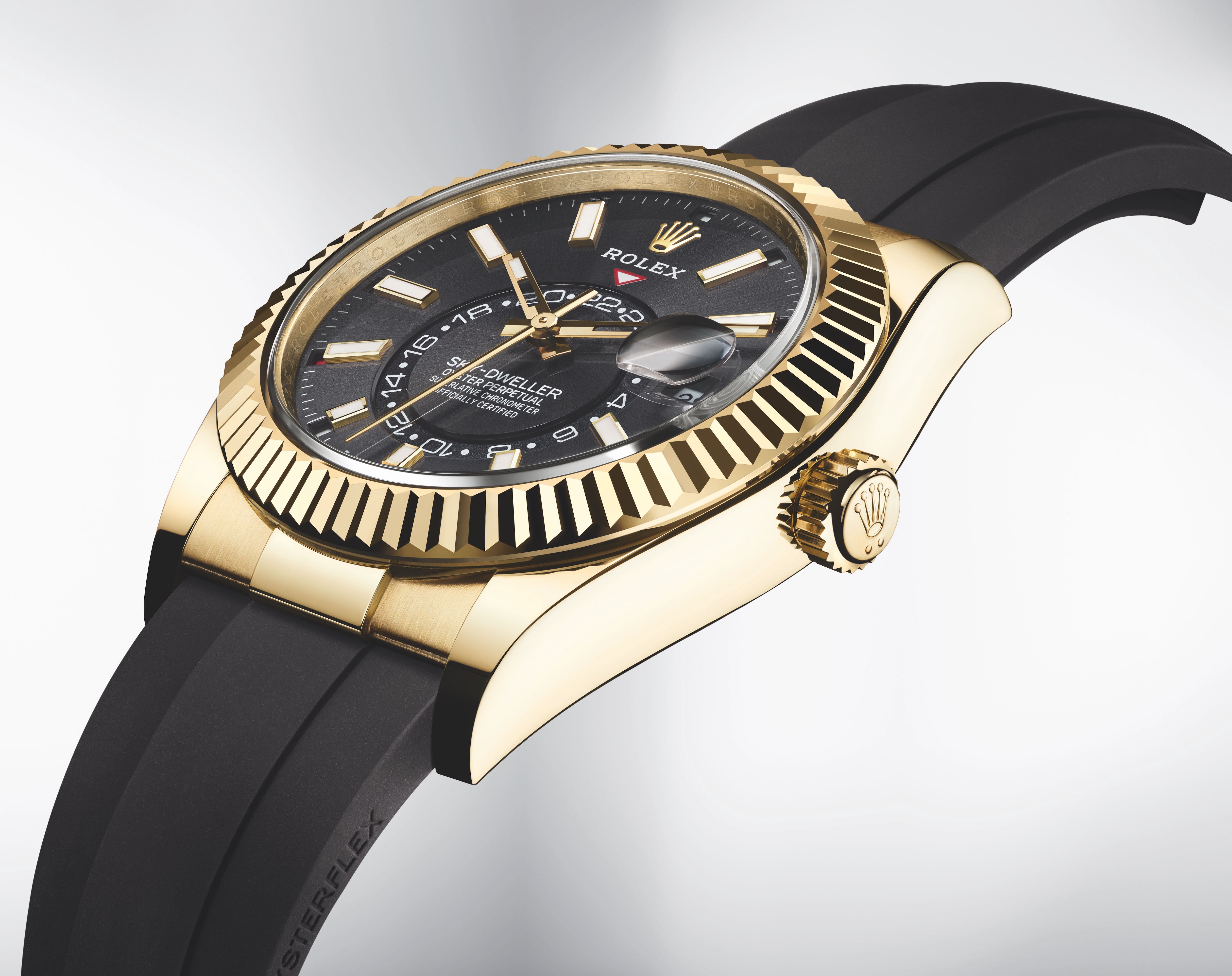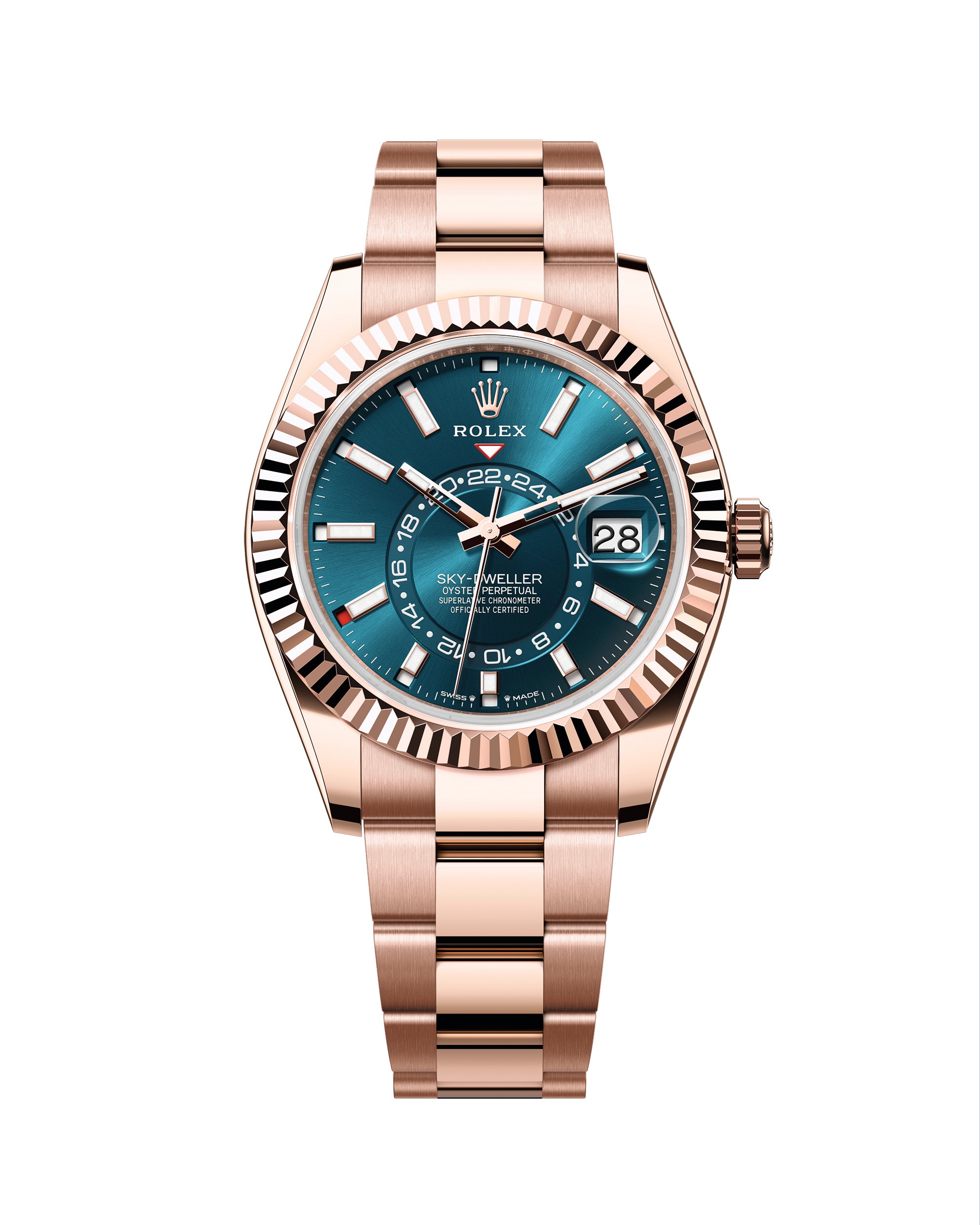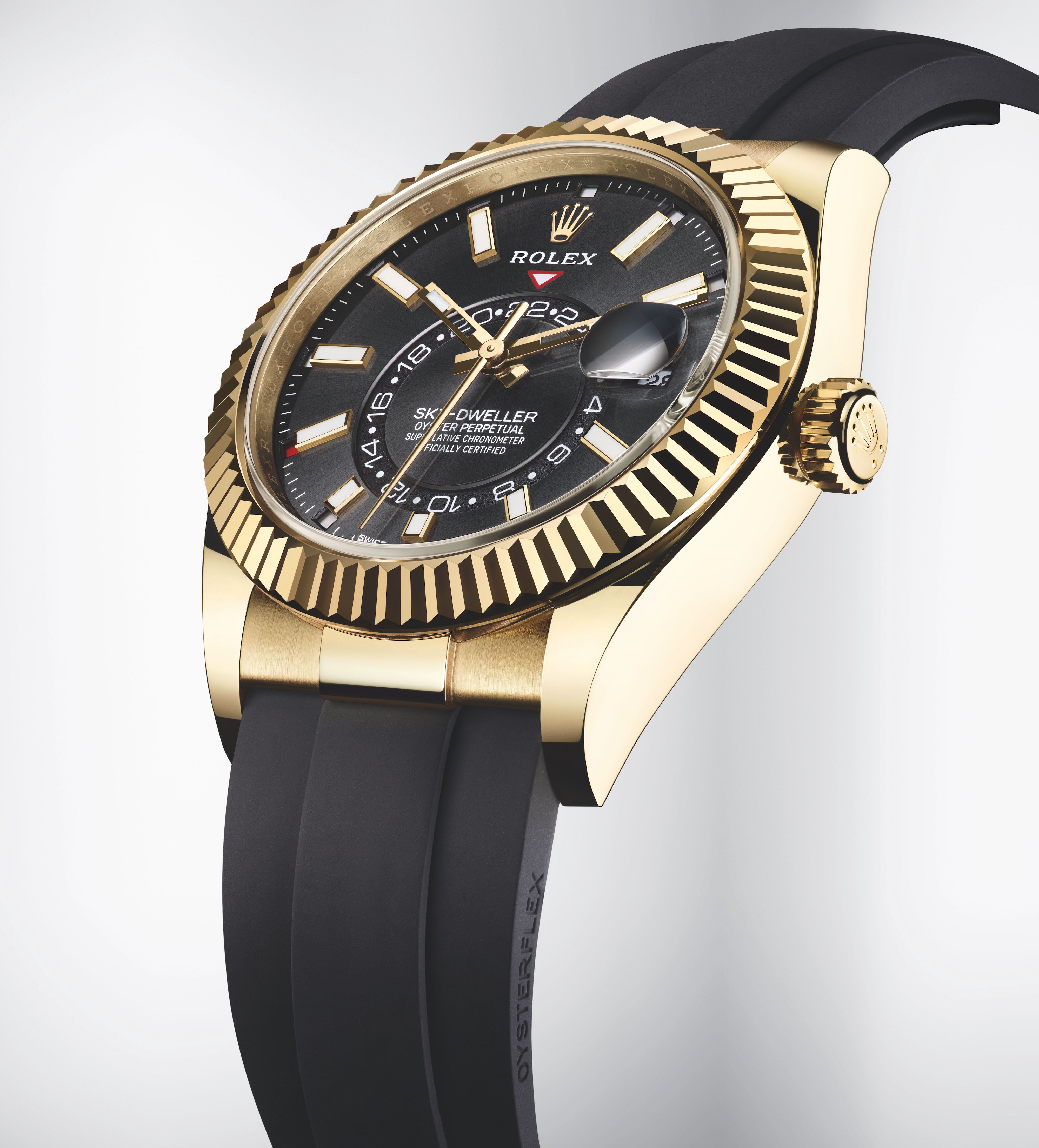 An elegant watch for world travelers, the Oyster Perpetual Sky-Dweller is a distinctive timepiece of revolutionary design that blends technological sophistication and ease of use.