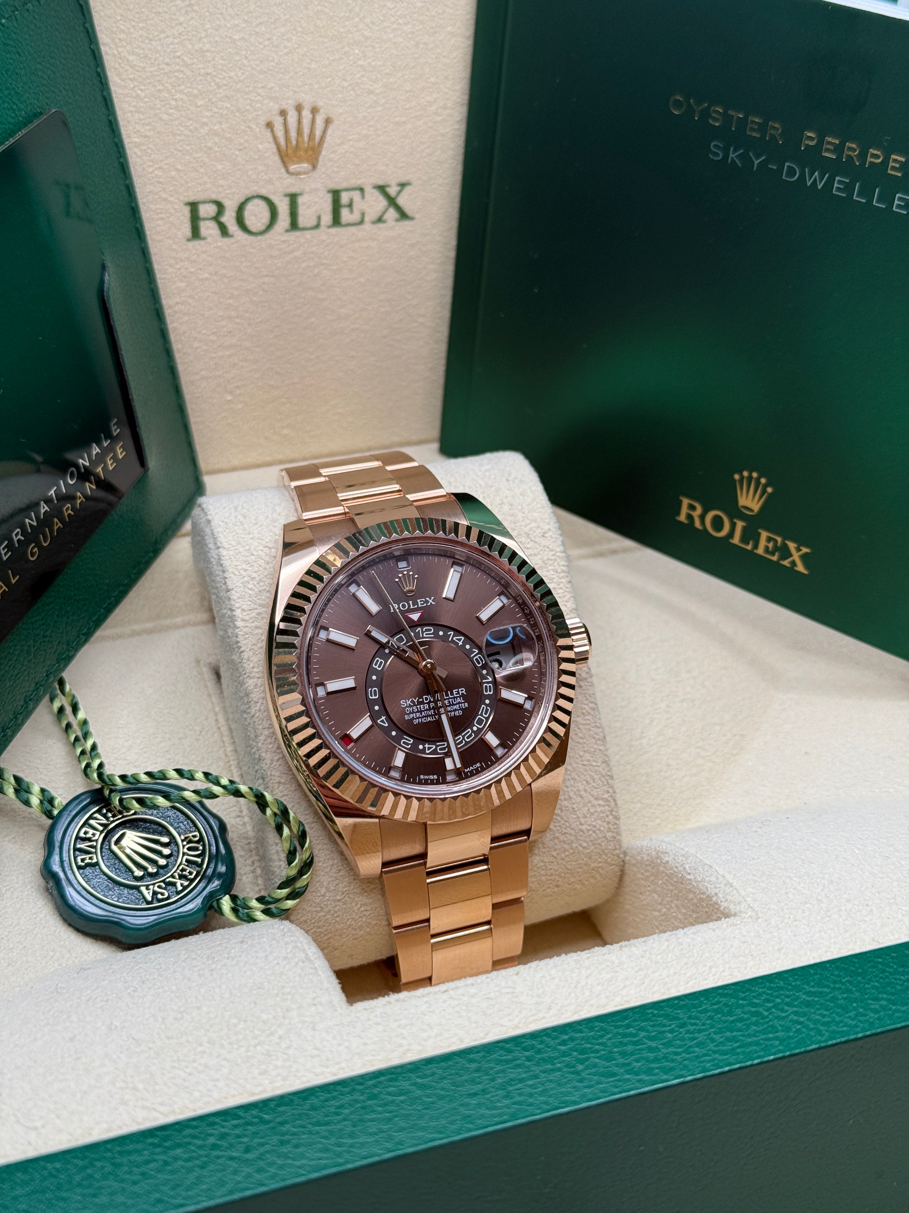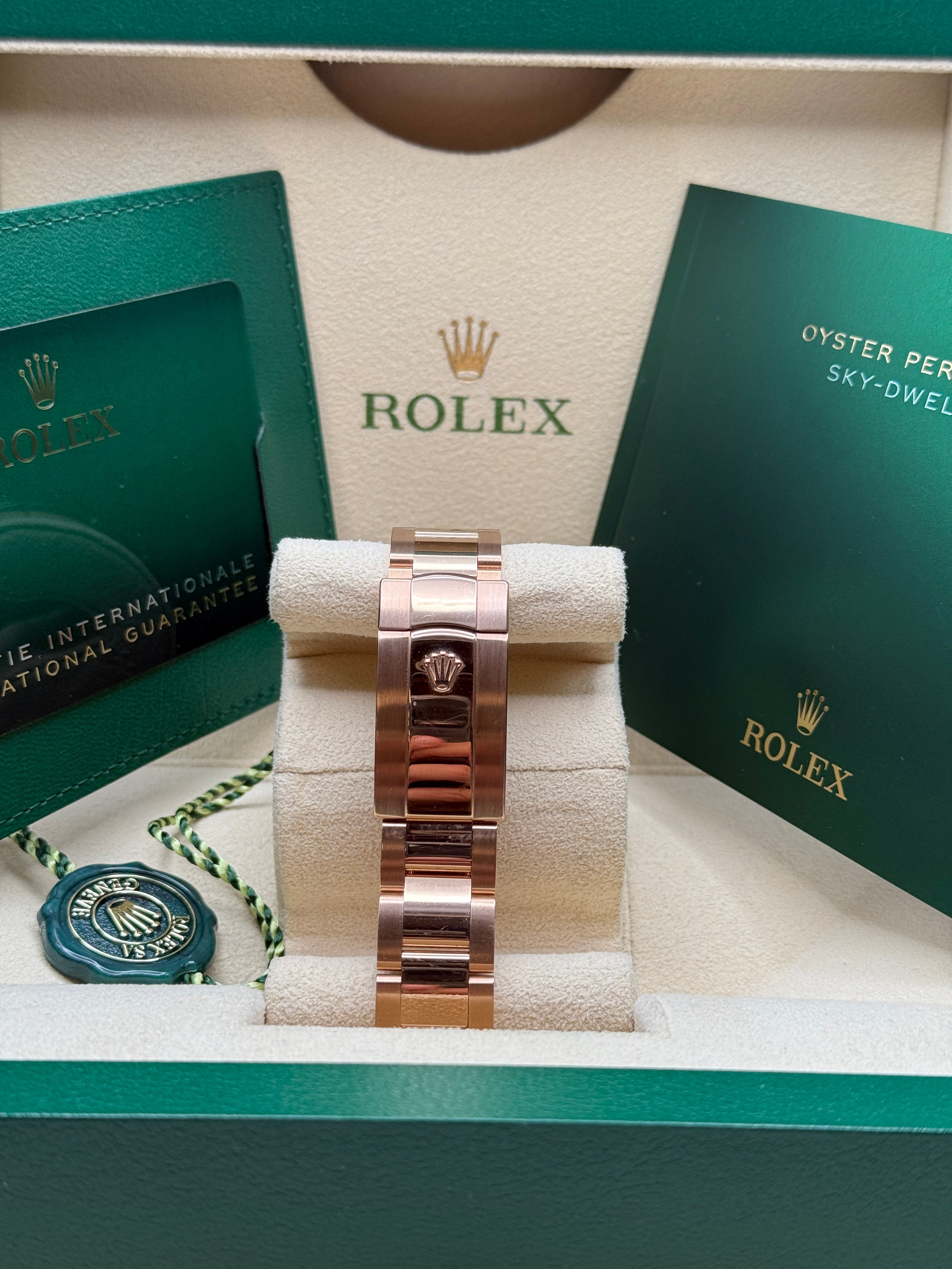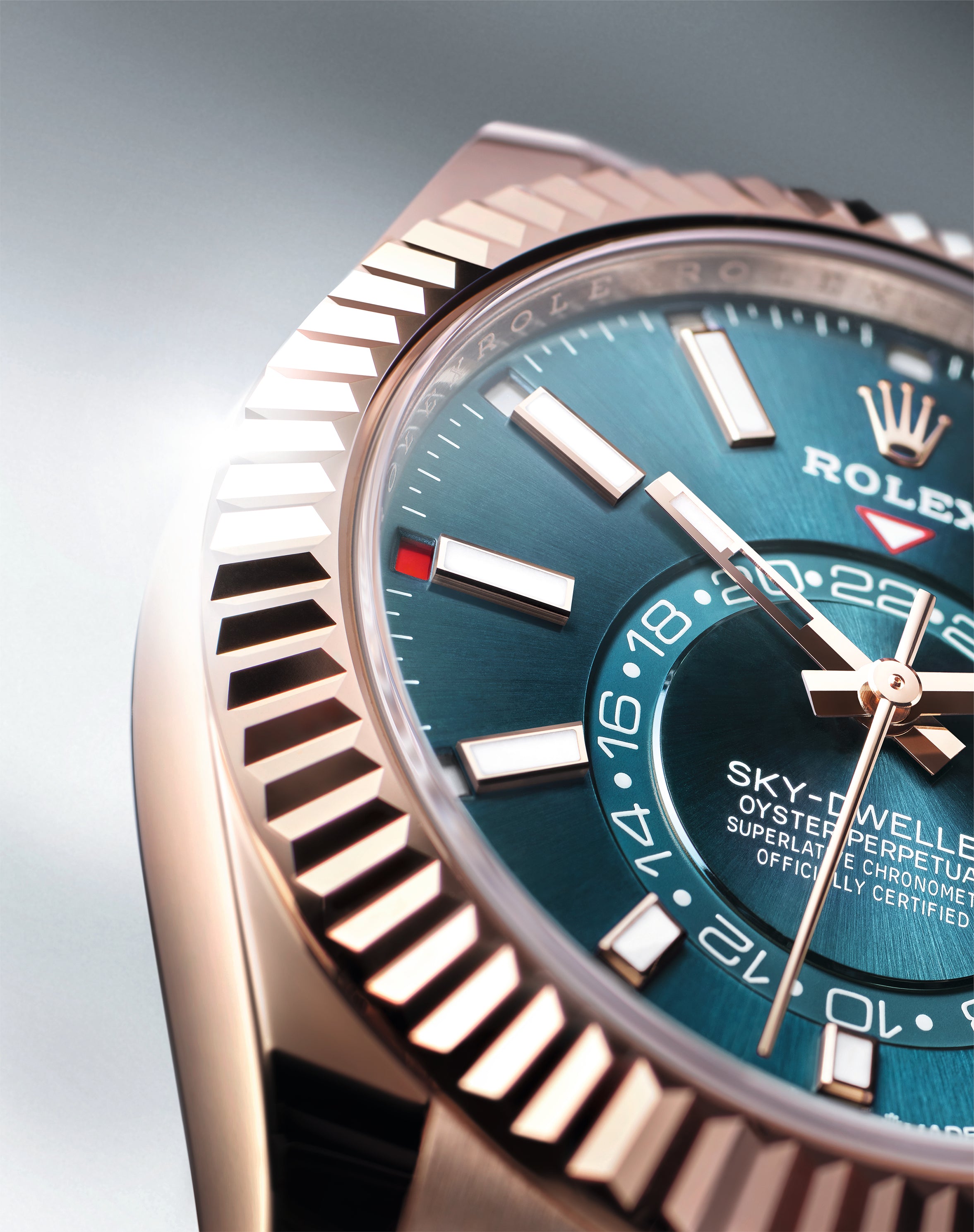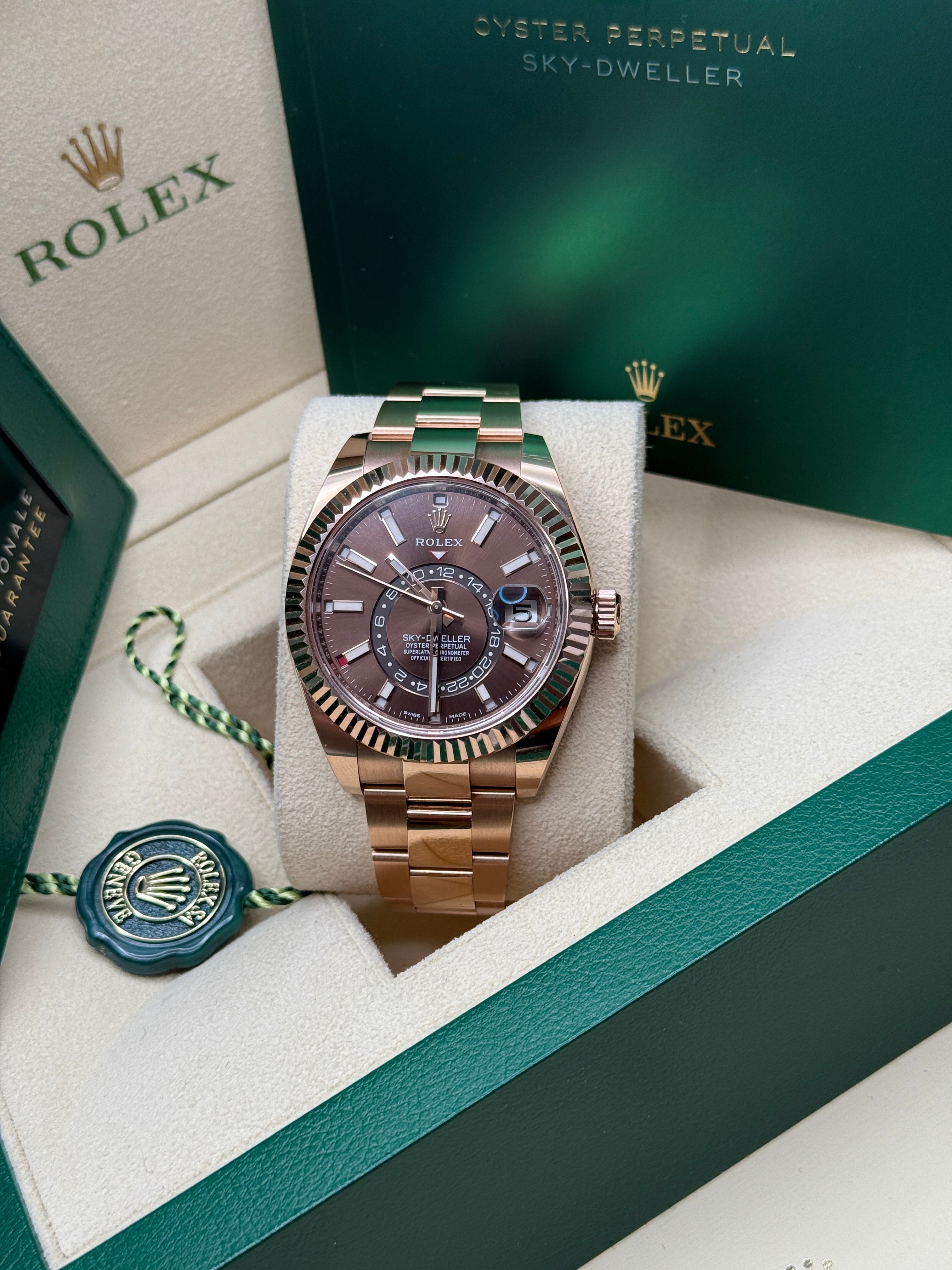 An elegant watch for world travelers, the Oyster Perpetual Sky-Dweller is a distinctive timepiece of revolutionary design that blends technological sophistication and ease of use.