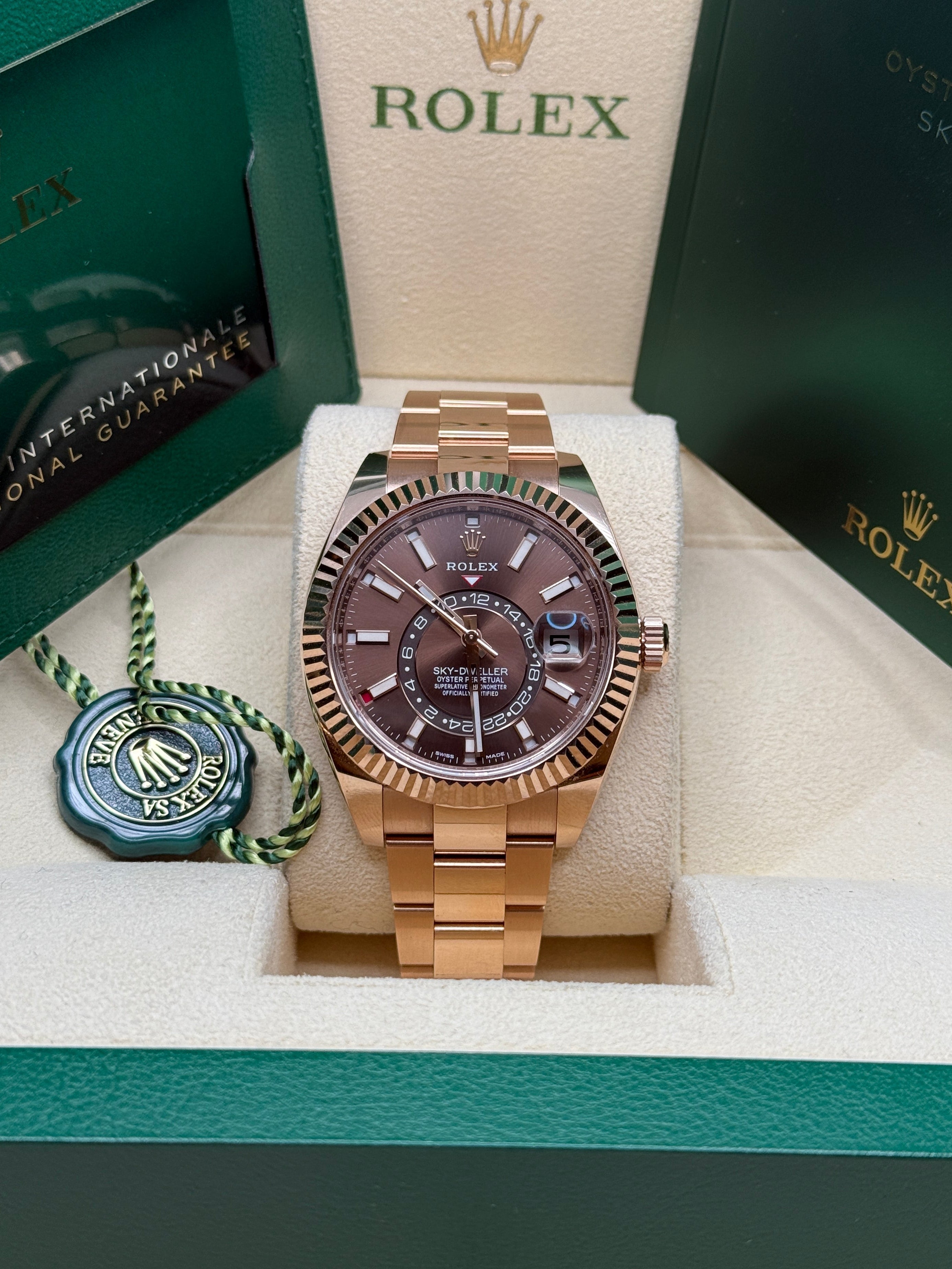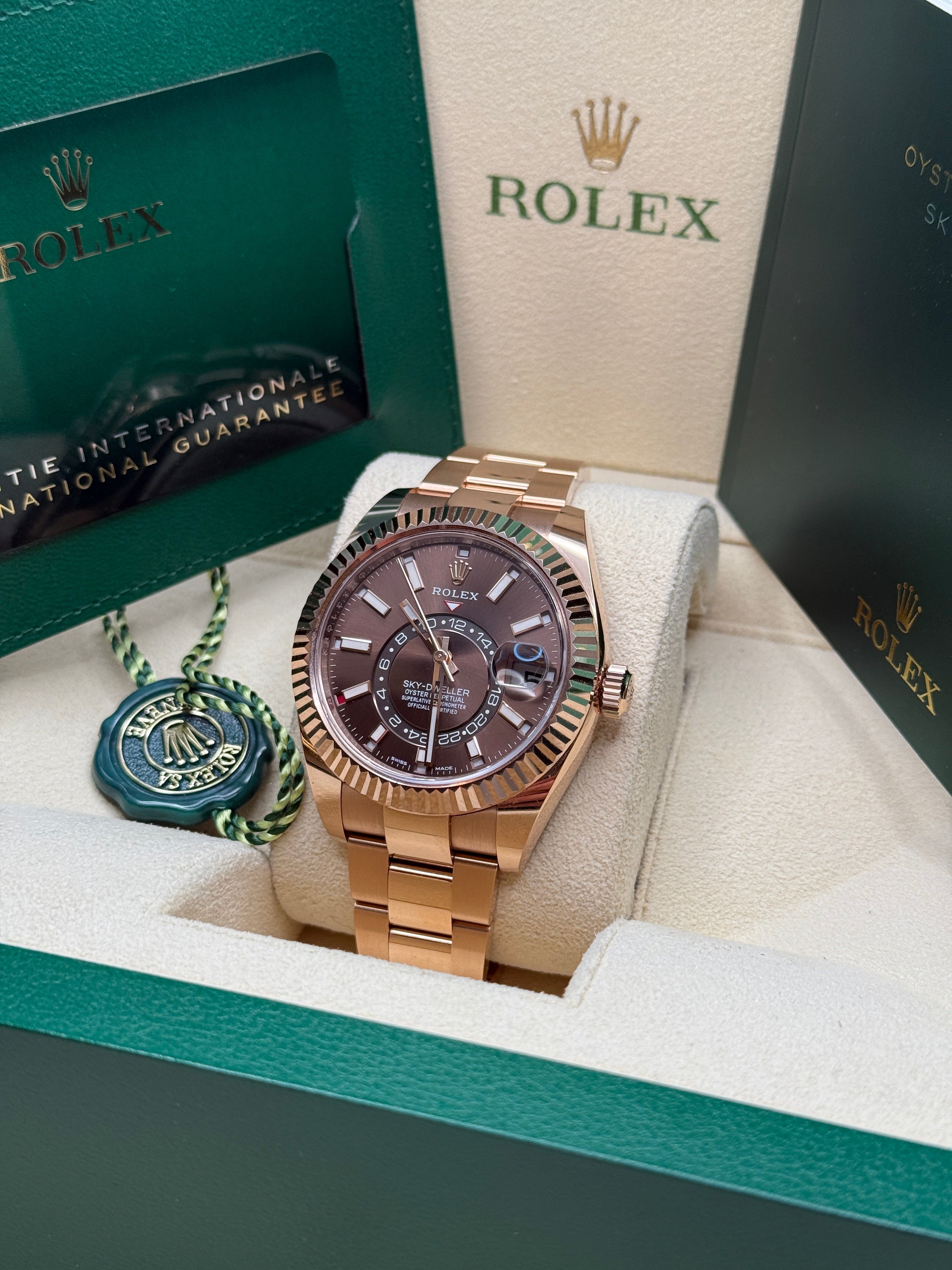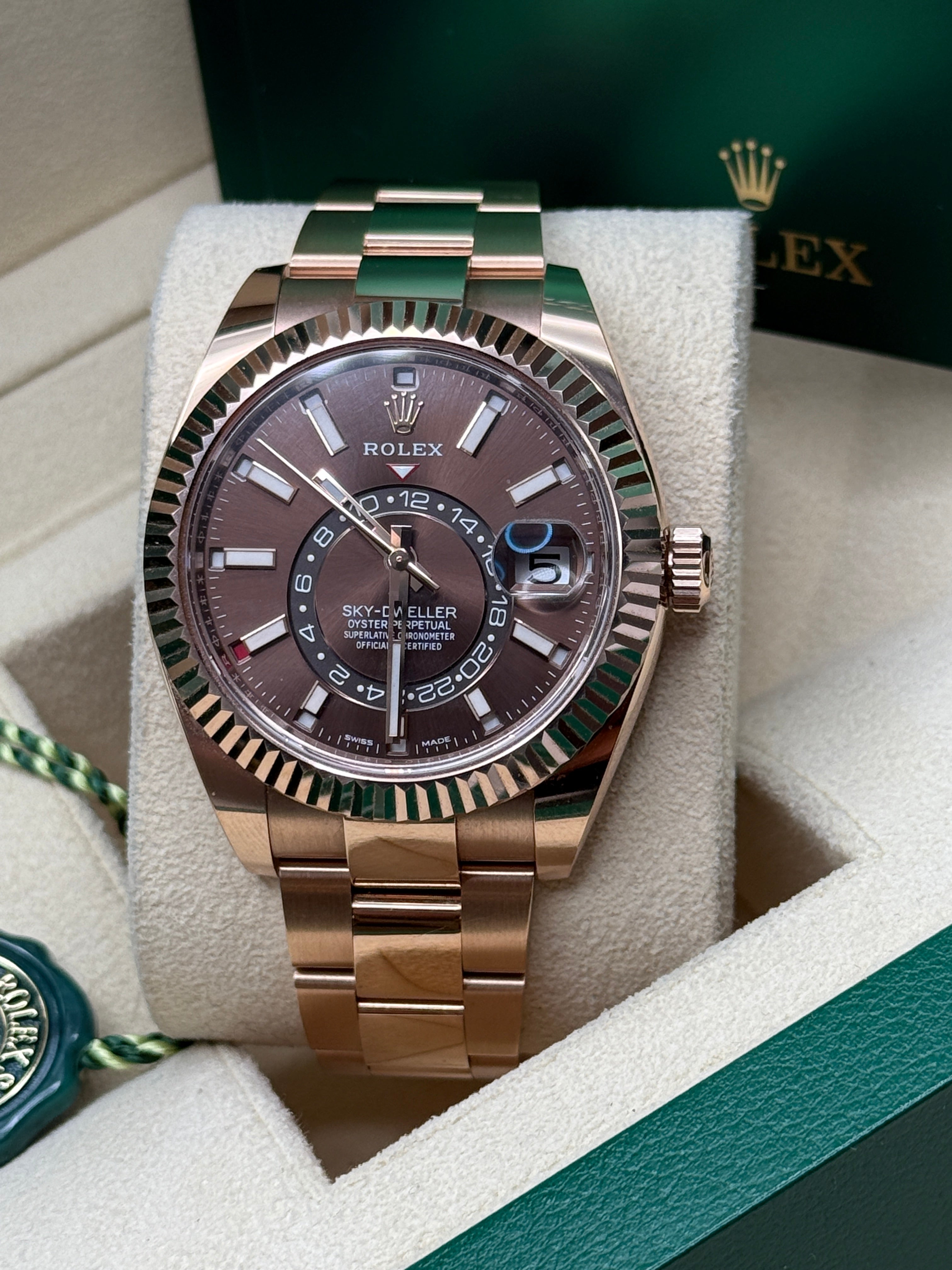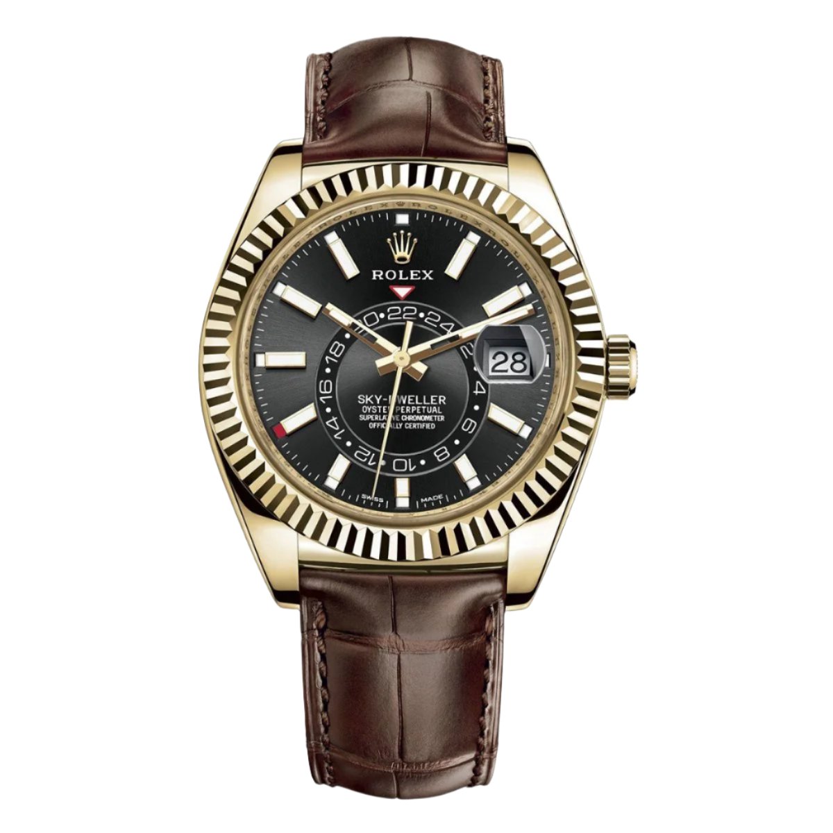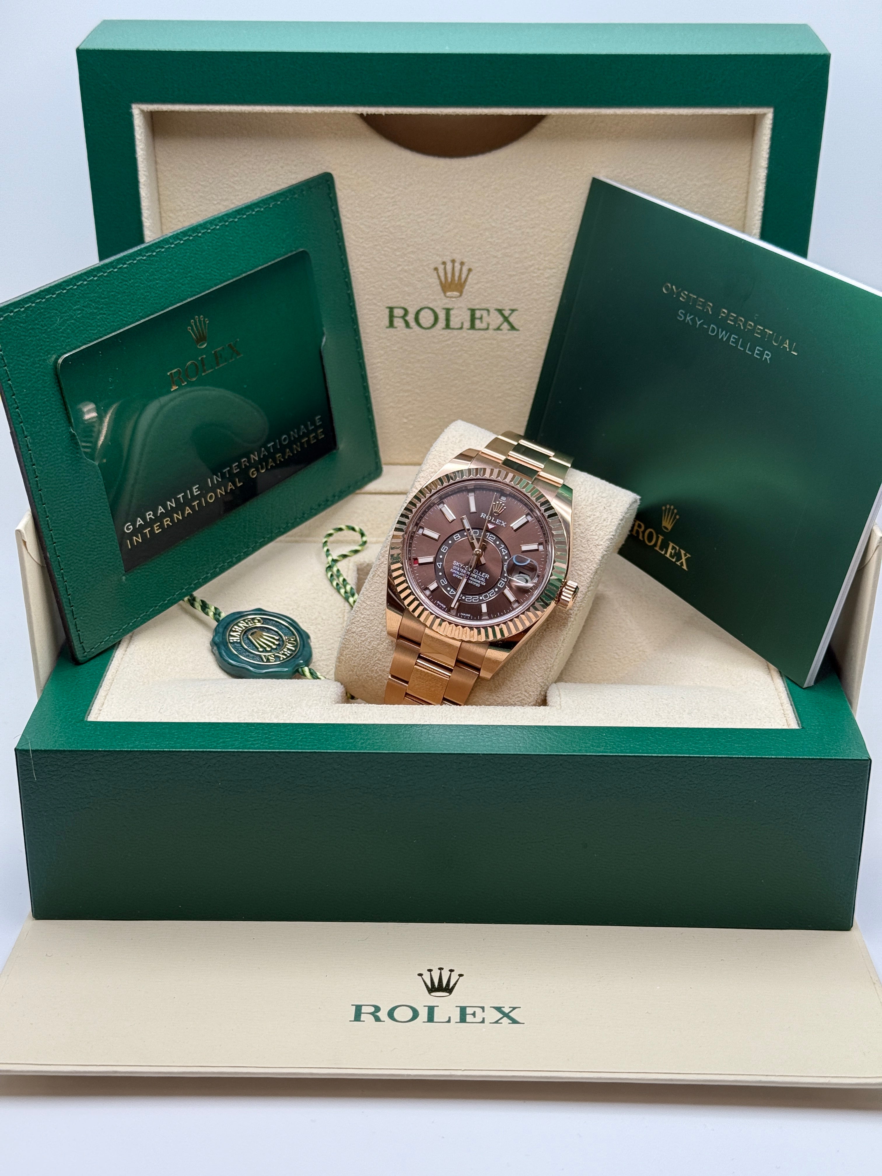 An elegant watch for world travelers, the Oyster Perpetual Sky-Dweller is a distinctive timepiece of revolutionary design that blends technological sophistication and ease of use.