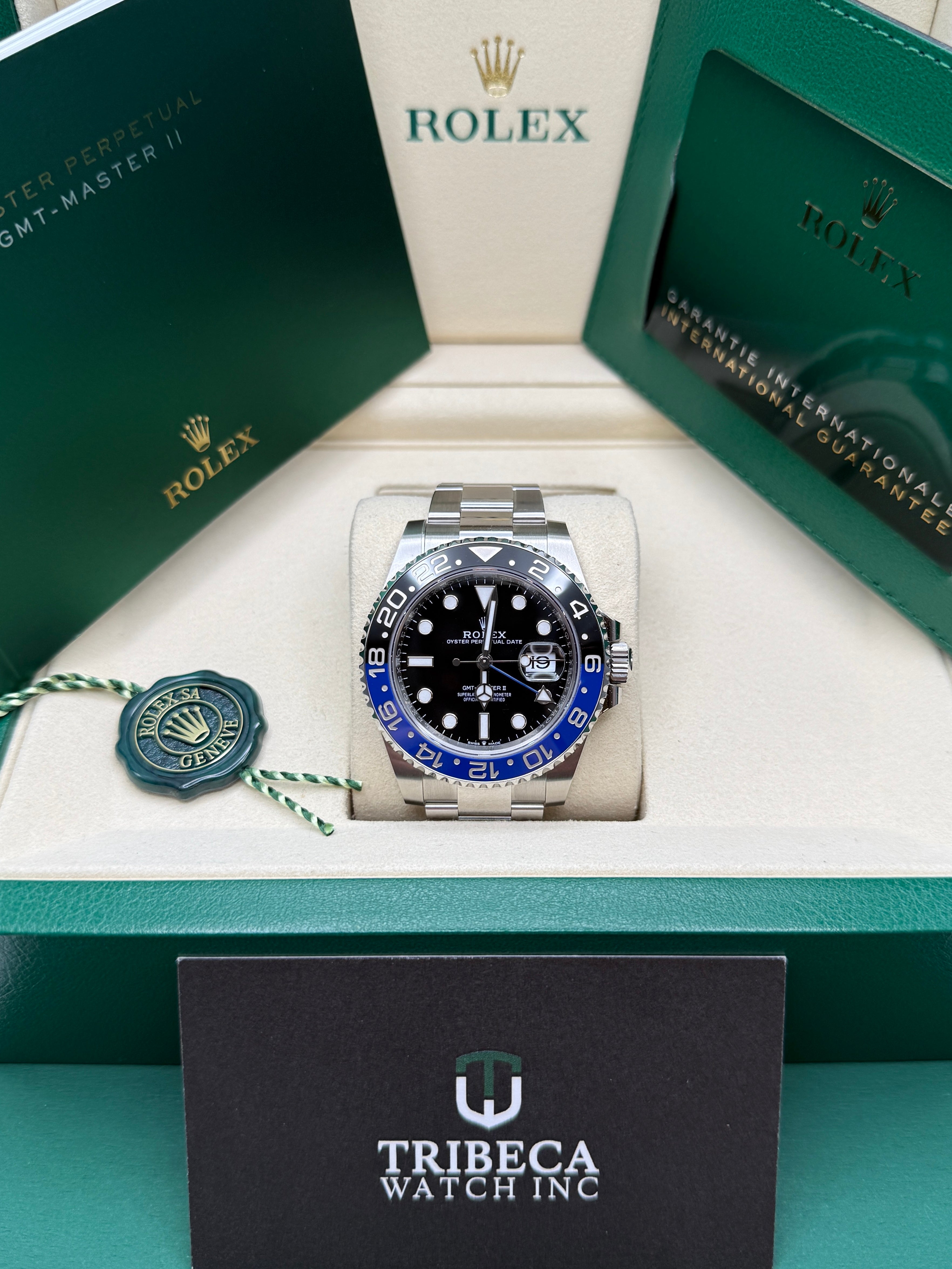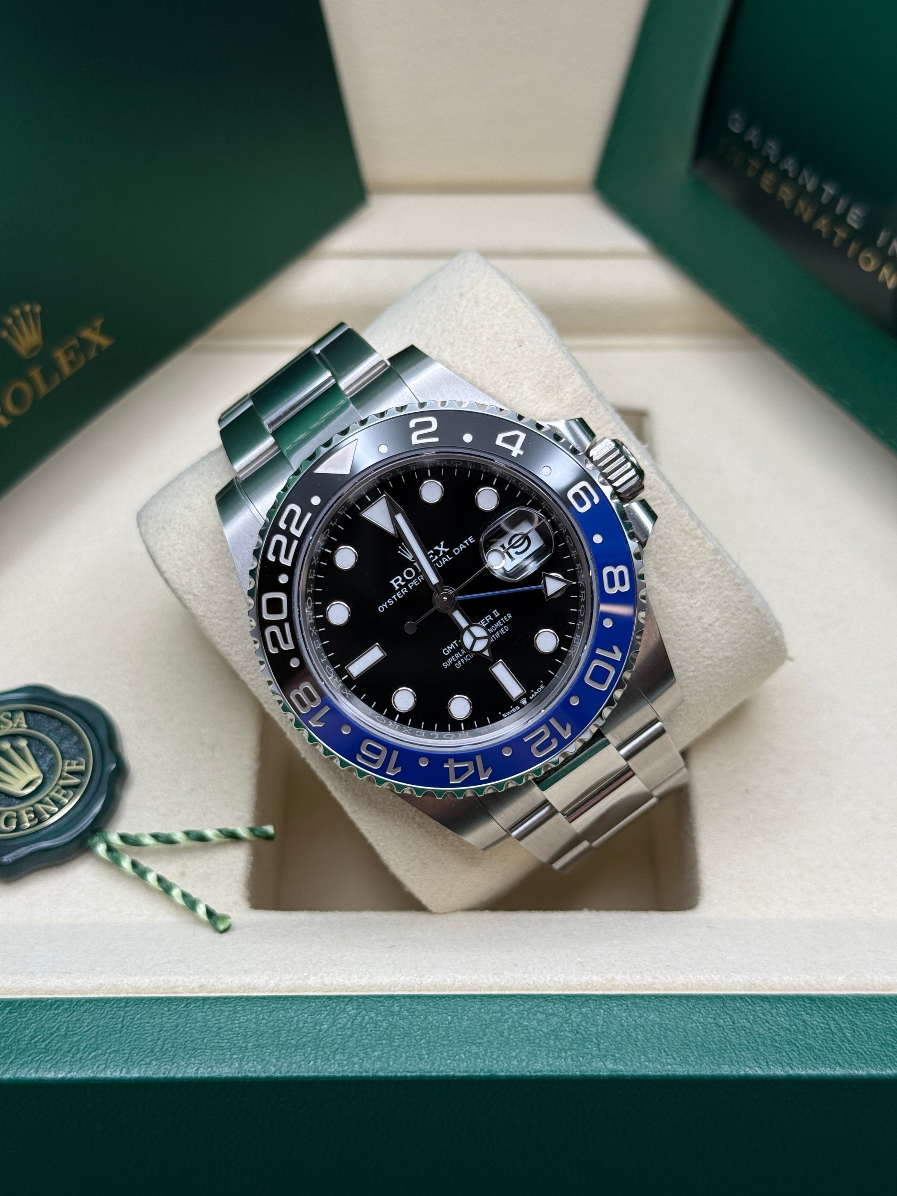 Powered by the Calibre 3285 movement, the Rolex GMT-Master II delivers exceptional precision, reliability, and an impressive power reserve of approximately 70 hours. Its rugged yet elegant Oyster case is waterproof to a depth of 100 meters, ensuring durability in any environment. The watch features a Cerachrom bezel, crafted from high-tech ceramic, which offers superior resistance to scratches and UV rays, maintaining its vibrant color over time. Equipped with an independently adjustable hour hand and 24-hour display, the GMT-Master II allows seamless tracking of multiple time zones, making it a perfect companion for global travelers and watch connoisseurs alike.