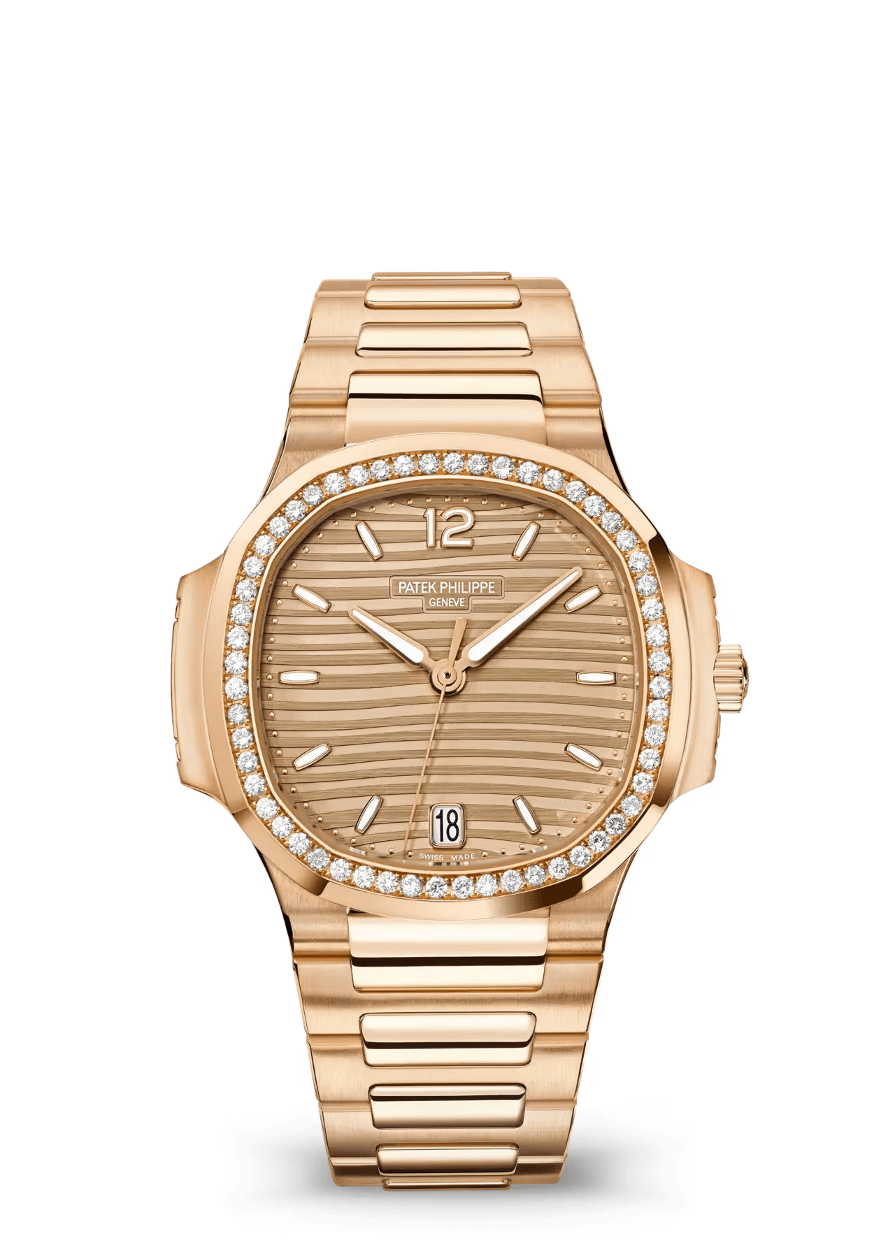 Inspired by the shape of a ship's porthole, the construction of the Nautilus pushed the art of case manufacture to a new pinnacle, while the use of new technology ensured it was impermeable to the elements. With its rounded octagonal bezel, ingenious porthole case construction, and horizontally embossed dial, the iconic design of the Nautilus is immediately recognizable.