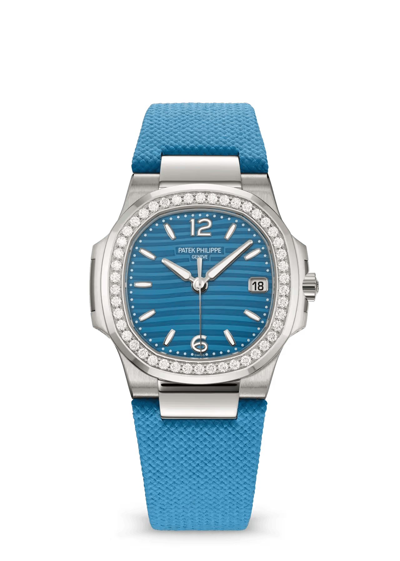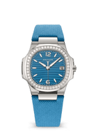 Nautilus White Gold Azure Blue Wave Diamond Fabric Strap