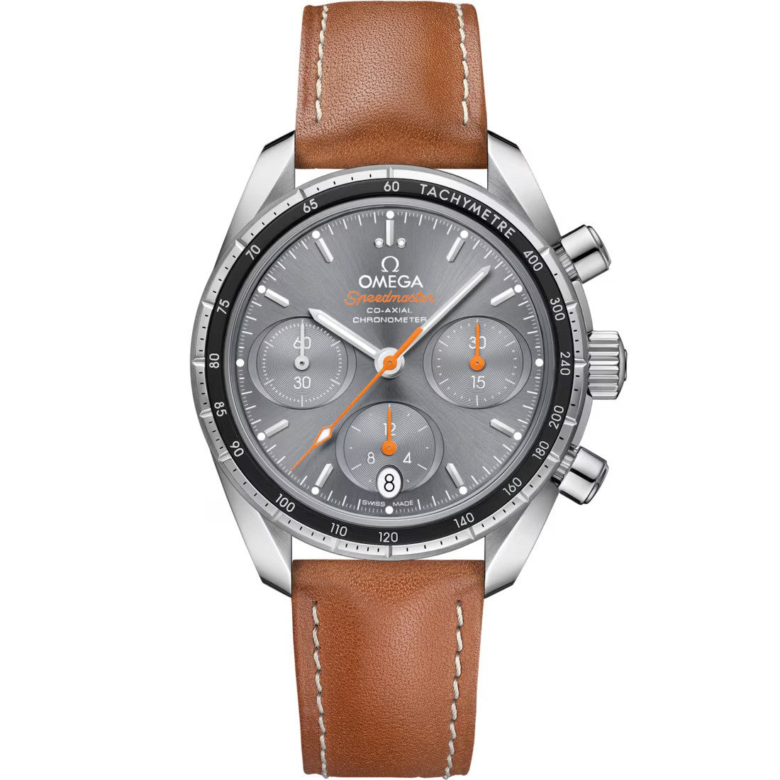 Speedmaster 38 Steel on Leather Strap Grey