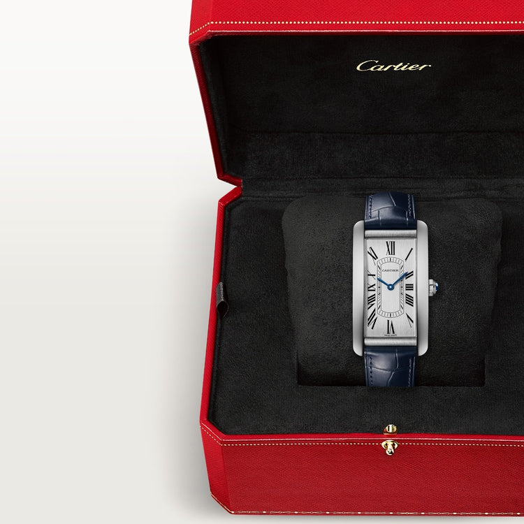 Water-resistant to 30 meters (100 feet) and perfectly balanced in form and function, the Tank Américaine is a true icon of modern horology, blending Cartier’s historic vision with an avant-garde edge.