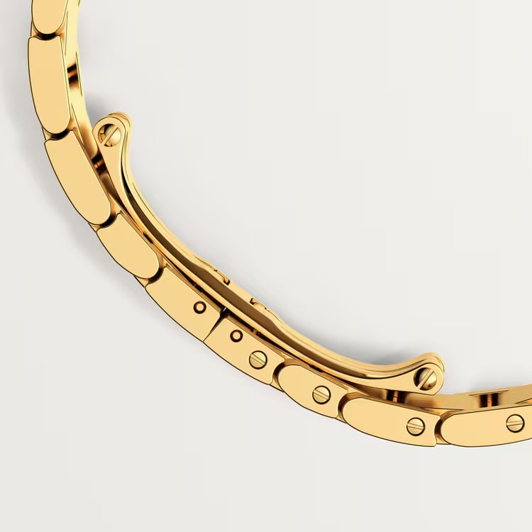 Launched in 1996, the Tank Française introduced a sculpted metal bracelet that blends fluidity with structure, offering unparalleled comfort and versatility. Its square case, softened by curved edges, retains the signature design codes of Cartier, including Roman numerals, sword-shaped hands, and a prominent crown adorned with a sapphire or spinel cabochon.