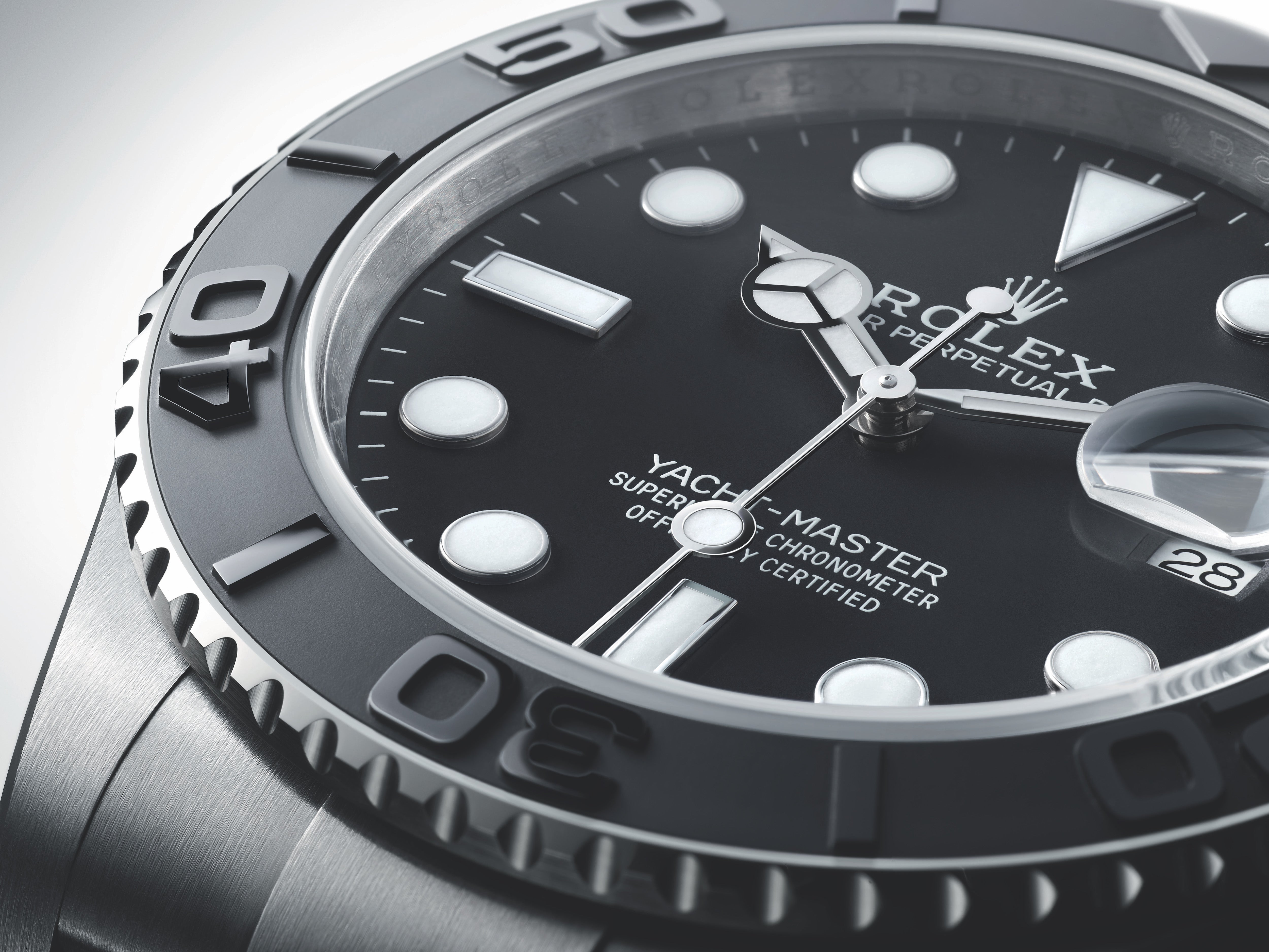 The Yacht-Master offers great legibility in all circumstances, even in the dark, thanks to its Chromalight display: the large hour markers and broad hands are filled or coated with a luminescent material emitting a long-lasting blue glow – for up to two times longer than traditional phosphorescent materials. The Yacht-Master’s Oyster case, 37 mm, 40 mm, or 42 mm in diameter and guaranteed waterproof to a depth of 100 metres (330 feet), is a paragon of robustness and reliability. Its models are equipped with calibre 2236 (Yacht-Master 37) or calibre 3235 (Yacht-Master 40 and Yacht-Master 42), self-winding mechanical movements entirely developed and manufactured by Rolex.