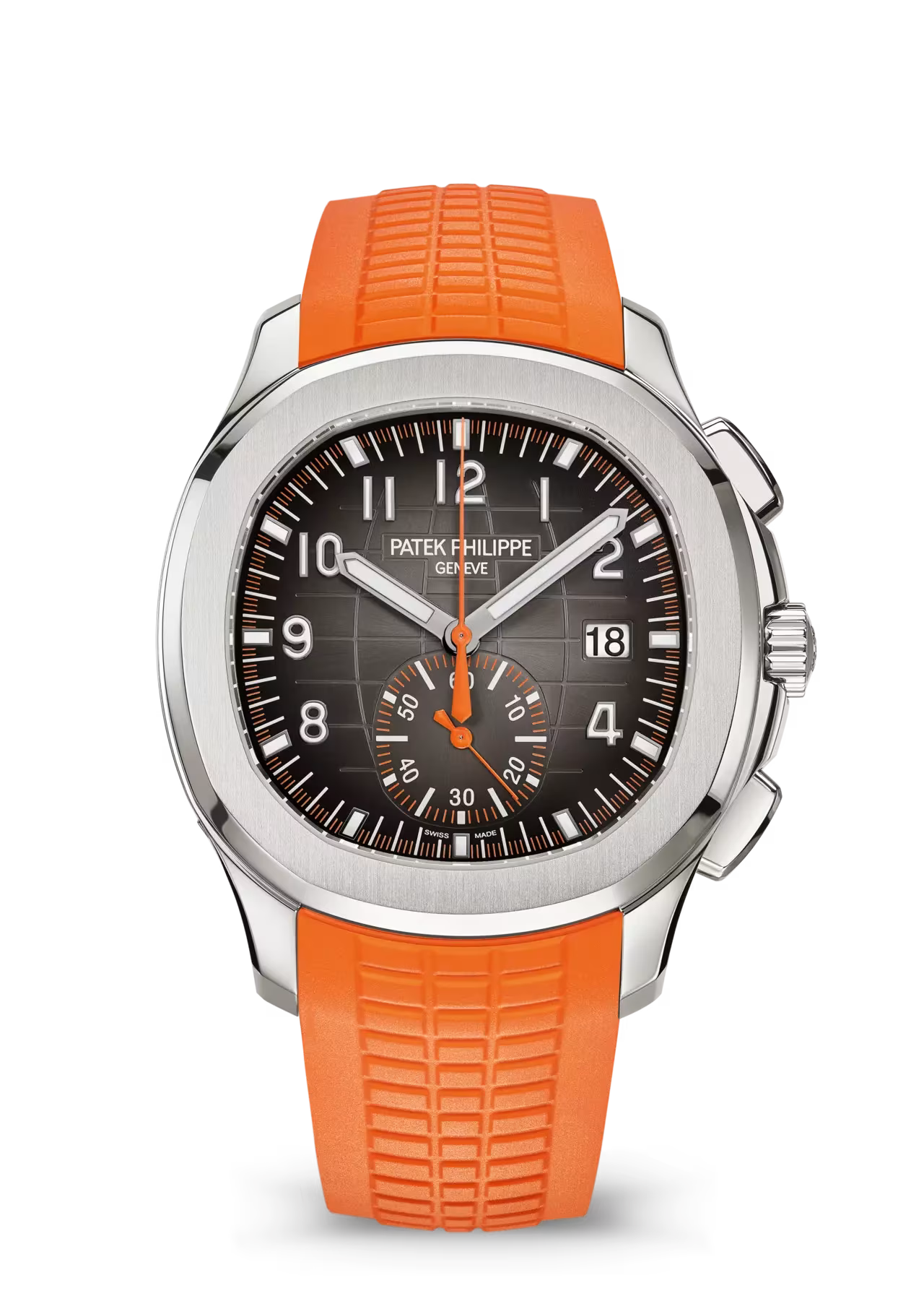 Crafted in precious metal, the Aquanaut is distinguished by its generously proportioned case and signature rounded-octagonal silhouette. The embossed dial, featuring the collection’s iconic geometric motif and a subtle gradient finish, offers depth, clarity and visual harmony. It is paired with a high-tech composite strap engineered to withstand wear, salt water and ultraviolet radiation, while providing exceptional comfort for everyday use.