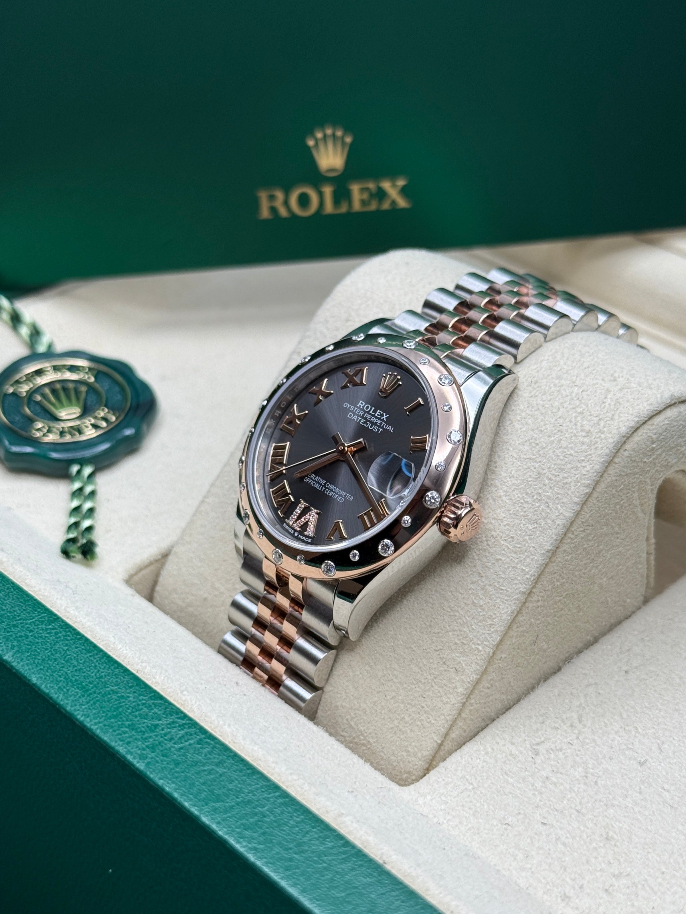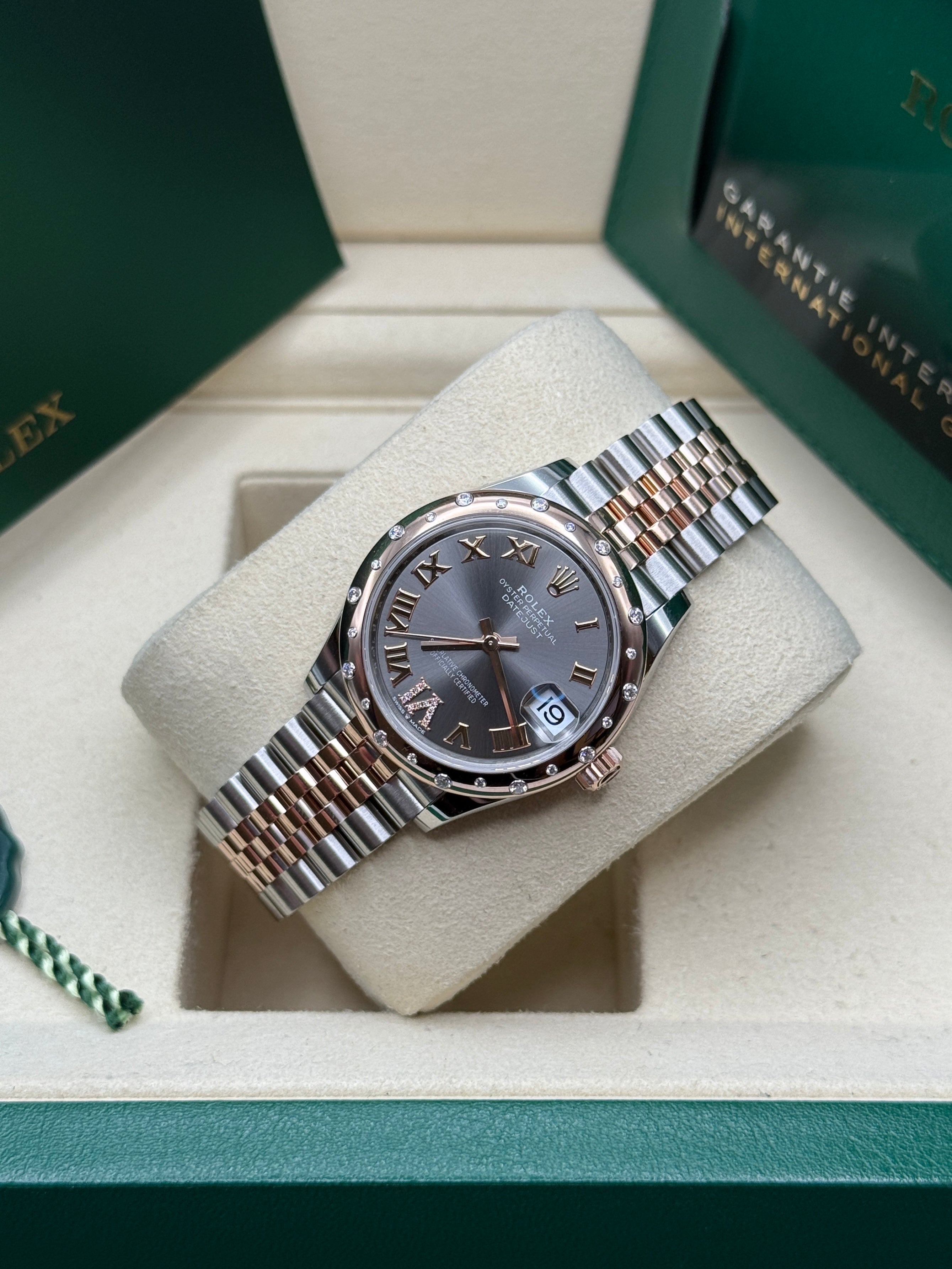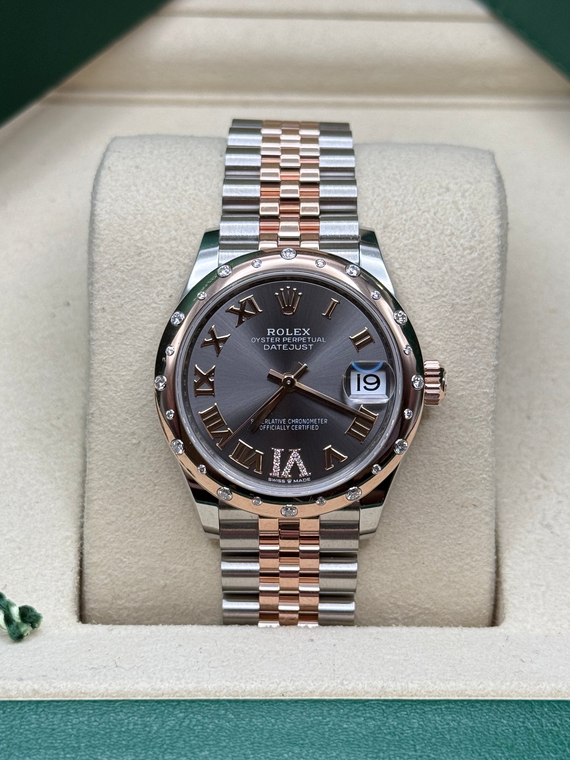 Datejust 31 Everose Gold Two-Tone Slate Roman Diamond