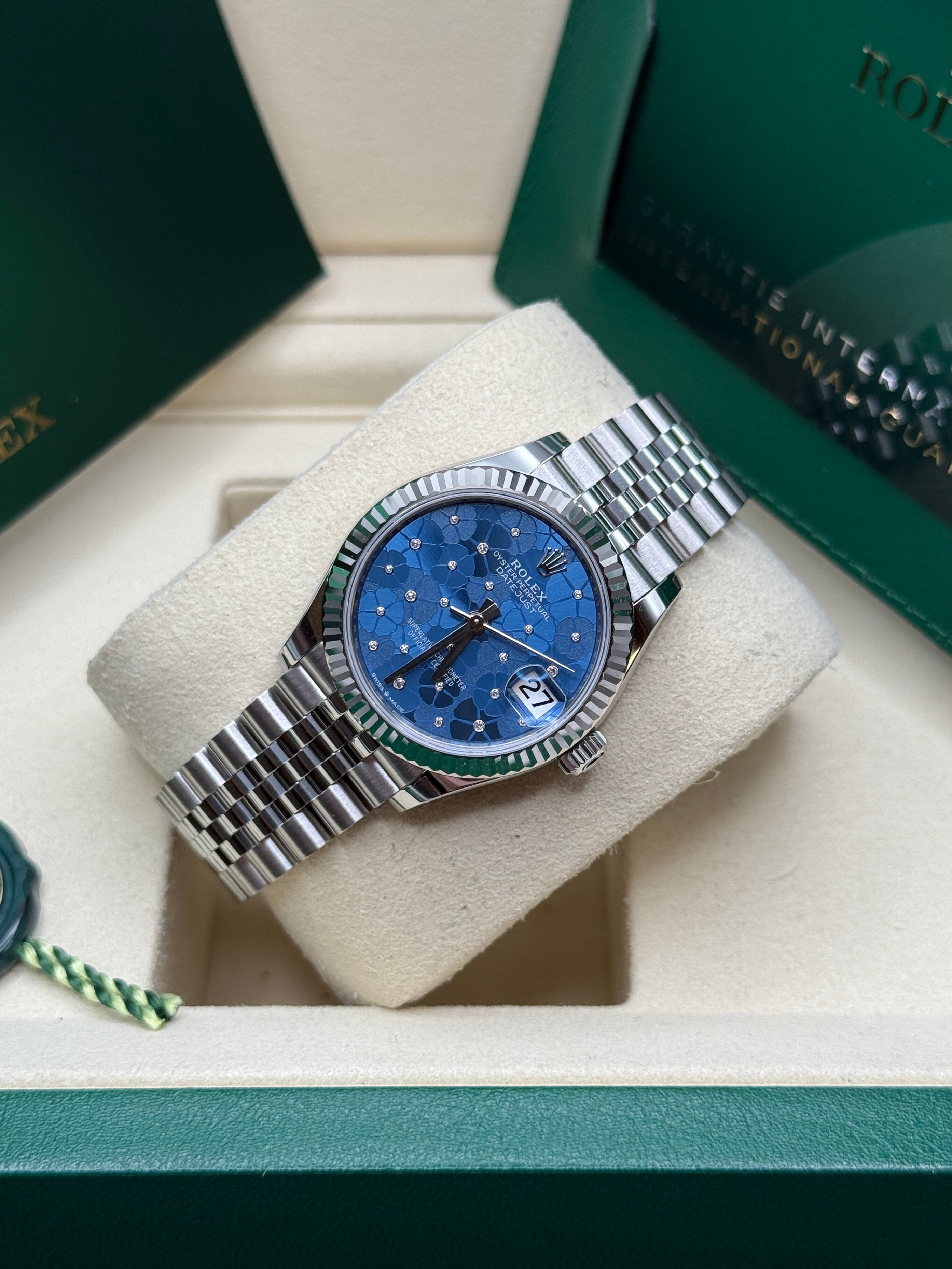 Datejust 31 Azzurro Blue Floral-Motif Diamond
