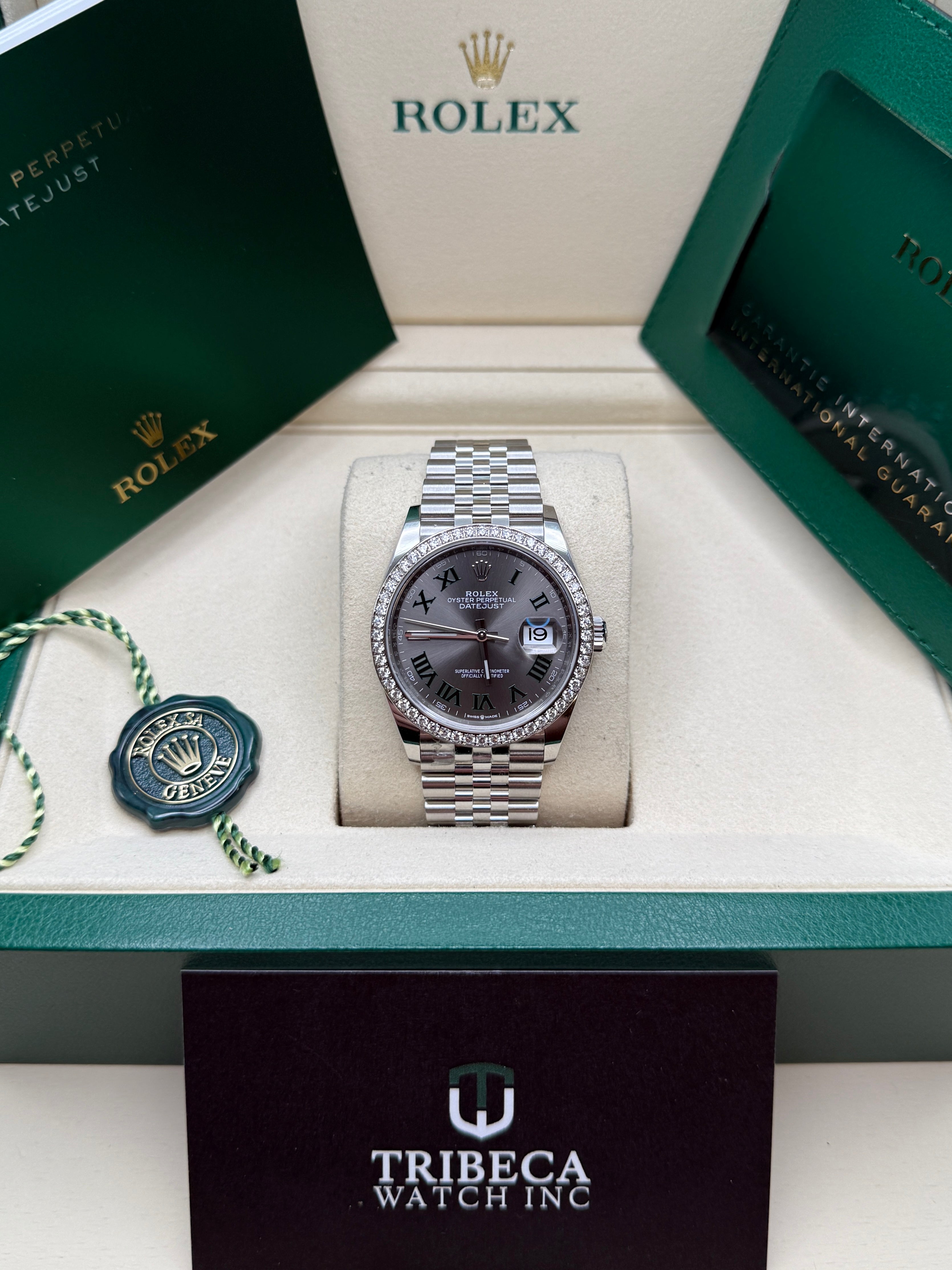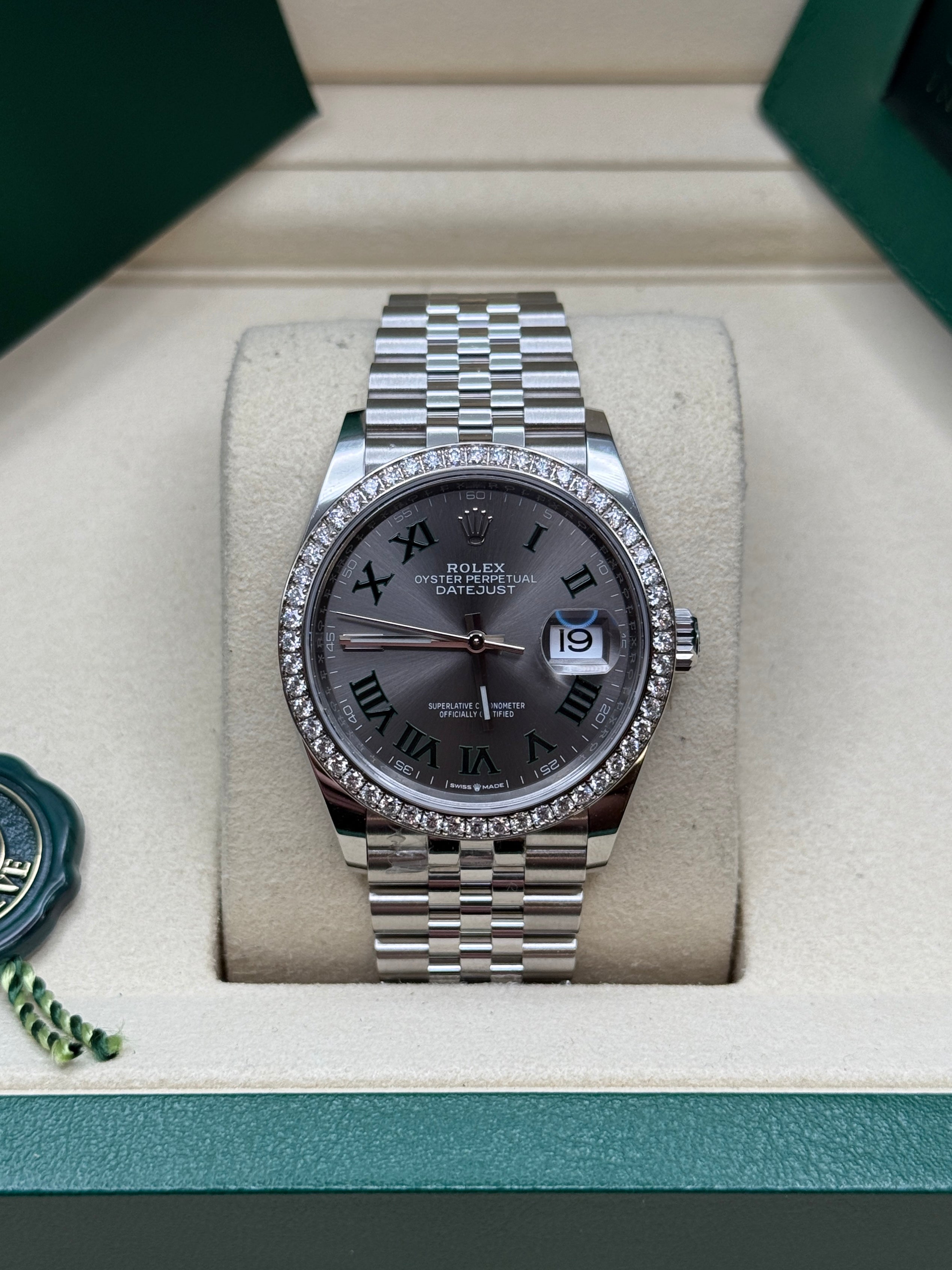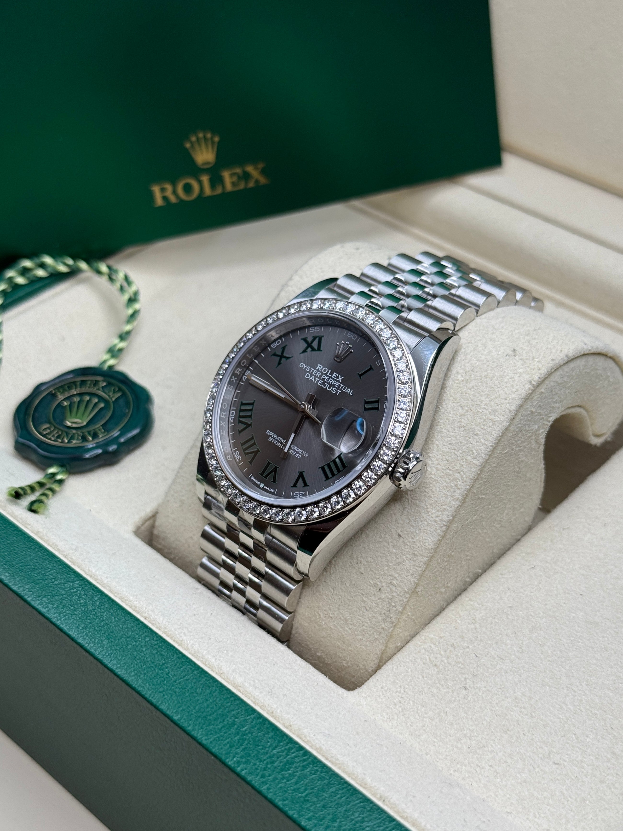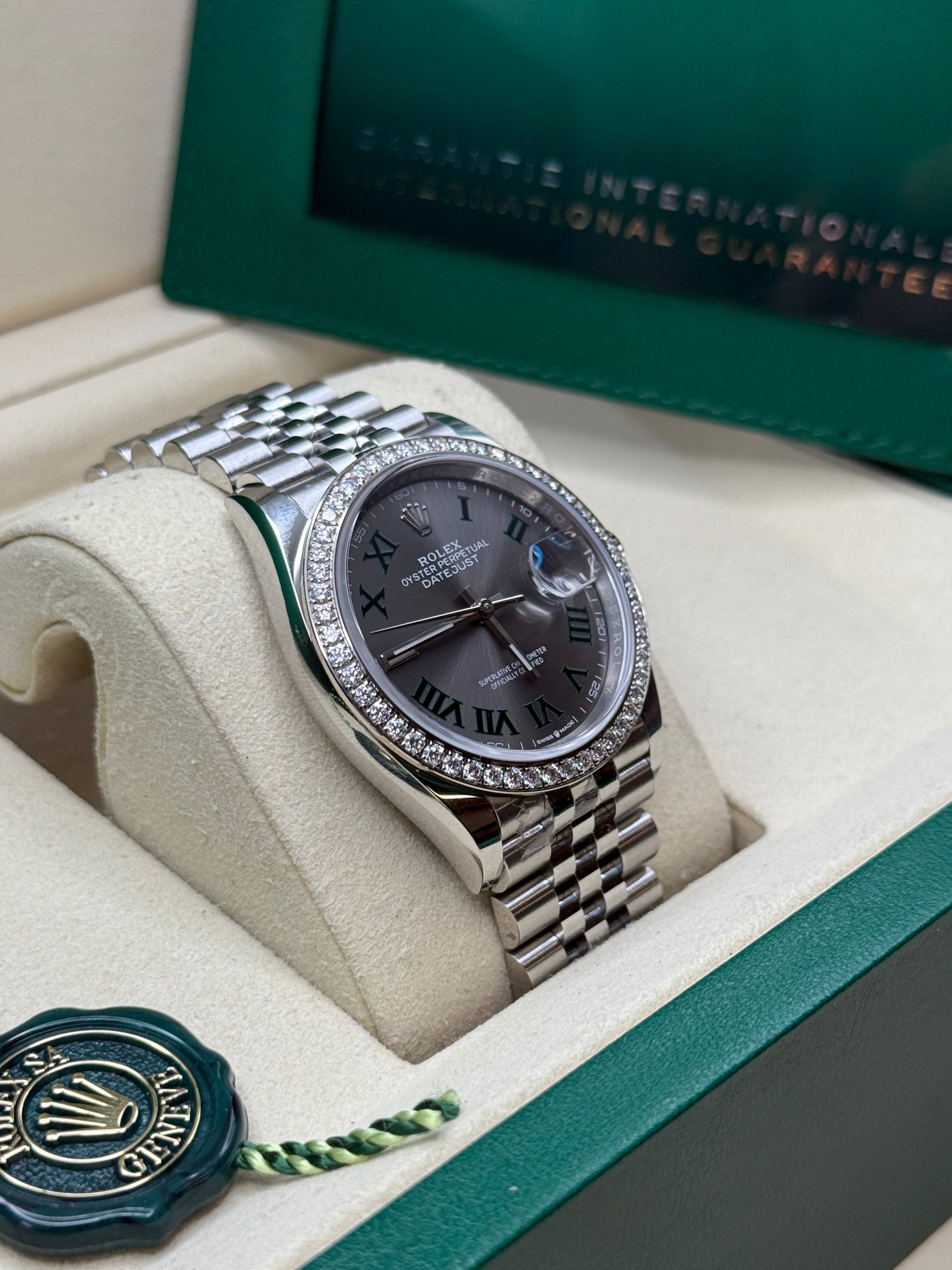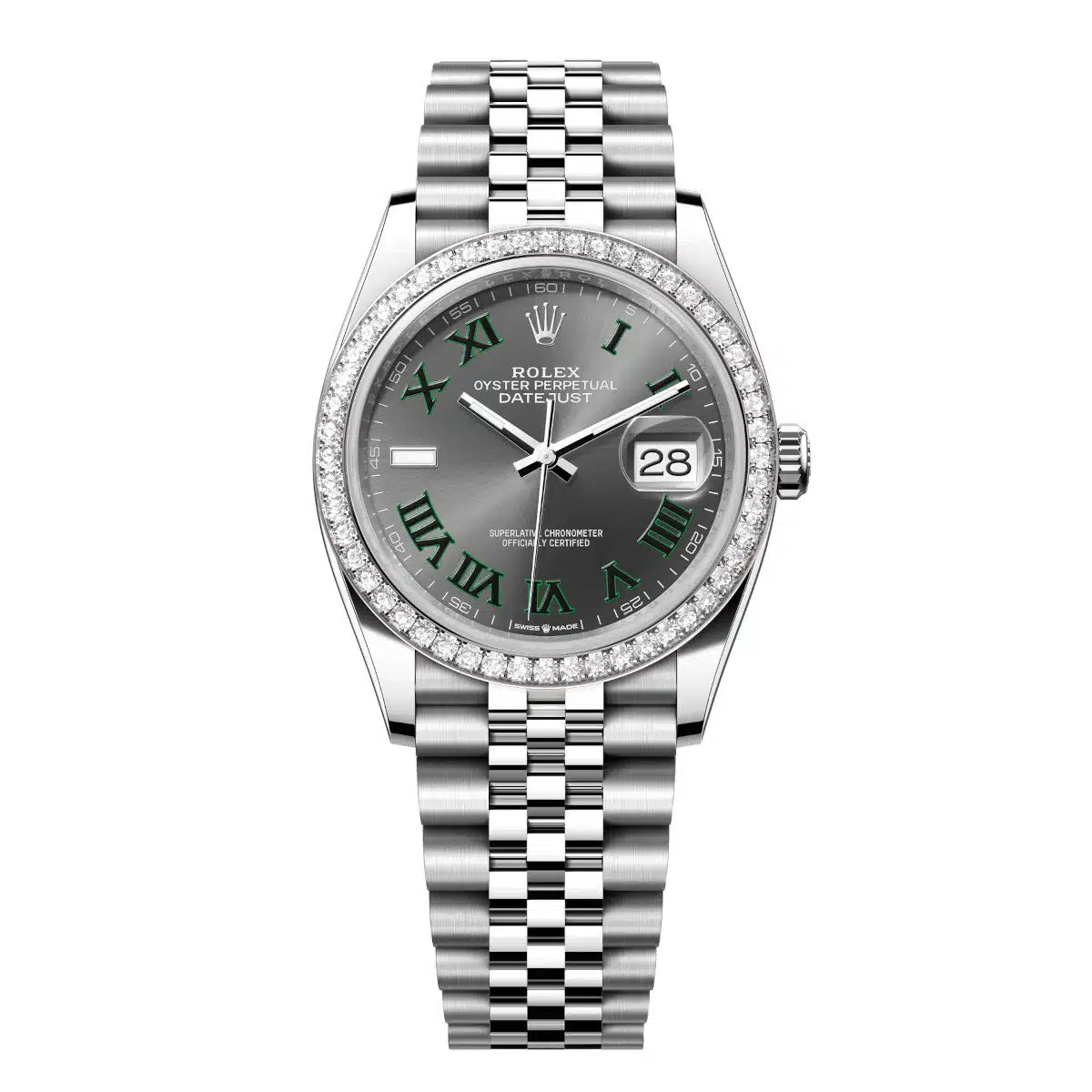 Rolex’s Datejust is the archetype of the classic watch thanks to functions and aesthetics that never go out of fashion. Launched in 1945, it was the first self-winding waterproof chronometer wristwatch to display the date in a window at 3 o’clock on the dial, and consolidated all the major innovations that Rolex had contributed to the modern wristwatch until then. The Datejust has spanned eras while retaining the enduring aesthetic characteristics that make it so instantly recognizable. A paragon of robustness and elegance, the Oyster case of the Datejust 36 is guaranteed waterproof to a depth of 100 meters (330 feet) and is equipped with calibre 3235, a movement entirely developed and manufactured by Rolex.