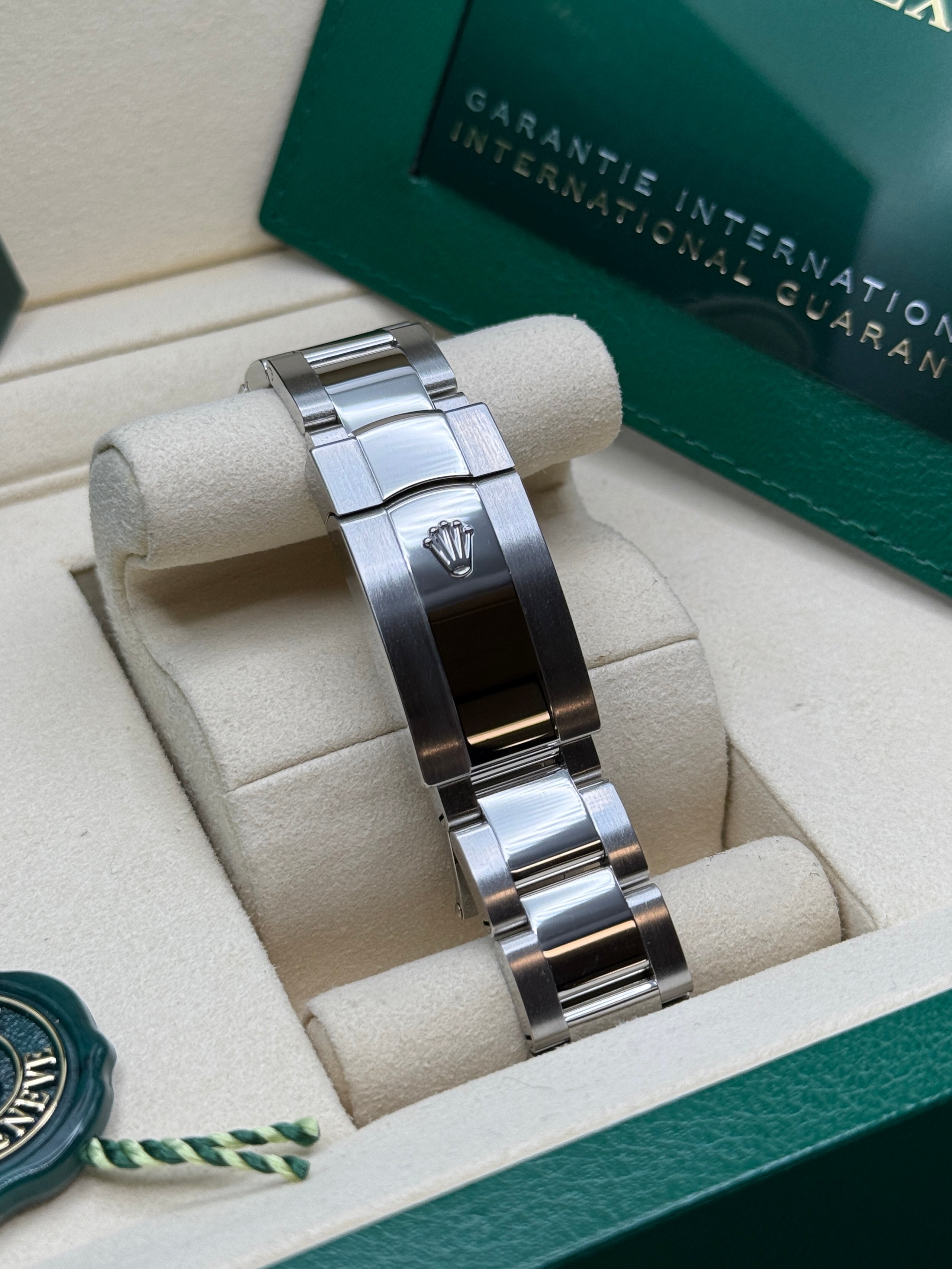 Designed to meet the demands of scientific professionals, this unique timepiece embodies Rolex’s commitment to both elegance and technical achievement. First introduced in 1956, the Milgauss set a new standard as one of the first watches resistant to magnetic fields up to 1,000 gauss—hence its distinctive name. Known for its iconic orange lightning-bolt second hand and green-tinted sapphire crystal, the Milgauss stands out in any setting, blending robust functionality with a timeless aesthetic. With its waterproof Oyster case ensuring durability to a depth of 100 meters (330 feet) and its self-winding calibre 3131 movement, developed entirely by Rolex, the Milgauss is an enduring symbol of precision, science, and style.